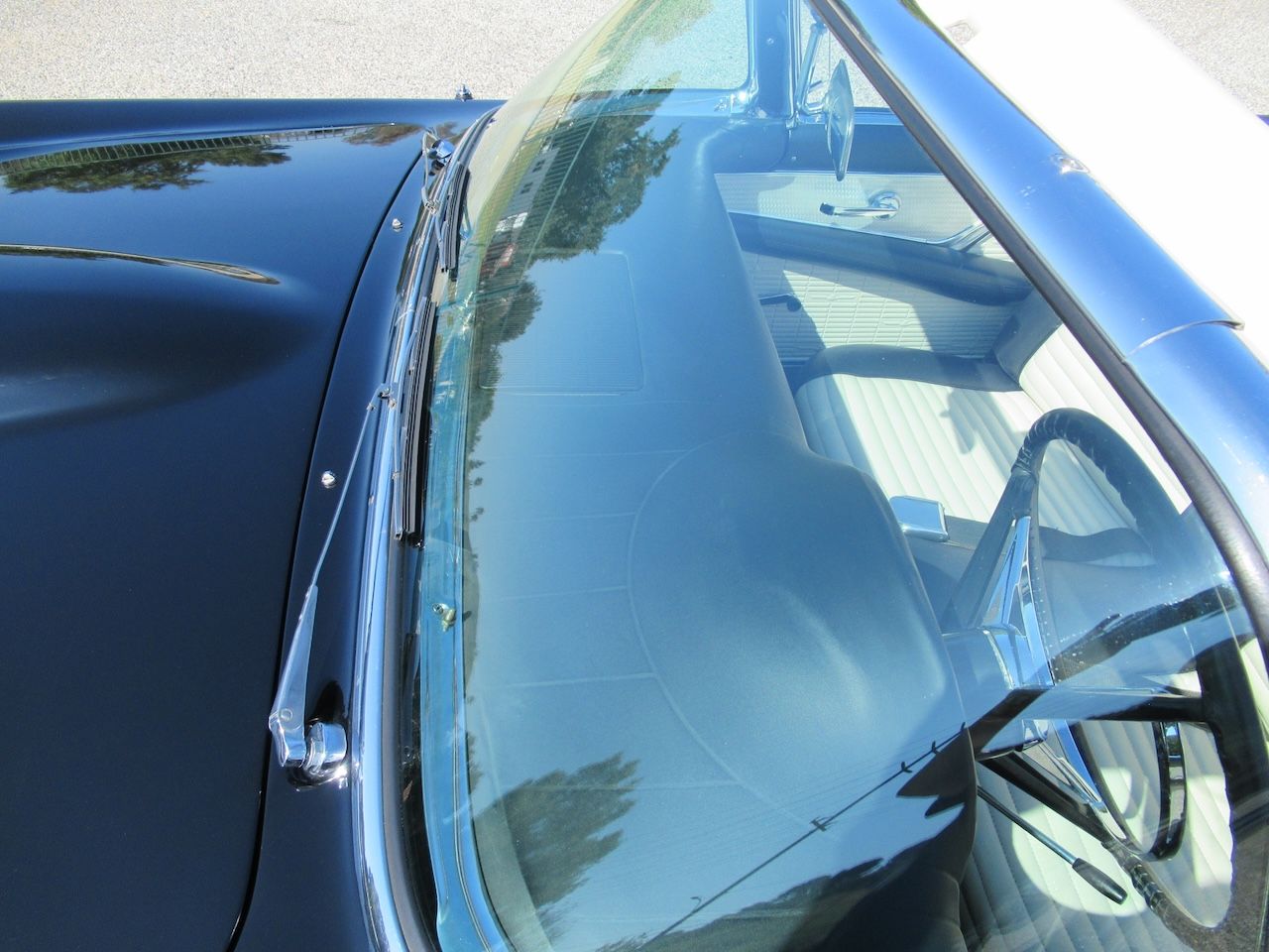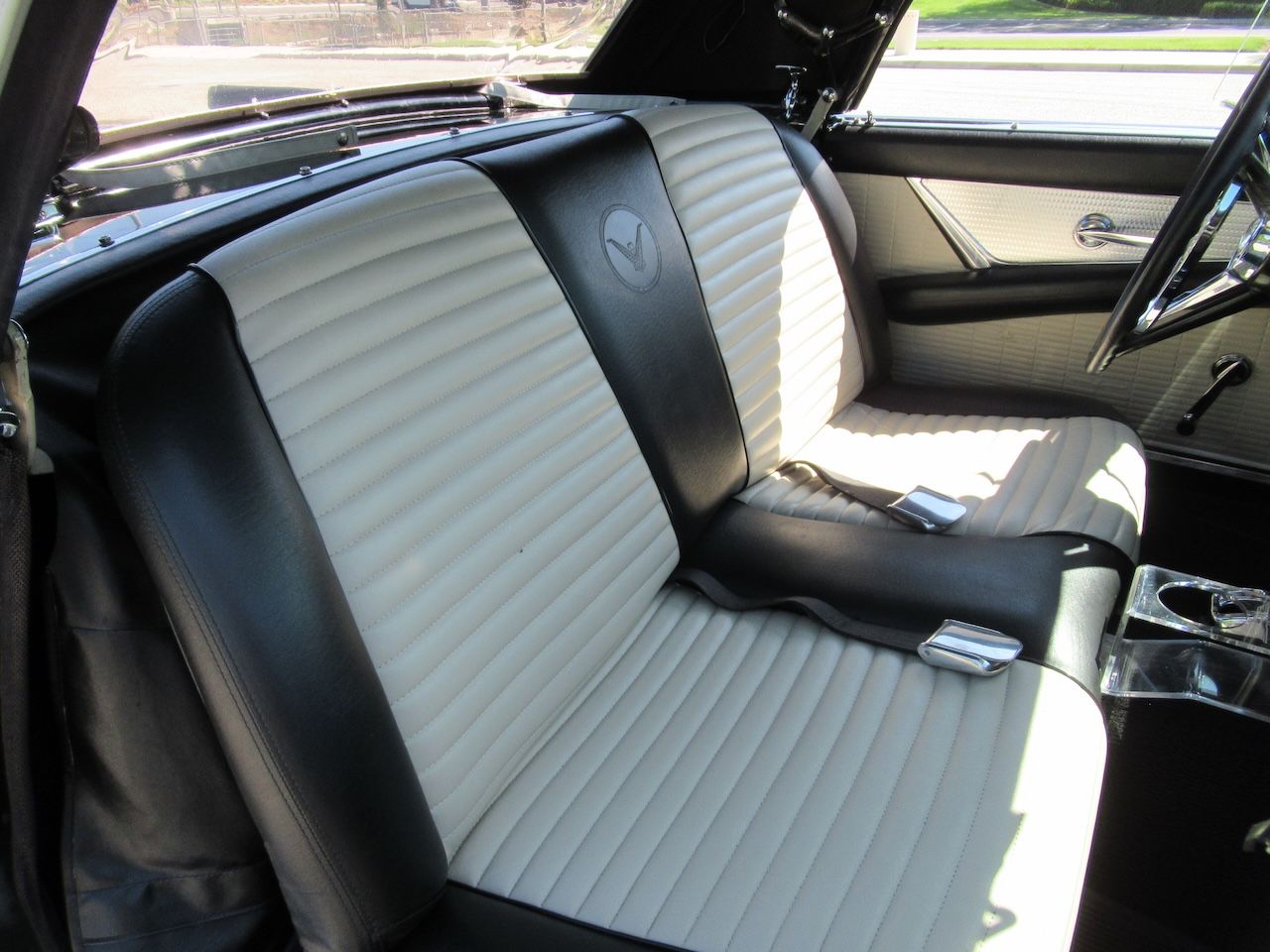 1957 was a great year for American Classic cars and everybody will recognize a nice 57 T-Bird. This solid California car is finished in Raven Black with the matching Porthole removable Hard top and White Soft top The Stainless and Chrome trim are all in very nice condition and the fender skirts with factory 14 inch steel wheels with original hubcaps wrapped in American Classic wide white wall radials complete the ultimate 50’s look. Under the hood sits the original 312 V8 engine rated at 245 Horsepower and it has the Aluminum Thunderbird valve covers, original chrome air cleaner as well as factory power steering, power brakes and dual exhaust exiting through the rear bumper. Although A/C was never a factory option it was often added at the dealership as an under dash unit. This one has that option added as well as an upgraded more efficient rotary style compressor updated to the less expensive R134 freon. Power gets distributed to the road through a Ford-O-Matic automatic transmission and backed by the original rear differential with 3:10 gear ratio for getting on the highway. The interior is finished in Colonial White with Black two tone seating, original Steering wheel, factory gauges with spun machined gauge and dash face carrying over to the door panels, custom Classic auto sound radio and an added acrylic floor mounted cup holder to keep that coffee in place headed to the weekly morning cruise. This beautiful 68 year old Classic is far from done putting smiles on the faces of people that remember a simpler time.