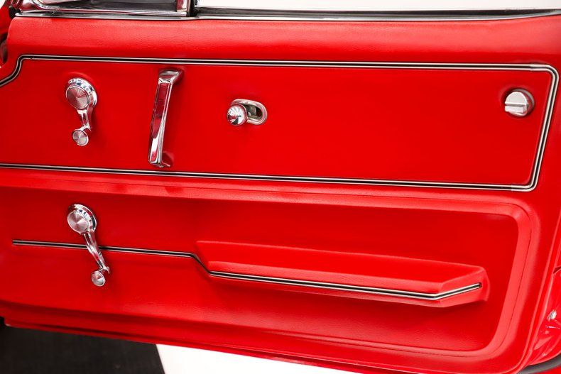 INTERIOR: You can't have enough red in a Corvette, and this interior absolutely delivers! It looks like new-if not better in some areas. It was lined with Dynamat sound deadener then fresh red carpet was installed front to back and some premium mats. The seats have been re-cushioned and upholstered in glove-soft leather, and the entire dash area has been beautifully restored. It's upgraded with RetroGauges that look stock at a glance but feature modern analog/digital functionality, along with a quartz clock. There's a Bluetooth stereo system, and the console is in excellent shape with a billet 5-speed shifter rising from it. It also features a tilt column and a Billet Specialties steering wheel. The door panels have been replaced, and it has new red seat belts. All the finishing details are in excellent condition, making this interior truly stand out.