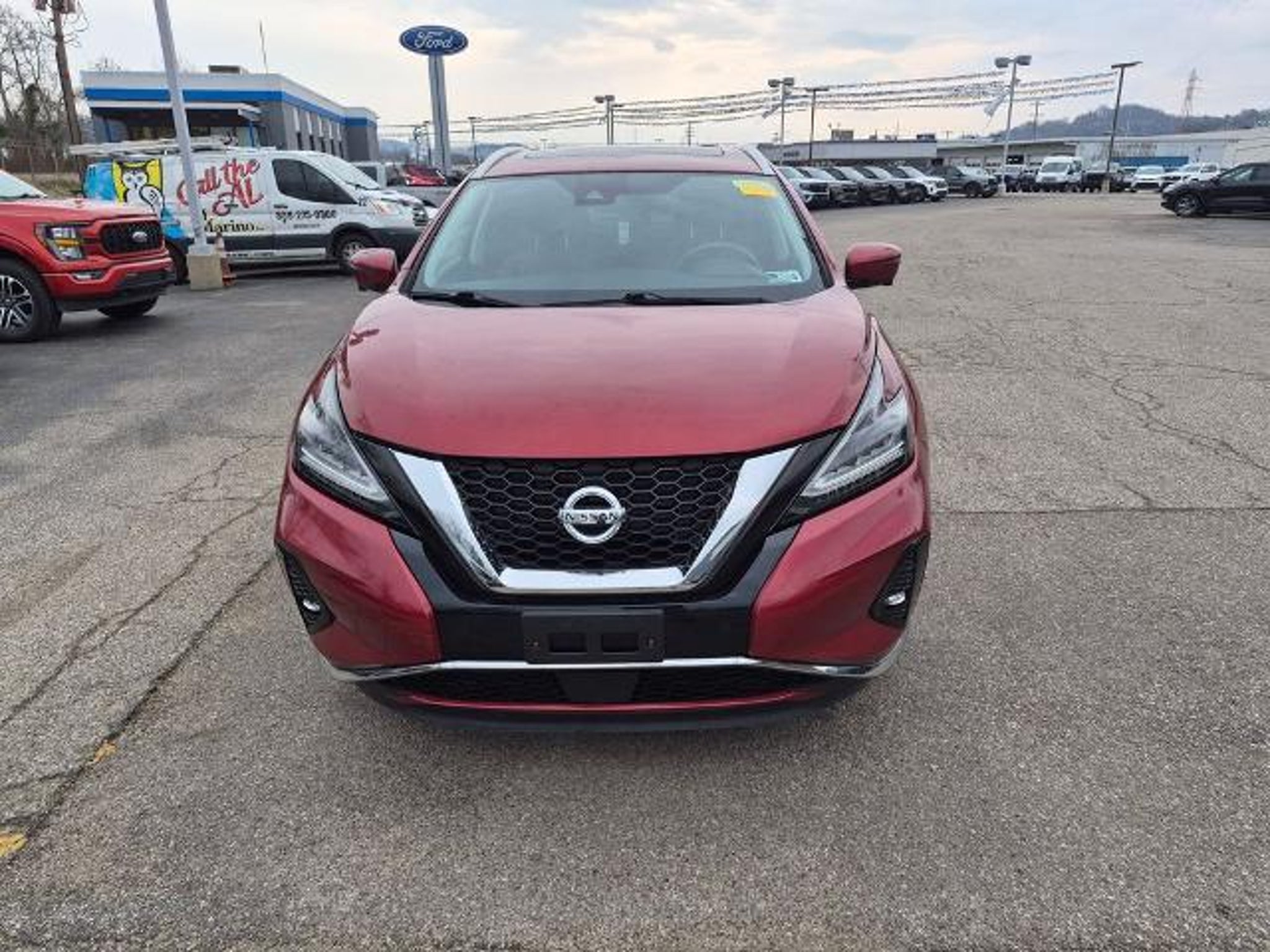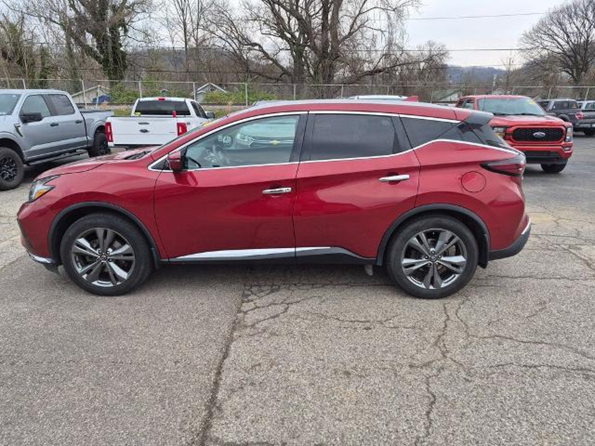 2019 Nissan Murano Platinum Cayenne Red Pearl Metallic AWD CVT with Xtronic 3.5L V6 DOHC 24V 11 Speakers, 4-Wheel Disc Brakes, 4.667 Axle Ratio, ABS brakes, Air Conditioning, Alloy wheels, AM/FM radio: SiriusXM, AM/FM/CD/MP3/WMA Audio System, Auto High-beam Headlights, Auto tilt-away steering wheel, Auto-dimming Rear-View mirror, Automatic temperature control, Blind Spot Warning, Brake assist, Bumpers: body-color, Carpeted Floor Mats & Carpeted Cargo Mat, CD player, Child-Seat-Sensing Airbag, Climate-Controlled Front Bucket Seats, Compass, Delay-off headlights, Driver door bin, Driver vanity mirror, Dual front impact airbags, Dual front side impact airbags, Electronic Stability Control, Emergency communication system: NissanConnect Services, Four wheel independent suspension, Front anti-roll bar, Front Bucket Seats, Front Center Armrest, Front dual zone A/C, Front fog lights, Front reading lights, Fully automatic headlights, Garage door transmitter: HomeLink, Heated door mirrors, Heated front seats, Heated rear seats, Heated steering wheel, Illuminated entry, Knee airbag, Low tire pressure warning, Memory seat, Navigation system: NissanConnect Navigation, NissanConnect featuring Apple CarPlay and Android Auto, NissanConnect Services Powered By SiriusXM, Occupant sensing airbag, Outside temperature display, Overhead airbag, Overhead console, Panic alarm, Passenger door bin, Passenger vanity mirror, Power door mirrors, Power driver seat, Power Liftgate, Power moonroof, Power passenger seat, Power steering, Power windows, Radio data system, Rear anti-roll bar, Rear reading lights, Rear seat center armrest, Rear side impact airbag, Rear window defroster, Rear window wiper, Remote keyless entry, Roof rack: rails only, Security system, Semi-Aniline Leather-Appointed Seat Trim, Speed control, Speed-sensing steering, Speed-Sensitive Wipers, Splash Guards, Split folding rear seat, Spoiler, Steering wheel memory, Steering wheel mounted audio controls, Tachometer, Telescoping steering wheel, Tilt steering wheel, Traction control, Trip computer, Turn signal indicator mirrors, Variably intermittent wipers, Ventilated front seats, and Wheels: 20 Dark Hyper Silver. Recent Arrival! Odometer is 3045 miles below market average! 20/28 City/Highway MPG