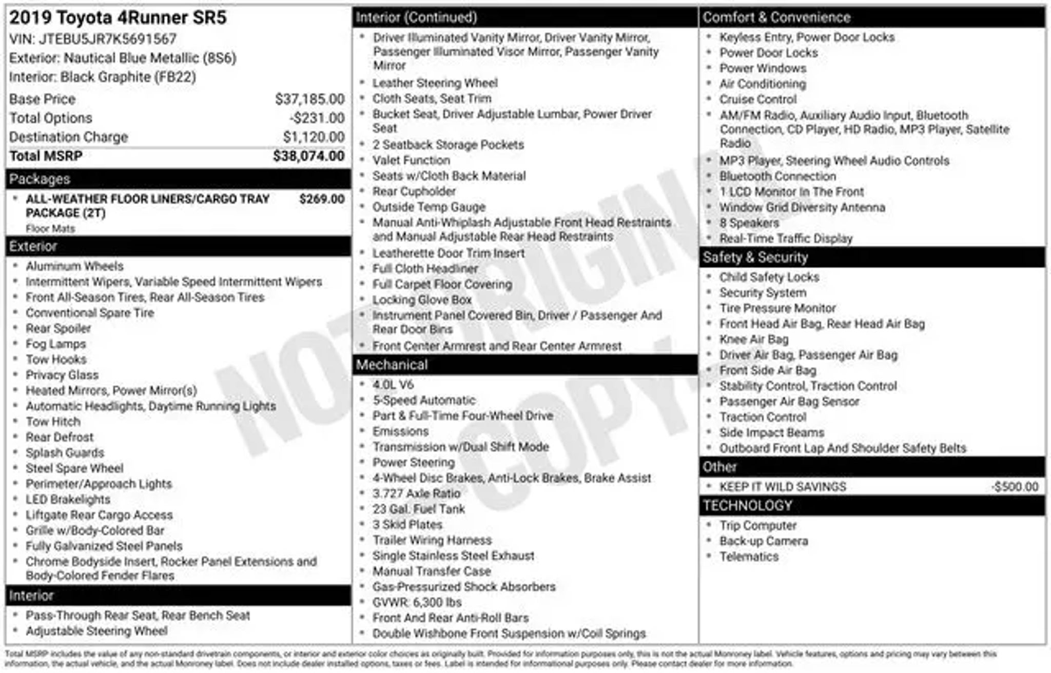 Certified. Nautical Blue Metallic 2019 Toyota 4Runner SR5 SR5 4WD 5-Speed Automatic with Overdrive 4.0L V6 SMPI DOHC 4WD, Graphite Cloth, 17 x 7.0 6-Spoke Alloy Wheels. Here at Heritage Ford, we are proud of the quality Ford vehicles that we provide to the Burlington area and the friendly service that comes along with. Odometer is 2458 miles below market average! Certification Program Details: Ford Blue Advantage: Blue Certified * 139 Point Inspection * Transferable Warranty * Vehicle History * Warranty Deductible: $100 * Roadside Assistance * Limited Warranty: 3 Month/4,000 Mile (whichever comes first) after new car warranty expires or from certified purchase date * and 11,000 FordPass Rewards Points to use toward first maintenance visit Awards: * 2019 KBB.com Best Resale Value Awards * 2019 KBB.com Brand Image Awards Not only do we have a top of the line selection of Ford vehicles, at Heritage Ford our service department is here to keep your vehicle running for the long haul. When you purchase with the H-Team, you are automatically enrolled in the H-Team Owners Club Vermont State Inspection Program, which entitles you to one free Vermont State Inspection every year for as long as you own your vehicle.