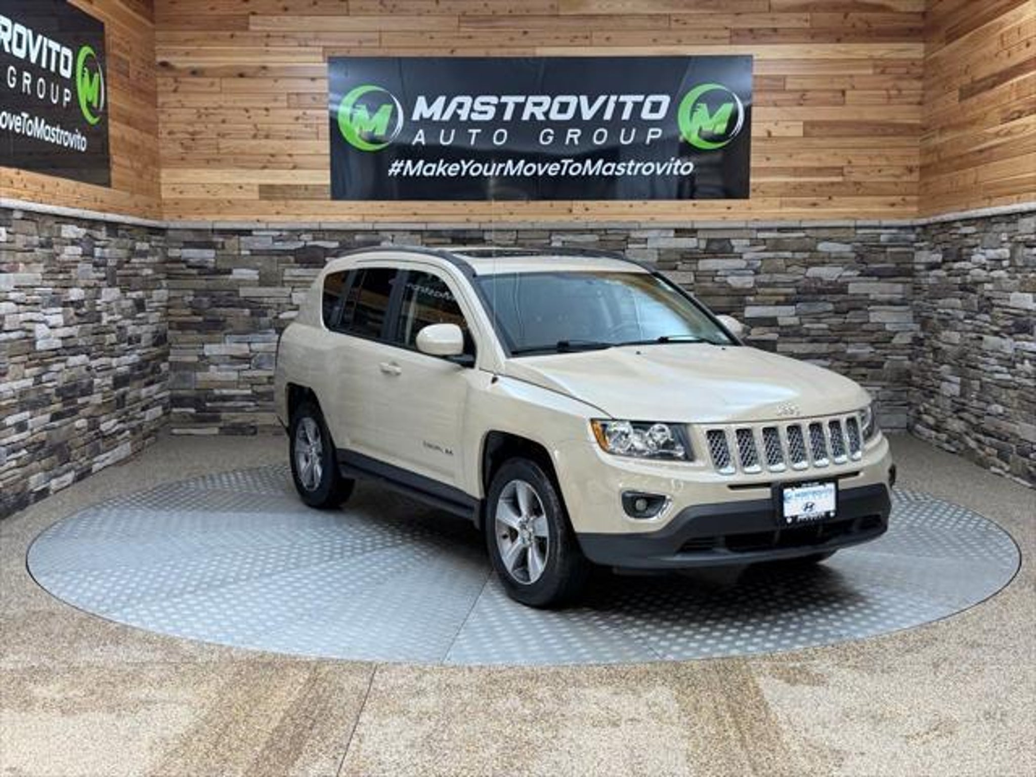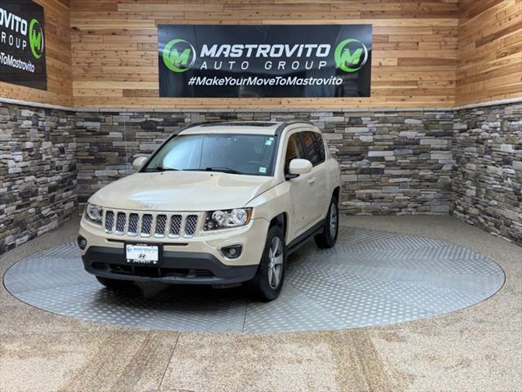 2016 Jeep Compass High Altitude Mojave Sand Clearcoat This Compass High Altitude is nicely equipped with Quick Order Package 23P High Altitude (Body Color Fascias w/Bright Insert, Bright Exhaust Tip, Bright Side Roof Rails, Leather Trimmed Bucket Seats, Manual Driver Lumbar Adjust, Power 6-Way Driver Seat, Power Express Open/Close Sunroof, Remote Start System, and Wheels: 17 x 6.5 Granite Painted Pocket), 4WD, 17 x 6.5 Aluminum Wheels, 3.37 Axle Ratio, 4 Speakers, 4-Wheel Disc Brakes, ABS brakes, Air Conditioning, Alloy wheels, AM/FM radio: SiriusXM, Anti-whiplash front head restraints, Audio Jack Input for Mobile Devices, Auto-dimming Rear-View mirror, Brake assist, Bumpers: body-color, CD player, Cloth/Vinyl Low-Back Bucket Seats, Dark Slate Gray/Saddle Tan Interior Color, Driver door bin, Driver vanity mirror, Dual front impact airbags, Dual front side impact airbags, Electronic Stability Control, Four wheel independent suspension, Front anti-roll bar, Front Bucket Seats, Front Center Armrest w/Storage, Front fog lights, Front reading lights, Fully automatic headlights, Heated door mirrors, Heated front seats, Hill Start Assist, Illuminated entry, Low tire pressure warning, Occupant sensing airbag, Outside temperature display, Overhead airbag, Panic alarm, Passenger door bin, Passenger vanity mirror, Power door mirrors, Power steering, Power windows, Radio: 130, Rear anti-roll bar, Rear window defroster, Rear window wiper, Remote keyless entry, Roof rack: rails only, Speed control, Split folding rear seat, Spoiler, Steering wheel mounted audio controls, Tachometer, Tilt steering wheel, Traction control, and Variably intermittent wipers. 4WD.Mastrovito Hyundai is proud to serve the drivers of Utica and Rome with a dedication to incredible customer service, and a wide selection of incredible new Hyundai models in Yorkville, NY. Our team proudly comes to work every day with the goal of meeting your needs and sending you back onto the roads of Central New York completely satisfied with your experience at Mastrovito Hyundai. Whether we can amaze you with incredible new and pre-owned vehicle selection, our dedication to incredible customer service or our transparent and accommodating auto loan and lease options, we look forward to serving you at Mastrovito Hyundai.