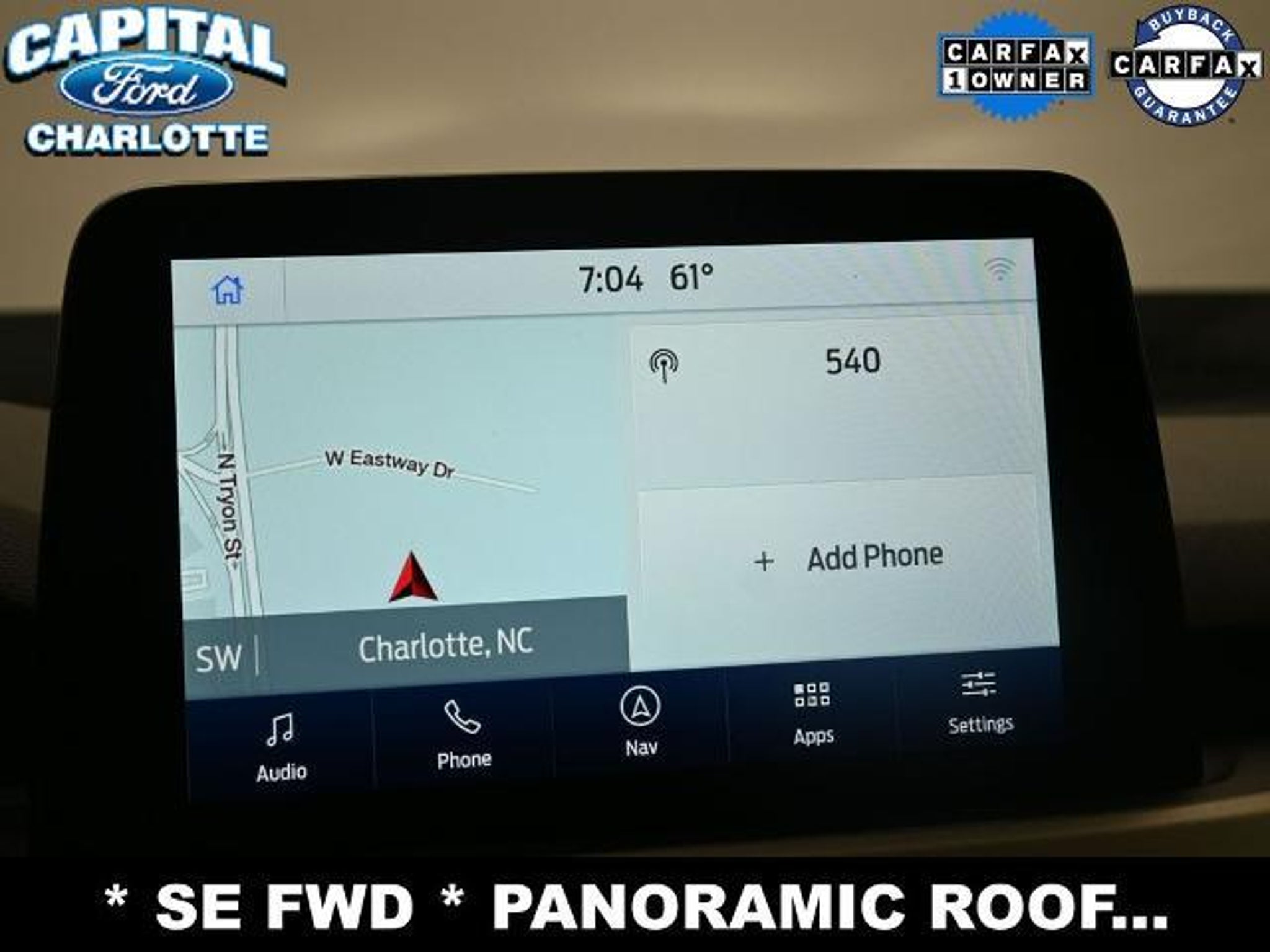 **CLEAN CARFAX**, **ONE OWNER**, **ADAPTIVE CRUISE CONTROL W/STOP & GO**, **FORD CO-PILOT360**, **FORD CO-PILOT360 ASSIST**, **NAVIGATION/ CONNECTED NAV**, **PANORAMIC ROOF**, **HEATED FRT SEATS**, **POWER DRIVERS SEAT**, **SYNC 3**, **APPLINK**, **FORDPASS CONNECT 4 G WIFI MODE**, **SIRIUS XM SATELLITE RADIO**, **BACKUP CAMERA**, **INTELLIGENT ACCESS w. PUSH BUTTON START, **TRITON PROTECT CAR CARE SYSTEM**, **TRITON PROTECT SILENT SECURITY THEFT DETERRENT SYSTEM**, 6 Speakers, AM/FM radio: SiriusXM, Auto High-beam Headlights, Delay-off headlights, Emergency communication system: SYNC 3 911 Assist, Equipment Group 200A, Ford Co-Pilot360 Assist, Fully automatic headlights, Low Tire Pressure Warning, Speed Control, Telescoping Steering Wheel, Tilt Steering Wheel.