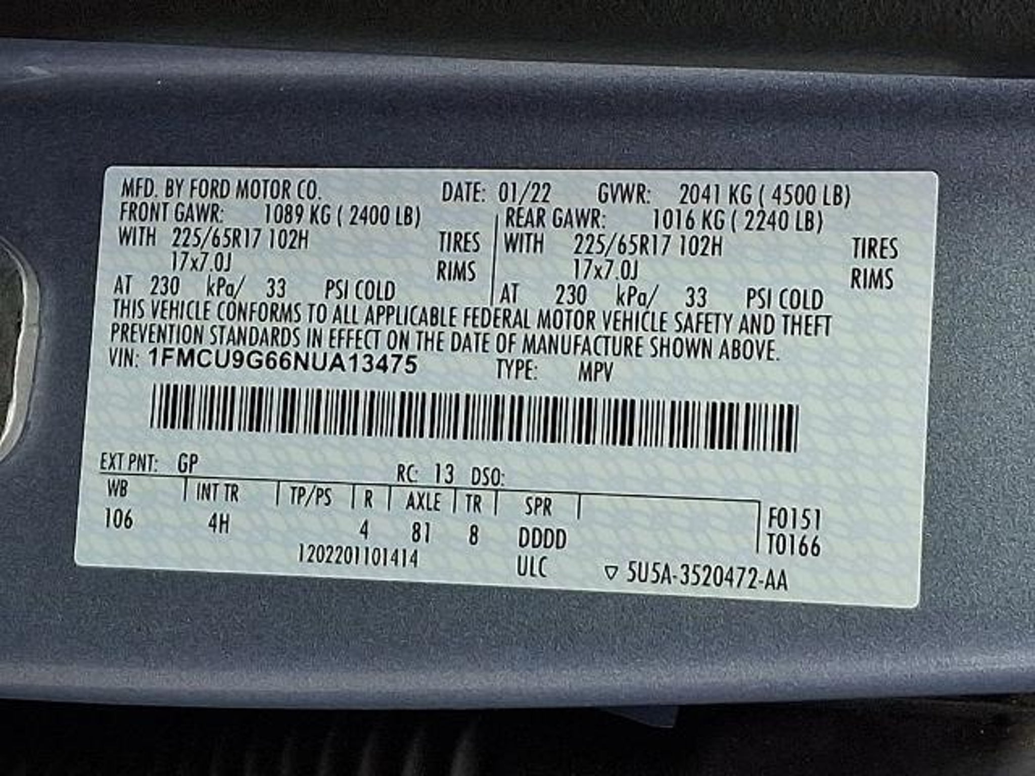 1 OWNER, CLEAN CARFAX, FORD CERTIFIED PRE-OWNED, 7YR/100K MILE FORD GOLD CERTIFIED WARRANTY, ALL WHEEL DRIVE, HEATED SEATS, HEATED STEERING WHEEL, Cold Weather Package, Electronic Automatic Temperature Control (EATC), Heated & Premium Wrapped Steering Wheel, Heated Front Row Seats, Heated Sideview Mirrors, Remote Start System w/86C. Certified. Ford Gold Certified Details: * Limited Warranty: 12 Month/12,000 Mile (whichever comes first) after new car warranty expires or from certified purchase date * Roadside Assistance * Transferable Warranty * Vehicle History * Warranty Deductible: $100 * 172 Point Inspection * Powertrain Limited Warranty: 84 Month/100,000 Mile (whichever comes first) from original in-service date * and 22,000 FordPass Rewards Points to use toward first two maintenance visits 26/31 City/Highway MPG Price excludes taxes, fees, dealer conveyance fee of $599. See dealer for details. 2022 8-Speed Automatic AWD SE Escape AWD Ford 26/31 City/Highway MPG 1.5L EcoBoost Iced Blue Silver Metallic CARFAX One-Owner. Priced below KBB Fair Purchase Price!