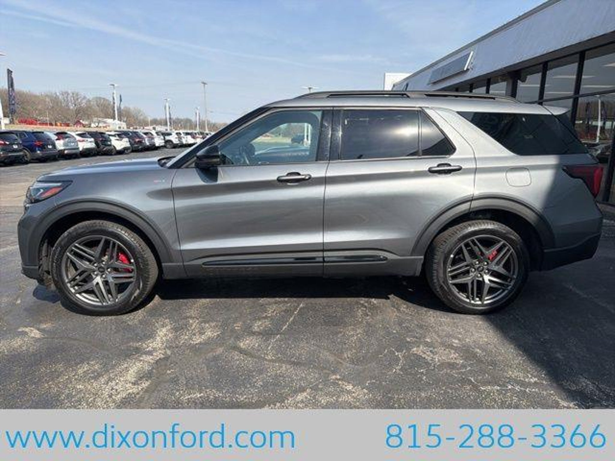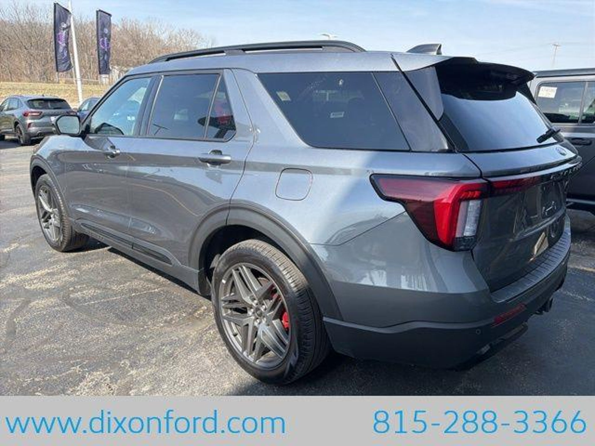 ** Adaptive Cruise Control, ** Alloy Wheels / Premium Wheels, ** Apple CarPlay/Android Auto, ** Automatic Emergency Braking, ** Backup Camera, ** Blind Spot Monitor, ** Bluetooth, Hands Free, ** Brake Assist, ** Cross Traffic Alert, ** Cruise Control, ** Heated Seats, ** Heated Steering Wheel, ** HomeLink, ** Keyless Entry, ** Keyless Start, ** Lane Departure Warning, ** LED Headlights, ** Portable Audio Connection, ** Premium Sound System / Premium Audio, ** Rear Cross Traffic Alert, ** Remote Start, ** Roof Rack, ** Satellite Radio, ** Stability Control, ** Steering Wheel Controls, ** Third Row Seating / 3rd Row Seating, ** Tow Hitch / Trailer Hitch, ** USB Port, 4WD, Equipment Group 300A Standard Package, Performance Brakes, Red Painted Perf Front & Rear Brake Calipers, ST-Line Street Pack, Wheels: 21 Magnetite-Painted Aluminum. Carbonized Gray Metallic 2025 Ford Explorer 4D Sport Utility 2.3L EcoBoost I-4 10-Speed Automatic 4WD ST-Line