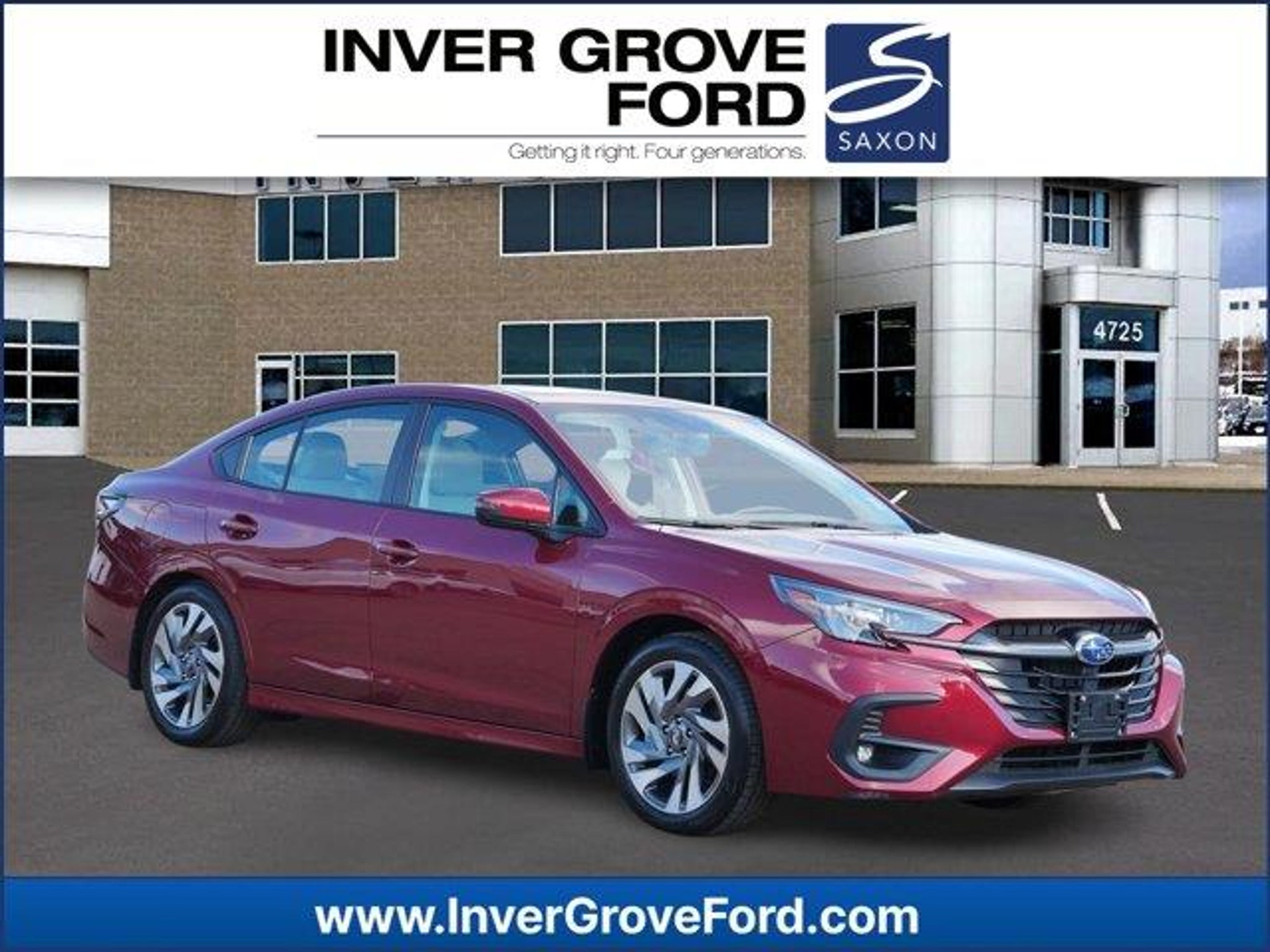 Recent Arrival! 2025 Crimson Red Pearl Subaru Legacy Limited 2.5L 4-Cylinder DOHC 16V Ask About Our Free Certified Pre-Owned Lifetime Powertrain Warranty, 1 Owner Perfect Auto Check, BLIS w/ Cross Traffic Alert, Extremely Clean Inside And Out, Heated & Cooled Leather Seats, INSPECTED, Perfect Autocheck, CAME FROM A GOOD HOME !, 12 Speakers, All-Weather Floor Liners, AM/FM radio: SiriusXM with 360L, Apple CarPlay & Android Auto, Cargo Tray, Emergency communication system: MySubaru Safety Plus (3-year free trial included), Exterior Auto-Dimming Mirror w/Approach Light, Exterior Parking Camera Rear, Garage door transmitter: HomeLink, harman/kardon? Speakers, Heated door mirrors, Heated rear seats, Heated steering wheel, Memory seat, Navigation system: TomTom Navigation w/what3words, Panic alarm, Popular Package #3, Power moonroof, Rear Seatback Protector, Security system, Splash Guards.Odometer is 511 miles below market average! 27/35 City/Highway MPGTHIS VEHICLE IS COVERED BY OUR LIFETIME POWERTRAIN WARRANTY AT NO ADDITIONAL COST. MAJOR PARTS OF THE ENGINE, DRIVETRAIN, AND TRANSMISSION WILL BE COVERED AS LONG AS YOU OWN THE VEHICLE WITH NO YEAR OR MILEAGE RESTRICTIONS. SEE DEALER FOR DETAILS. Due to our AMAZING PRICING, please call before coming in as the vehicles tend to go quickly! Due to our AMAZING PRICING, please call before coming in to see this good-looking 2025 Subaru Legacy as the vehicles tend to go quickly! We have financing options for everyone! We work with over 30 banks to get you the best deal possible. Stop in and see how easy it is. As our way of saying Thank You, Inver Grove Ford sends you home with a full tank of gas and the first oil change is on us! All of our pre-owned vehicles are inspected for safety and drivability so you can buy with confidence at Inver Grove Ford. Call now and schedule a test drive today!
