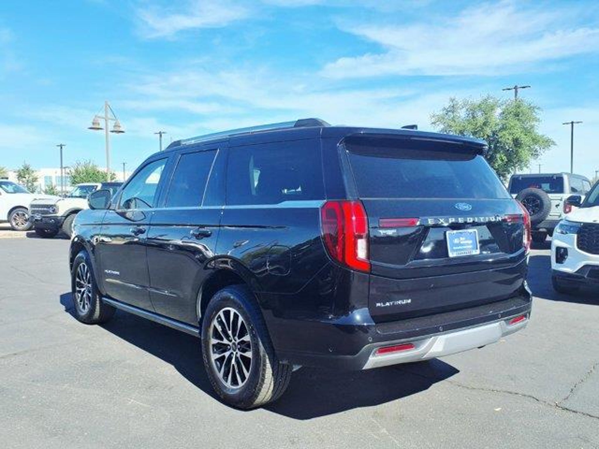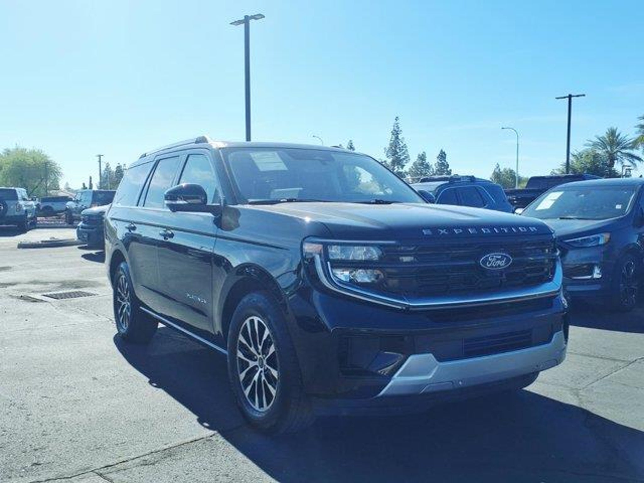 Black Metallic 2025 Ford Expedition Platinum 4WD 10-Speed Automatic EcoBoost 3.5L V6 GTDi DOHC 24V Twin Turbocharged 4WD, 10 Speakers, 2nd Row Power-Folding Captain's Chairs, 3.73 Axle Ratio, 3rd row seats: split-bench, 4-Wheel Disc Brakes, ABS brakes, Adjustable pedals, Air Conditioning, Alloy wheels, AM/FM radio: SiriusXM with 360L, Apple CarPlay/Android Auto, Auto High-beam Headlights, Auto-dimming door mirrors, Auto-dimming Rear-View mirror, Automatic temperature control, Brake assist, Bumpers: body-color, Compass, Delay-off headlights, Driver door bin, Driver vanity mirror, Dual front impact airbags, Dual front side impact airbags, Electronic Stability Control, Emergency communication system: 911 Assist, Equipment Group 600A Standard Package, Exterior Parking Camera Rear, Four wheel independent suspension, Front anti-roll bar, Front Bucket Seats, Front Center Armrest, Front dual zone A/C, Front reading lights, Fully automatic headlights, Garage door transmitter, Genuine wood dashboard insert, Genuine wood door panel insert, Heated & Ventilated Leather Front Captain's Chairs, Heated door mirrors, Heated front seats, Heated rear seats, Heated steering wheel, Illuminated entry, Leather steering wheel, Low tire pressure warning, Memory seat, Navigation System, Occupant sensing airbag, Outside temperature display, Overhead airbag, Overhead console, Panic alarm, Passenger door bin, Passenger vanity mirror, Pedal memory, Power door mirrors, Power driver seat, Power moonroof: Vista Roof, Power passenger seat, Power steering, Power windows, Radio data system, Radio: B&O Sound System by Bang & Olufsen, Rain sensing wipers, Rear air conditioning, Rear anti-roll bar, Rear reading lights, Rear window defroster, Rear window wiper, Reclining 3rd row seat, Remote keyless entry, Security system, SiriusXM w/360L, Speed control, Speed-sensing steering, Speed-Sensitive Wipers, Split folding rear seat, Spoiler, Steering wheel memory, Steering wheel mounted audio controls, Tachometer, Telescoping steering wheel, Tilt steering wheel, Traction control, Trip computer, Turn signal indicator mirrors, Variably intermittent wipers, Ventilated front seats, Voltmeter, Wheels: 20 Ebony Bright Machined Aluminum, 4WD.Odometer is 5162 miles below market average!