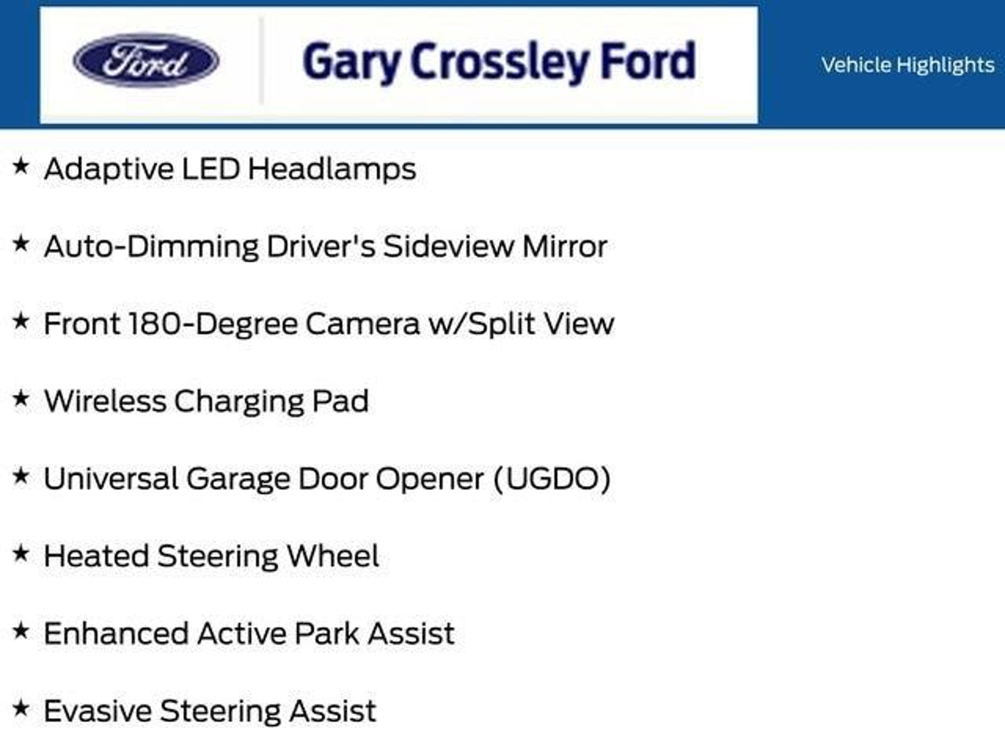 ** Local Trade In **, ** Apple CarPlay & Android Auto **, ** Push Button Start **, ** Rear Back Up Camera **, ** Navigation **, ** Panoramic Roof **, ** Leather Seats **, ** Remote Start **, ** Power Liftgate **, ** Adaptive Cruise **, ** Co Pilot 360 **, ** Heated and Cooled Seats **, ** Heated Steering Wheel **, 110V/150W AC Power Outlet, Adaptive Cruise Control w/Stop & Go, Adaptive LED Headlamps, Auto-Dimming Driver's Sideview Mirror, Connected Navigation, Cooled Front Seats, Enhanced Active Park Assist, Equipment Group 401A, Evasive Steering Assist, Foot Activated Hands-Free Liftgate, Front 180-Degree Camera w/Split View, Heated Rear Seats, Heated Steering Wheel, Lane Centering, Panoramic Vista Roof, Power Tilt/Telescoping Steering Column w/Memory, Remote Start System, Universal Garage Door Opener (UGDO), Wheels: 21 Premium Gloss Black-Painted Aluminum, Wireless Charging Pad. Stone Blue Metallic 2024 Ford Edge ST 2.7L V6 EcoBoost 4D Sport Utility AWD 7-Speed AutomaticRecent Arrival! Odometer is 6992 miles below market average!Come Experience the Crossley Difference! Although every reasonable effort has been made to ensure the accuracy of the information contained on this site, absolute accuracy cannot be guaranteed. Specifications, features, safety and warranty data are based on what is available as standard specs/features per trim level, for the designated model-year, and may not apply to vehicles with added packages or options. See dealer for written warranty information. Dealer makes no guarantees or warranties, either expressly or implied, with respect to the accuracy of any data listed on this page which was obtained from third party sources. All vehicles are subject to prior sale. Prices include all eligible factory rebates to dealer. Prices do not include upfits, plows, or other accessories. Price does not include applicable tax, title, license, processing and/or documentation fees, and any emissions testing charges. Doc fees vary by state (Rhode Island $399, Massachusetts $499, Connecticut $899, New York $175, Illinois $367.70, Florida $995 doc fee and $229 electronic filing fee, Pennsylvania $477.70, Missouri $604.70, New Jersey $795). Price and availability subject to change. Manufacturer's Suggested Retail Price (MSRP) is listed for customer information and customer comparison purposes only, and the actual sales price may vary depending on changing market conditions and other factors. Any information contained on this page should be used for informational purposes only.