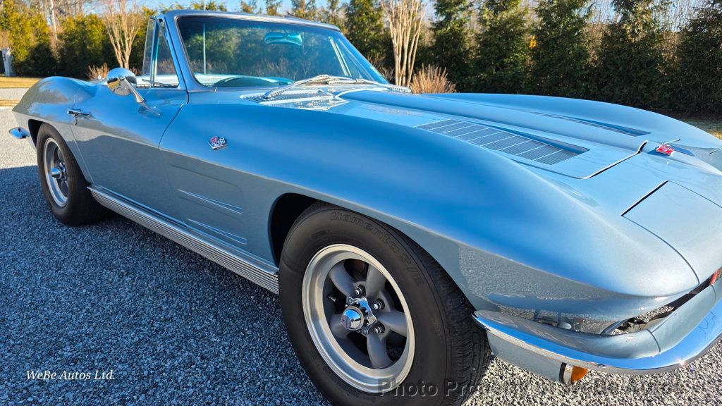 1963 Chevrolet Corvette Stingray Convertible For Sale Completely Restored Roadster ~ Finished in 2008 Beautiful Color Combination of Silver Blue (#912) With the Dark Blue Leather Interior and a White Top Period Correct 327ci/340hp V8 Engine Bored .060 Over ~ Runs Great, Starts Every Time (Casting Number 3782870, 1962-1965) Powerglide Automatic Transmission Discs Brakes Power Steering Edelbrock High-Rise Intake Manifold Edelbrock 600 CFM Carburetor With Electronic Choke Conversion Edelbrock Performance Cylinder Heads, Camshaft, Lifters, Valve Springs and Intake Manifold (All Factory Matched by Edelbrock) Crane Roller Tip Rocker Arms Chevrolet Performance Valve Covers Roller Hydraulic Lifters Trick Flow Specialties Cromoly Push Rods and Edelbrock Guideplates Flat Top TRW Pistons ARP Head Bolts, Cam and Lifter Kit Stock Crank, Stock Connecting Rods Electronic Ignition With Taylor Custom Cut Ignition Wires Chrome Alternator (Original Included) Billet HEI Distributor Conversion With Cable Tach Drive to Match Factory Tach Double Roller Timing Chain New DeWitts High Performance 4 Core Aluminum Radiator ~ Runs Nice and Cool New Fan, Have Original New Water Pump and Lower Radiator Hose Shorty Headers Leading Dual Exhaust System From Manifold To The Exhaust Tips ~ Installed in 2024 Flowmaster Turbo Mufflers Sound Great Brand New Battery in February 2026 All New Grounds and Condensers New Plugs and Wires Correctly Painted Flat Black Under the Hood American Racing Torque Thrust Wheels Wrapped in Nice Tires (Original Steel Wheels and Spinner Caps Included) All New Shocks Beautiful Straight Body, Beautiful Paint, Chrome and Stainless Repainted in February 2006 Along With the Included Hardtop ~ Paint Still Looks New Chrome Rocker Panels and Sill Plates Headlights Work Great ~ Cans Roll Up and Down Nicely (Passenger Side Moves a Bit Slow) Rear Lights and Turn Signals Work All New Tail Lights and Bezels (Originals Included) Rear Bumpers Both Re-Chromed All New Door Handles All New Emblems ~ Original Emblems Included New Softray Tinted Glass Windshield Wipers Work New Custom Wood Steering Wheel ~ Original Included All of the Gauges Work, New Amp and Fuel Gauge, 5,500 RPM Tach Needle Just Fell Off Custom Stereo With AM/FM Radio and 10 Disc CD Player Speakers Up Front and in the Back with a Rear Speaker Bar Equipped With Lo/Jack Theft Protection and Extra Keys Fire Extinguisher and Car Cover Included Trim Tag Decoded: Silver Blue, White Top, Dark Blue Interior., St. Louis, Missouri. Built in the Third Week of May Extremely Well Documented With Loads of Receipts and Documentation Huge Amount of Spare and Original Parts Included ~ Everything From Extra Wheels and Air Cleaner to Visors and Gas Cap Corvette Rims and Hubcaps Included Starts Right Up and Runs Beautifully ~ Drives and Shifts Smoothly For Sale By Owner Located In Watermill, NY 11976 Take A L@@K At The Video On YouTube: https://youtu.be/cenOO5BHW48 Follow This Link To Just about 400 High Resolution Photos: https://photos.app.goo.gl/kM5WMDLxHfg4 SJwo9 WeBe Autos Specializes in Marketing and Advertising Muscle, Classic, Vintage and Specialty Cars. We offer Professional Photography, HD Movies, and Staging that Sells Cars. Let us showcase and sell your specialty car. Please visit our website for more details. Keep in Touch, Michael Runnalls Specialty Car Marketing & Media WeBe Autos Ltd. Long Island, NY 11780 Michael@WeBeAutos.com www.WeBeAutos.com (O)631-339-0399 (C)516-729-2003 Skype: webeautos (F)631-389-2605 - - Premium Sound System, Leather Interior Surface - Contact Michael Runnalls at 631-339-0399 or Michael@WeBeAutos.com for more information. -