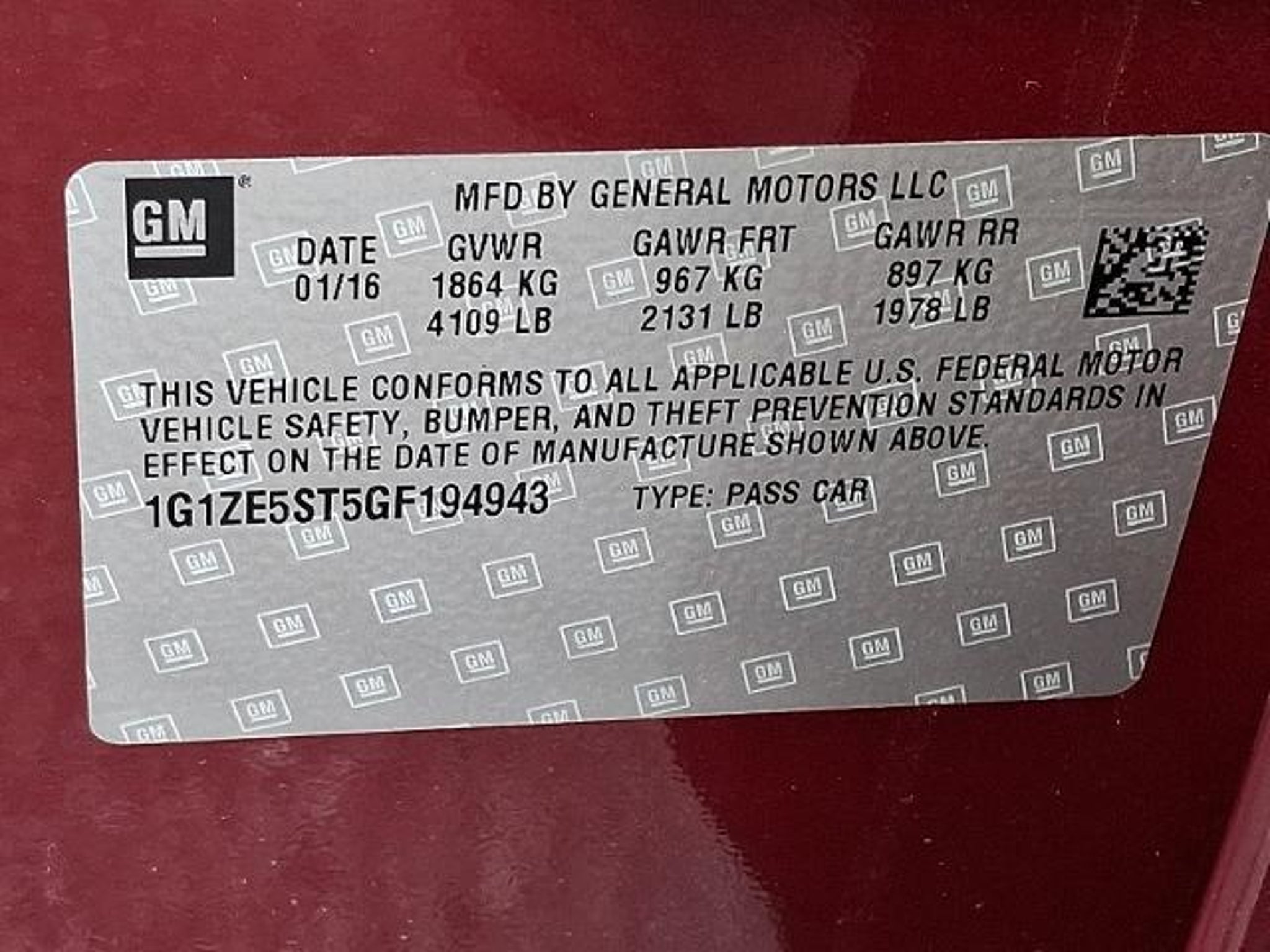 VIN 1G1ZE5ST5GF194943