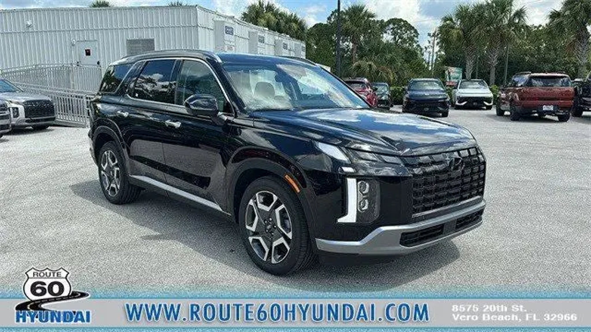 Abyss Black Pearl 2024 Hyundai Palisade SEL V6 AWD 8-Speed Automatic with SHIFTRONICWelcome to Route 60 Hyundai, the Vero Beach dealership that goes the extra mile for you! Our family-owned and -operated Hyundai dealership in Vero Beach, FL, prides itself on delivering exceptional customer service and an unmatched selection of new and used Hyundai vehicles. Our Hyundai sales, service and financing teams assist our guests in a hassle-free environment, and pair them with competitive Hyundai lease specials and Hyundai service coupons to help them save. At Route 60 Hyundai, we strive for excellence, so visit our Hyundai model showroom to buy or service a Hyundai!Equipped with Premium Package (115-Volt AC Power Outlet, 12.3 Full-Digital Multi-Information Display, 3rd Row USB Outlets, Acoustic Rear Side Glass, Blind-Spot View Monitor, Driver 4-Way Power Lumbar Support, Forward Collision Avoidance Assist, Front Parking Sensors, harman/kardon® Audio System, Heated 2nd Row Seats, Heated Steering Wheel, Highway Driving Assist 2, HomeLink, Hydro-Phobic Front Side Glass, Integrated Memory Driver Seat & Mirrors, Option Group 02, Passenger Talk (In-Car Intercom), Power Sunroof, Rear Side Window Sunshades, Surround View Monitor, Ventilated Front & 2nd-Row Seats, and Wheels: 20 x 7.5J Alloy), 3.648 Axle Ratio, 3rd row seats: split-bench, 4-Wheel Disc Brakes, 6 Speakers, ABS brakes, Air Conditioning, Alloy wheels, AM/FM radio: SiriusXM, Apple CarPlay & Android Auto, Auto High-beam Headlights, Auto-dimming door mirrors, Auto-dimming Rear-View mirror, Automatic temperature control, Brake assist, Bumpers: body-color, Cargo Block, Cargo Net, Cargo Tray, Carpeted Floor Mats, Delay-off headlights, Driver door bin, Driver vanity mirror, Dual front impact airbags, Dual front side impact airbags, Electronic Stability Control, Emergency communication system, Exterior Parking Camera Rear, First Aid Kit, Four wheel independent suspension, Front anti-roll bar, Front Bucket Seats, Front Center Armrest, Front dual zone A/C, Front reading lights, Fully automatic headlights, H-Tex Leatherette Seat Trim, Heated door mirrors, Heated Front Bucket Seats, Heated front seats, Illuminated entry, Knee airbag, Low tire pressure warning, Navigation System, Occupant sensing airbag, Outside temperature display, Overhead airbag, Overhead console, Panic alarm, Passenger door bin, Passenger vanity mirror, Power door mirrors, Power driver seat, Power Liftgate, Power passenger seat, Power steering, Power windows, Radio data system, Radio: AM/FM/MP3 Audio System, Rear air conditioning, Rear anti-roll bar, Rear audio controls, Rear reading lights, Rear side impact airbag, Rear window defroster, Rear window wiper, Reclining 3rd row seat, Remote keyless entry, Security system, Speed control, Speed-sensing steering, Split folding rear seat, Spoiler, Steering wheel mounted audio controls, Tachometer, Telescoping steering wheel, Tilt steering wheel, Traction control, Trip computer, Turn signal indicator mirrors, Variably intermittent wipers, Wheel Locks, and Wheels: 18 x 7.5J Painted Finish Alloy.