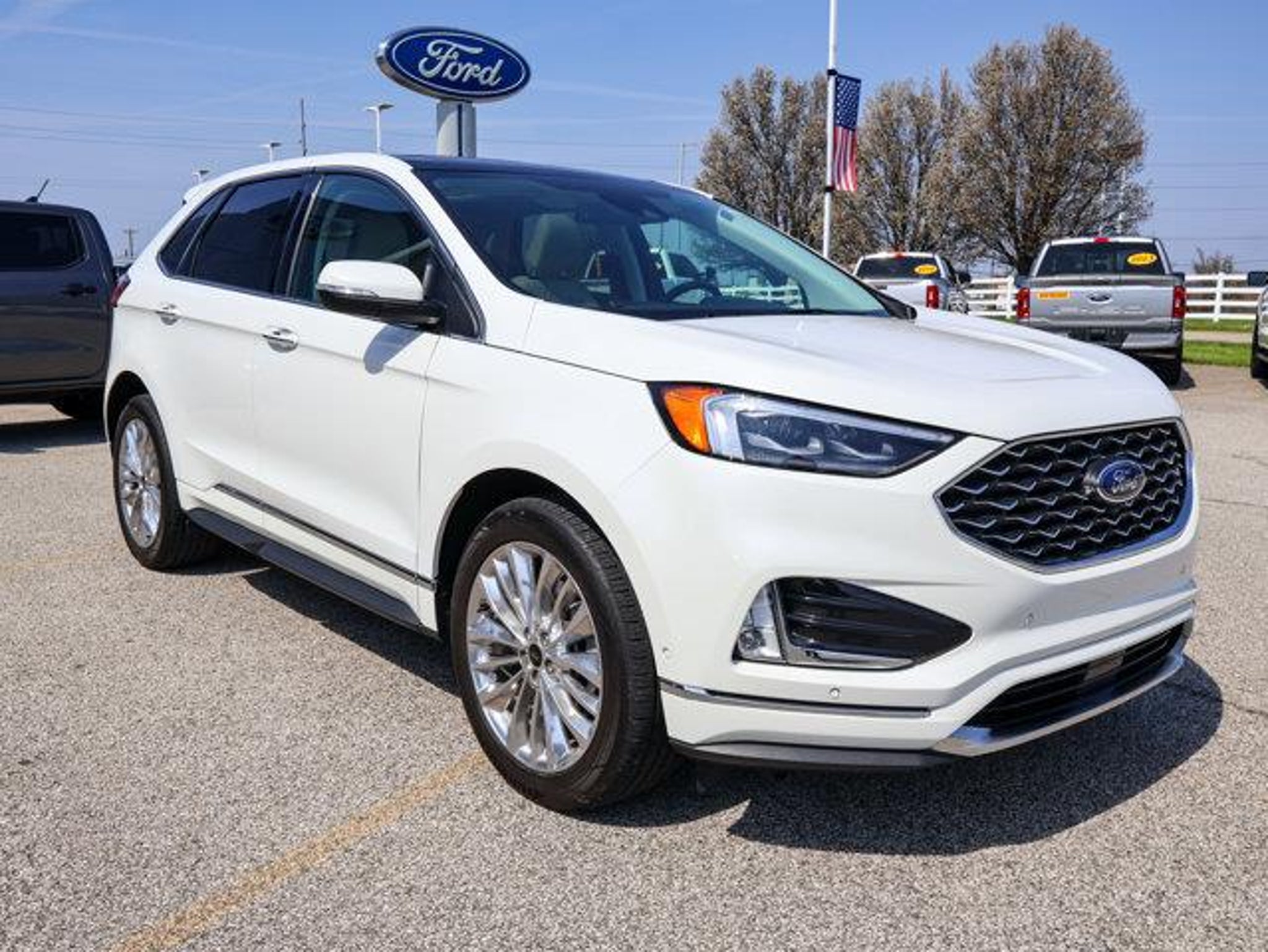 Details > 2024 Ford Edge AWD Titanium 4DR SUV For Sale in Florence, KY Private Party Sellers Click here to place your ad now! You auta tell them you saw the ad in AutaBuy when you call or email. 1/35 2/35 3/35 4/35 5/35 6/35 7/35 8/35 9/35 10/35 11/35 12/35 13/35 14/35 15/35 16/35 17/35 18/35 19/35 20/35 21/35 22/35 23/35 24/35 25/35 26/35 27/35 28/35 29/35 30/35 31/35 32/35 33/35 34/35 35/35 View 35 Photos View All Add to My Garage Parked in Your Garage! Airport Ford Contact Seller: I would like to: Make Offer Check Availability Ask A Question Request More Photos Check Financing Options Send a copy of this message to me Add this listing to my garage Send to Mobile Mileage 14,959 Exterior Color Star White Doors 4 Engine 2.0L I4 Transmission 8 Speed Auto Stock # RBA65045 VIN 2FMPK4K90RBA65045 Estimated Monthly Payment $713 mo Apply Now J.J. Best Banc & Co. 2024 Ford Edge AWD Titanium 4DR SUV Description: · Mileage: 14,959 · Color: Star White Price: $40,995. Mileage 14,959 Exterior Color Star White Doors 4 Engine 2.0L I4 Transmission 8 Speed Auto Stock # RBA65045 VIN 2FMPK4K90RBA65045 Estimated Monthly Payment $713 mo Apply Now J.J. Best Banc & Co. Add to My Garage Parked in Your Garage! Message Seller Airport Ford Contact Seller: I would like to: Make Offer Check Availability Ask A Question Request More Photos Check Financing Options Send a copy of this message to me Add this listing to my garage Offered for sale by Airport Ford FLORENCE, KY Price: $40,995. Offered for sale by Airport Ford FLORENCE, KY [entire inventory] Ask Auta Intelligence The first collector-car AI built directly into a classic car marketplace How many passengers can this seat comfortably? What transmission options did these offer? What kind of mileage do these get? How far is this from me? Where is this located? Can you show me more suvs for a similar price? How many of these were produced? What safety features does this model offer? What engine options did these come with? What trim levels were available for this model? Tell me about this model What factory options were available on this model? What colors did these come in? When was this model first introduced? How many Edges were produced in White? How easy are parts to find for this model? What does this VIN number tell me? Do you have a similar car to sell? List It Now! Questions about this car? Ask Auta Intelligence for production numbers, available options, etc. · Subscribe to AutaBuy! · Send a Gift Subscription Notice to a Friend