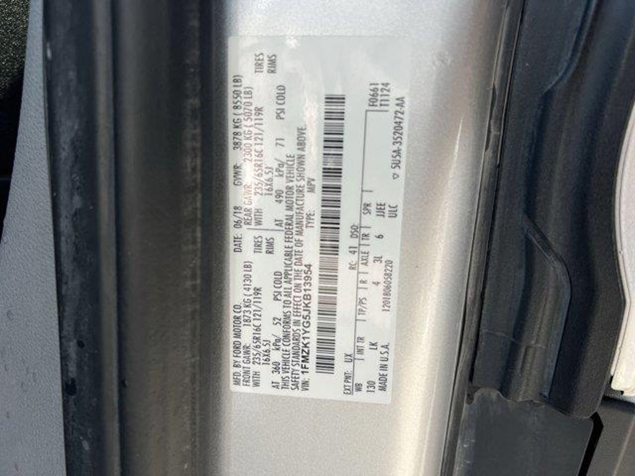 VIN 1FMZK1YG5JKB13954