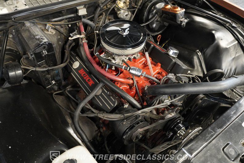 Raise the hood and you'll see that this Buick's expansive engine compartment has been put to good use, with a sizable 455-cubic-inch V8 holding court at its center. The engine was rebuilt not that many miles ago, with receipts on hand to back this up, and is fed by a four-barrel Edelbrock carburetor perched on a stock intake manifold. Tap on the gas pedal, and the big block will emit just the right note out of the pair of Flowmaster mufflers that cap off its dual exhaust. The accompanying 3-speed automatic TH400 transmission is also in solid working order, shifting through its gears cleanly. Power steering makes this substantial cruiser easy to maneuver, while power brakes that include discs up front provide confidence-inspiring stopping ability. An upgraded aluminum fan is now positioned up front to help keep operating temperatures under control.