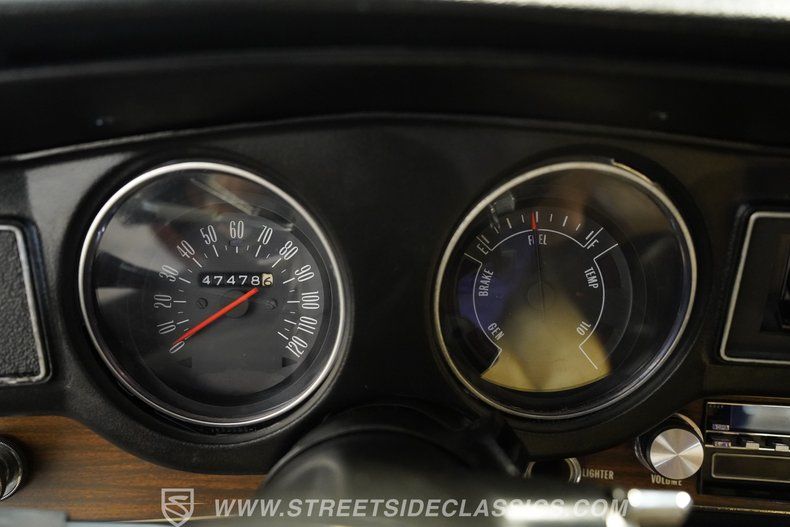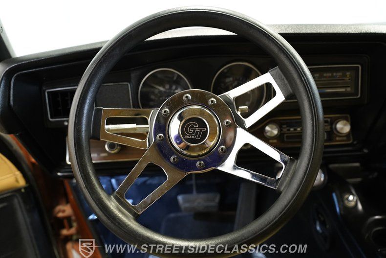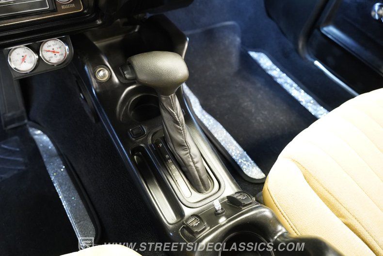 The tan interior really presents well, with seating in both front and back that shows only the slightest of wear, along with carpeting, door panels and headliner that are equally fresh. The front buckets straddle a center console that has been outfitted with USB ports and houses a shifter from what is likely a later model GM car, with a Grant steering wheel now perched on the tilt column above. These aftermarket touches, along with upgraded LED lighting, add a bit of customization to an interior that is otherwise in very clean factory condition and, in fact, still includes the original AM/FM/8-Track stereo at the center of the dash.