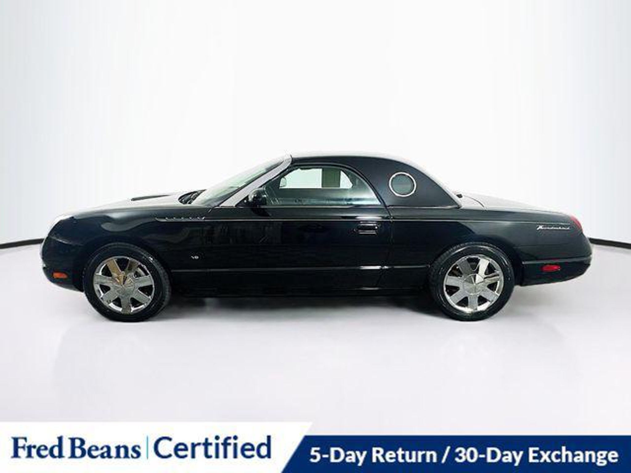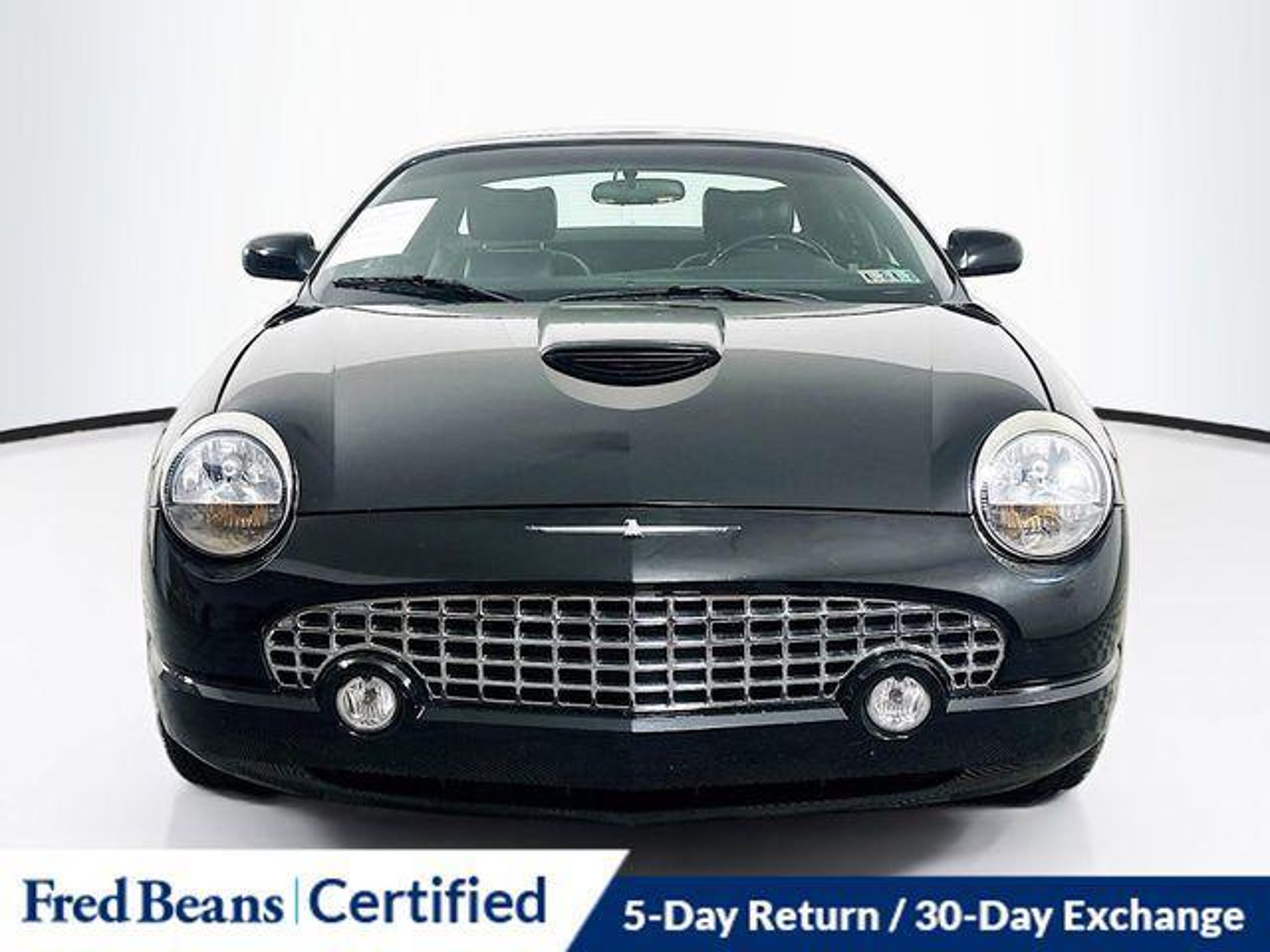Discover the timeless allure of the 2003 Ford Thunderbird Base, a captivating blend of classic styling and modern amenities. This stunning black convertible is a true head-turner, exuding a sophisticated and elegant presence that will turn heads wherever you go. Boasting a well-equipped interior, this Thunderbird offers a host of desirable features, including - AS-IS Vehicle, Auto Rewards Program, Great Service History, Local Trade, Audiophile ETR AM/FM Stereo w/In-Dash 6-CD, Premium audio system, Front dual zone A/C, Power driver seat, Remote keyless entry, Steering wheel mounted audio controls, Fully automatic headlights, Illuminated entry, Leather Shift Knob, Leather steering wheel, Power passenger seat, and Alloy wheels. Powered by a robust 3.9L V8 DOHC 32V engine paired with a 5-Speed Automatic transmission, this Thunderbird delivers an exhilarating driving experience while achieving a respectable 18 city / 24 highway MPG. With its rear-wheel-drive configuration, you'll enjoy the thrill of responsive handling and the confidence of traction control. Step inside and be captivated by the premium Audiophile audio system, which provides a rich, immersive listening experience. Sink into the plush leather seats and enjoy the convenience of dual-zone climate control, ensuring your comfort no matter the weather. The power-operated convertible roof allows you to effortlessly transition from open-air cruising to a cozy, enclosed cabin, providing the ultimate in versatility. Beyond its impressive features, this Thunderbird boasts a well-maintained service history, giving you the peace of mind that comes with owning a well-cared-for vehicle. With its local trade-in status, you can be confident in its provenance and the value it offers. Elevate your driving experience and make a statement with the 2003 Ford Thunderbird Base. This timeless classic combines the best of yesterday and today, offering a truly unique and unforgettable driving experience. Visit our showroom today to discover the true essence of this remarkable automobile.