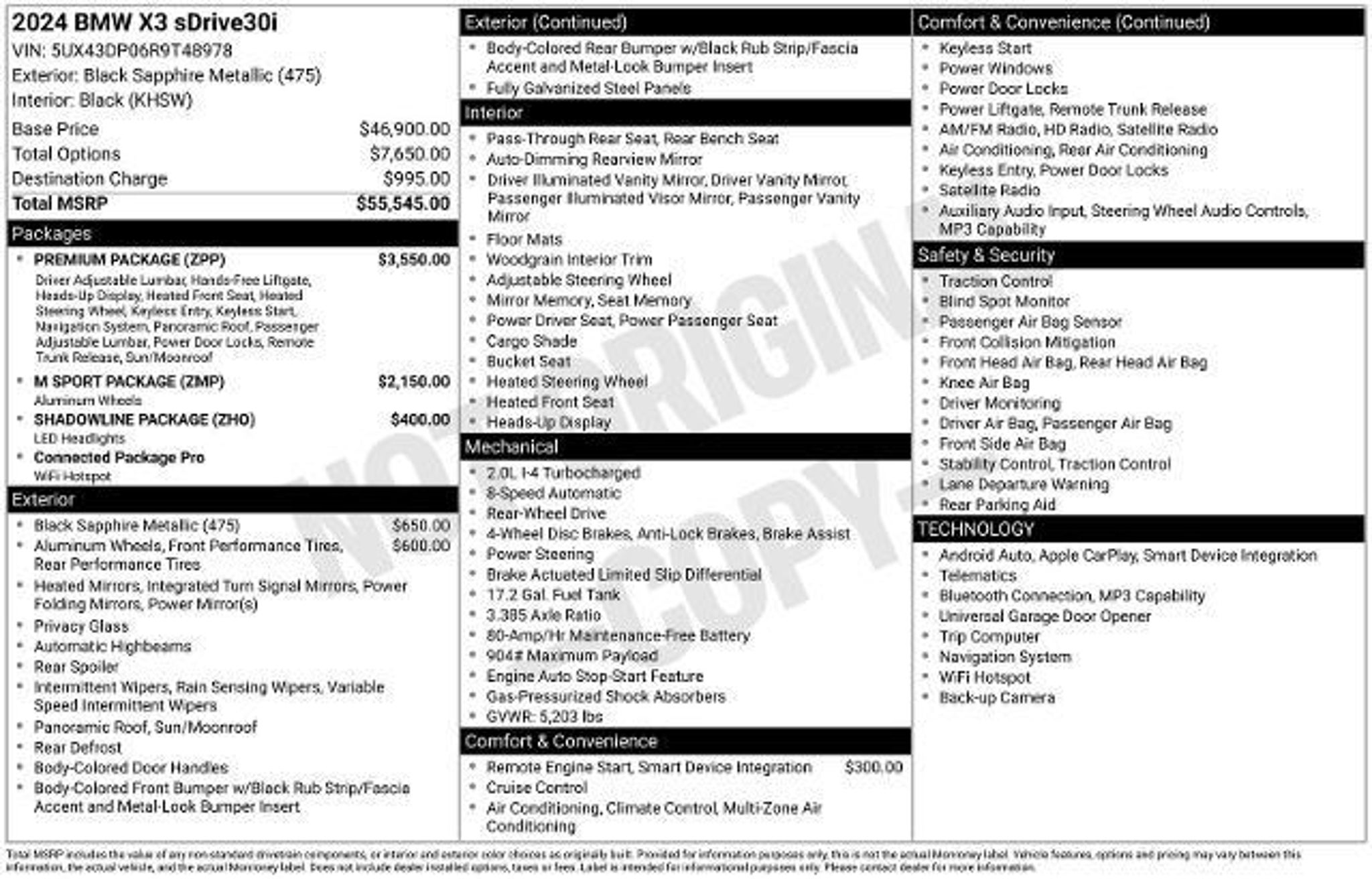 Black Sapphire Metallic 2024 BMW X3 sDrive30i RWD 8-Speed Automatic Sport I4 8-Speed Automatic Sport. This 2024 BMW X3 sDrive30i is available for sale just a country mile down the road from Corpus Christi in Aransas Pass, TX. Recent Arrival! Odometer is 4063 miles below market average! 23/29 City/Highway MPG Make the short drive from Corpus Christi to Aransas Pass, TX and have your new 2024 BMW X3 sDrive30i sitting in your driveway this evening!