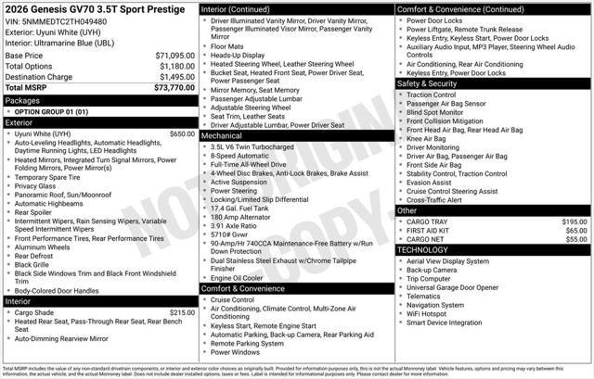 2026 Genesis GV70 AWD 3.5T Sport Prestige 4DR SUV