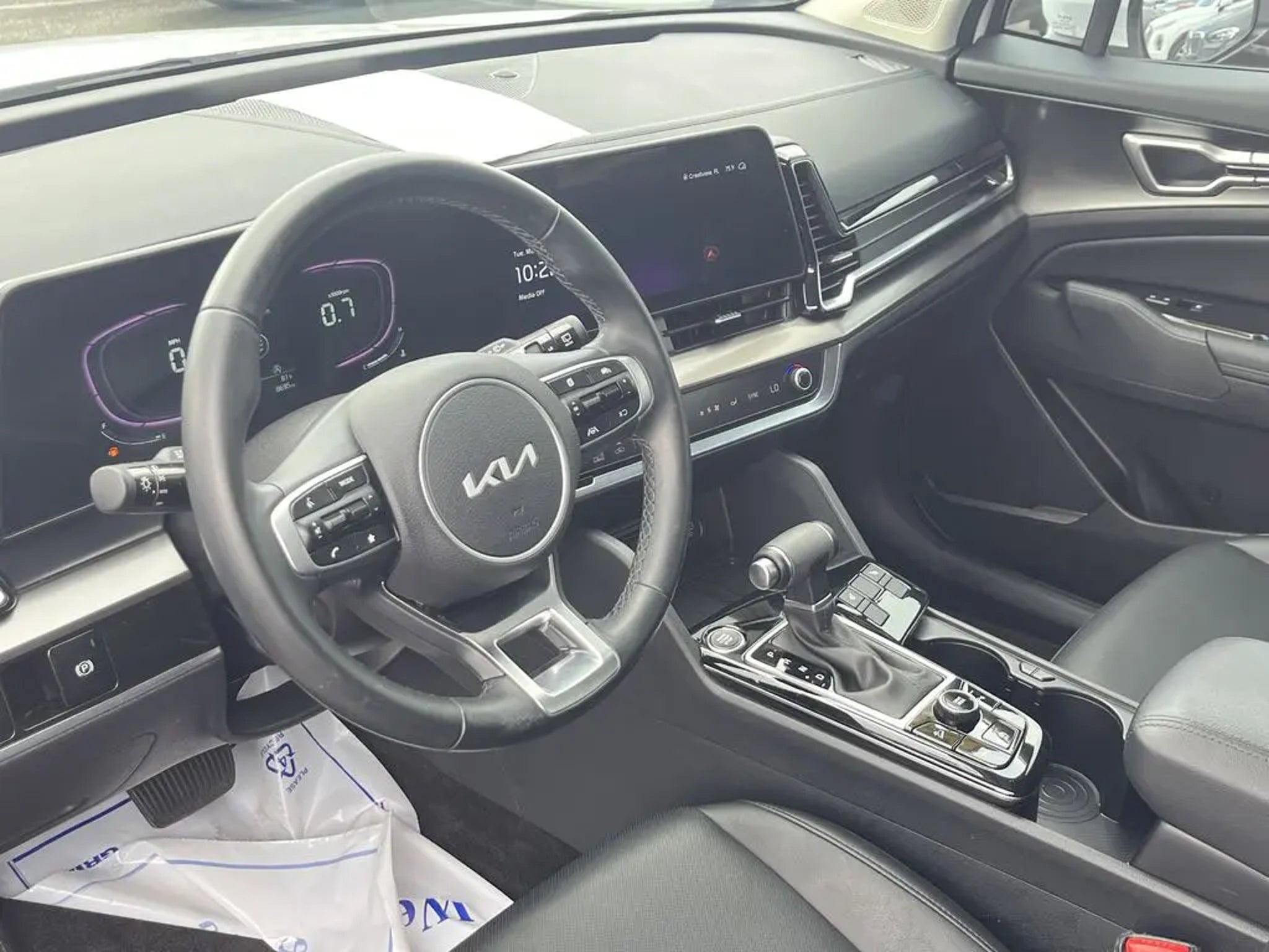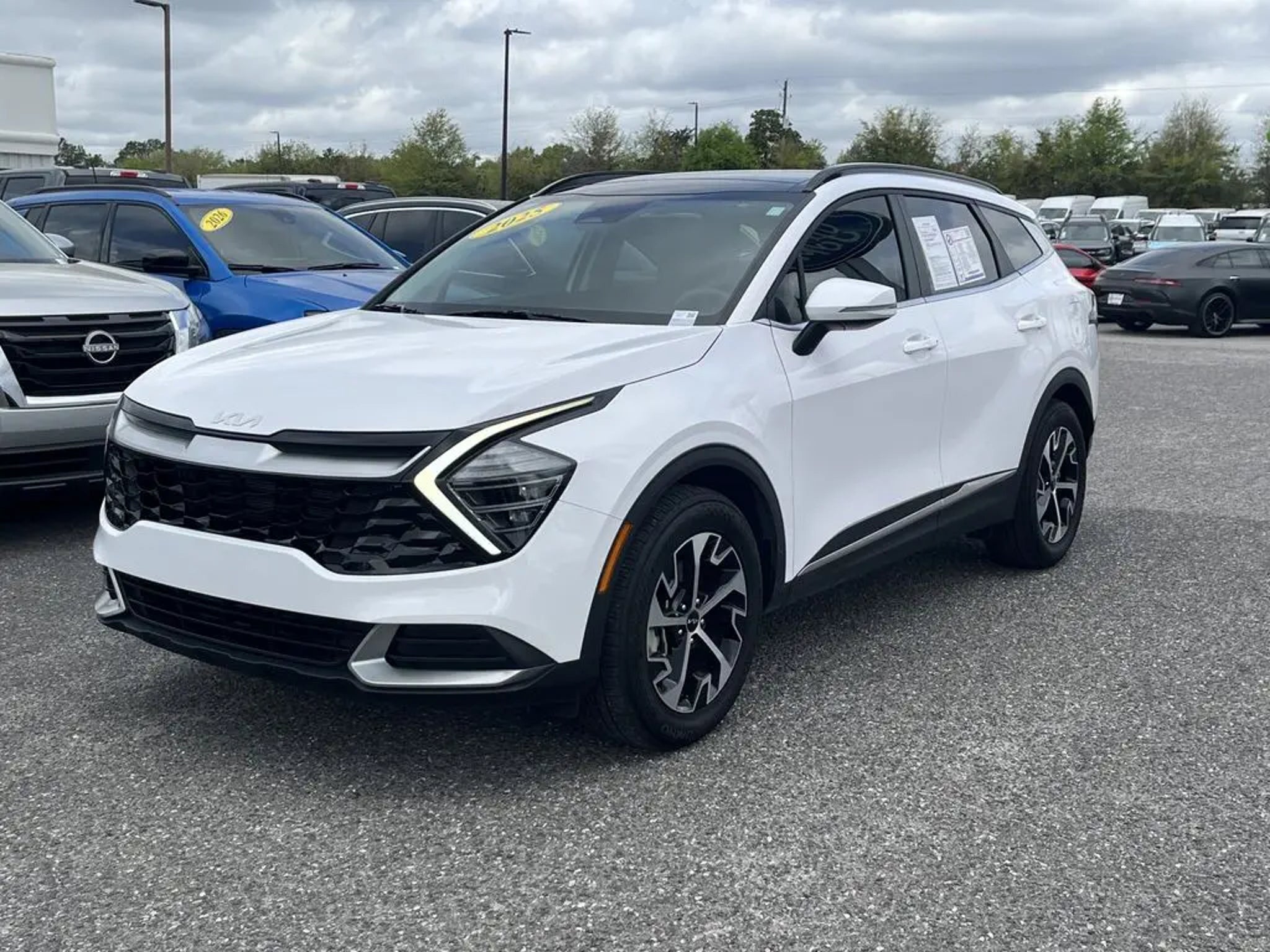 The 2025 Kia Sportage EX is a well-equipped midsize SUV offering a strong mix of efficiency, technology, and comfort. Powertrain & Performance Engine: 2.5L 4-cylinder gas engine Horsepower: 187 hp @ 6,100 rpm Torque: 178 lb-ft @ 4,000 rpm Transmission: 8-speed automatic Drivetrain: Available in FWD or AWD Towing capacity: 2,500 lbs Fuel economy: FWD: 28 mpg combined (25 city / 32 highway) AWD: 25 mpg combined (23 city / 27 highway). Odometer is 11490 miles below market average! Premium Package (Illuminated Dual Vanity Mirrors, LED Interior Lighting, Panoramic Sunroof, and Smart Power Liftgate), 4-Wheel Disc Brakes, 6 Speakers, ABS brakes, Air Conditioning, Alloy wheels, AM/FM radio: SiriusXM, Apple CarPlay & Android Auto, Auto High-beam Headlights, Automatic temperature control, Brake assist, Bumpers: body-color, Carpeted Floor Mats, Compass, Delay-off headlights, Driver door bin, Driver vanity mirror, Dual front impact airbags, Dual front side impact airbags, Electronic Stability Control, Emergency communication system, Four wheel independent suspension, Front anti-roll bar, Front Bucket Seats, Front Center Armrest, Front dual zone A/C, Fully automatic headlights, Heated door mirrors, Heated Front Bucket Seats, Heated front seats, Illuminated entry, Leather Shift Knob, Leather steering wheel, Leatherette Seat Trim, Low tire pressure warning, Navigation System, Occupant sensing airbag, Outside temperature display, Overhead airbag, Overhead console, Panic alarm, Passenger door bin, Passenger vanity mirror, Power door mirrors, Power driver seat, Power steering, Power windows, Radio: AM/FM/HD Audio System, Rain sensing wipers, Rear anti-roll bar, Rear seat center armrest, Rear side impact airbag, Rear window defroster, Rear window wiper, Remote keyless entry, Security system, Speed control, Speed-sensing steering, Split folding rear seat, Spoiler, Steering wheel mounted audio controls, Tachometer, Telescoping steering wheel, Tilt steering wheel, Traction control, Trip computer, Turn signal indicator mirrors, Variably intermittent wipers, and Wheels: 18 x 7.5J Machined Alloy. Glacial White Pearl 2025 Kia Sportage EX FWD 8-Speed Automatic I4