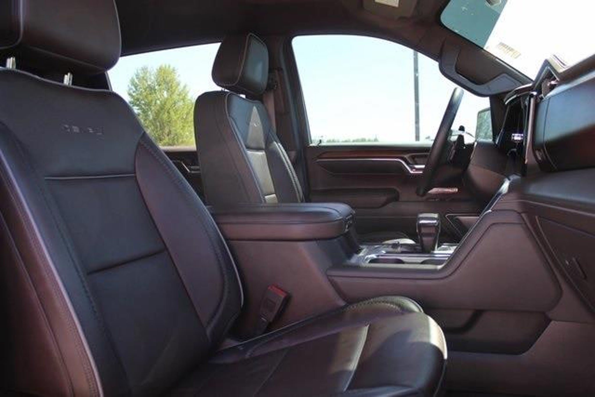 Onyx Black 2024 GMC Sierra 1500 Denali 4WD 10-Speed Automatic EcoTec3 6.2L V8 CLEAN CARFAX, 10-Speed Automatic, 4WD, Atmosphere/Brownstone Leather, 12-Way Power Driver Seat Adjuster w/Lumbar, 12-Way Power Passenger Seat Adjuster w/Lumbar, 120-Volt Bed Mounted Power Outlet, 120-Volt Interior Power Outlet, 170 Amp Alternator, 2 Charge/Data USB Ports Inside Center Console, 2 Type-C Charge-Only Rear USB Ports, 2 USB Ports, 3.23 Rear Axle Ratio, 4-Wheel Disc Brakes, 7 Speakers, ABS brakes, Adaptive suspension, Air Conditioning, Alloy wheels, AM/FM radio: SiriusXM with 360L, Apple CarPlay/Android Auto, Auto High-beam Headlights, Auto-dimming door mirrors, Auto-dimming Rear-View mirror, Auto-Locking Rear Differential, Automatic temperature control, Auxiliary External Transmission Oil Cooler, Bed View Camera, Brake assist, Buckle to Drive, Bumpers: body-color, Chrome Header w/Signature Denali Chrome Grille, Chrome Recovery Hooks, Chrome Wheel To Wheel Assist Steps, Color-Keyed Carpeting Floor Covering, Compass, Deep-Tinted Glass, Delay-off headlights, Denali Premium Suspension w/Adaptive Ride Control, Driver door bin, Driver Memory, Driver vanity mirror, Dual Active Exhaust, Dual front impact airbags, Dual front side impact airbags, Electric Rear-Window Defogger, Electronic Stability Control, Emergency communication system: OnStar and GMC connected services capable, Enhanced Automatic Emergency Braking, Floor-Mounted Center Console, Following Distance Indicator, Forge Perforated Leather Seat Trim, Forward Collision Alert, Front anti-roll bar, Front Bucket Seats, Front Center Armrest, Front dual zone A/C, Front fog lights, Front Pedestrian Braking, Front Rain-Sensing Wipers, Front reading lights, Front wheel independent suspension, Fully automatic headlights, Garage door transmitter, Genuine wood console insert, Genuine wood dashboard insert, Genuine wood door panel insert, GMC Connected Access Capable, HD Surround Vision, Heated 2nd Row Outboard Seats, Heated door mirrors, Heated Driver & Front Outboard Passenger Seating, Heated front seats, Heated rear seats, Heated steering wheel, Heavy-Duty Air Filter, Hill Descent Control, Hitch Guidance, Hitch View, Illuminated entry, In-Vehicle Trailering System App, Integrated Trailer Brake Controller, IntelliBeam Automatic High Beam On/Off, Keyless Open & Start, Lane Keep Assist w/Lane Departure Warning, LED Cargo Area Lighting, Low tire pressure warning, Memory seat, Multicolor 15 Diagonal Head-Up Display, Navigation System, Occupant sensing airbag, OnStar & GMC Connecte