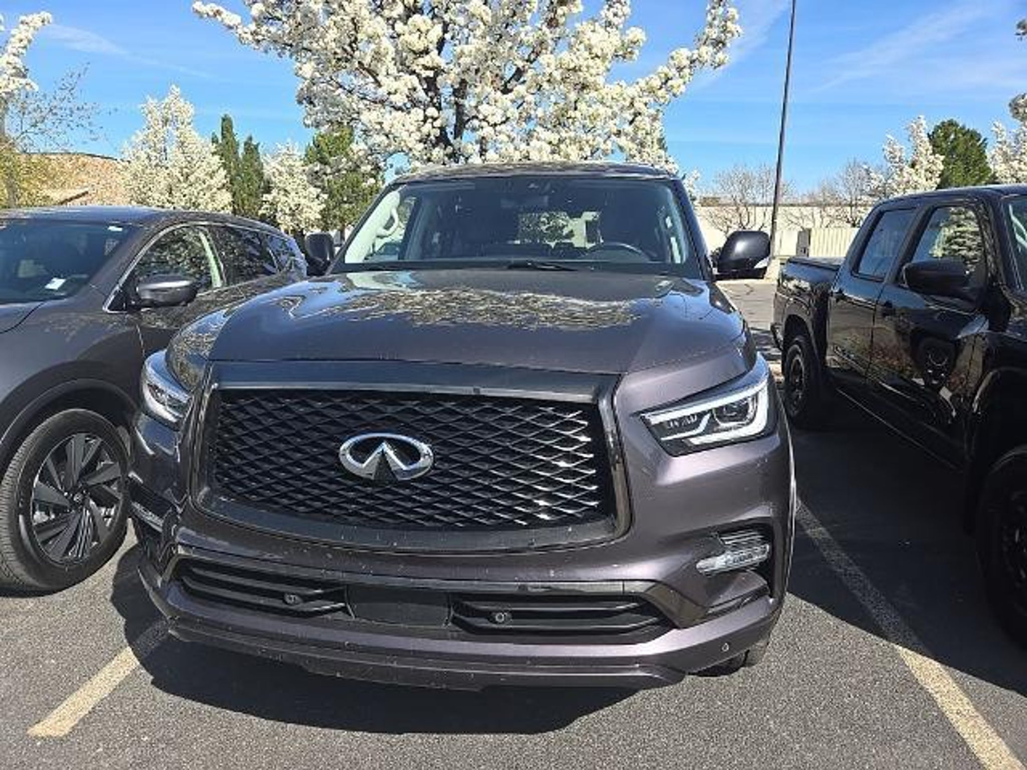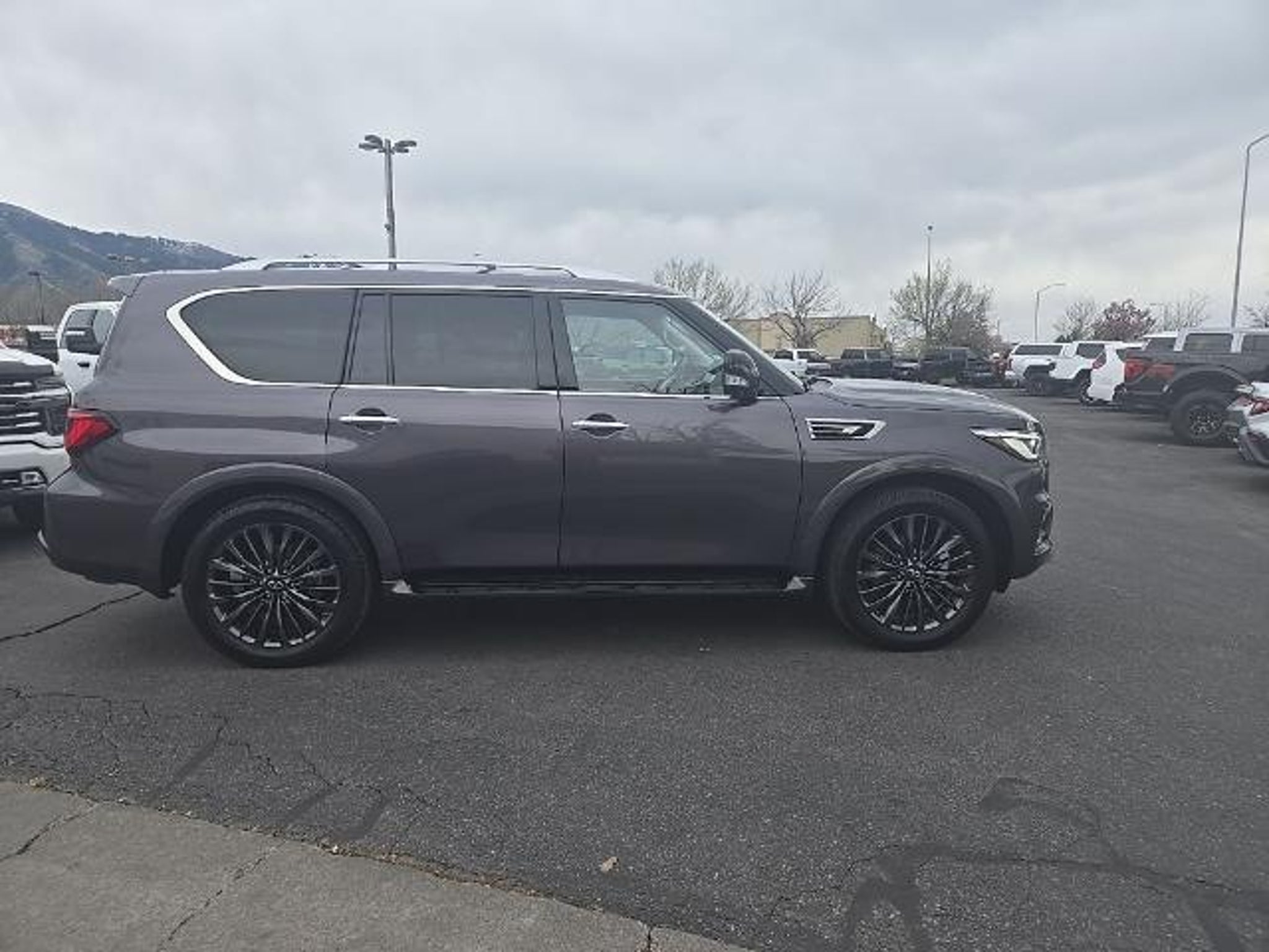 Elevate your driving experience with this exceptional 2022 INFINITI QX80 Premium Select. Boasting a powerful 5.6L V8 engine, 4-wheel drive capabilities, and a refined Bose premium audio system, this luxury SUV is the perfect blend of performance and sophistication. - ROOF RAIL CROSS BARS - INFINITI RADIANT ILLUMINATED KICK PLATES - CARGO PACKAGE (Includes First-Aid Kit, Console Net, High-Density Non-Slip Rear Cargo Carpet, Nylon-Cord Cargo Net, tie-down hooks) Slip into the premium Truffle Brown interior, where you'll be surrounded by leather-appointed seats, a heated steering wheel, and a 13-speaker Bose sound system that will elevate your daily commute. The INFINITI InTouch navigation system and 360-degree camera provide seamless connectivity and enhanced visibility, ensuring a confident driving experience. With seating for up to eight and a spacious cargo area, the QX80 is the perfect companion for your family adventures. The power liftgate, auto-leveling suspension, and advanced safety features, including emergency communication and anti-whiplash front head restraints, provide both convenience and peace of mind. Elevate your driving experience and make a statement on the road with this exceptional 2022 INFINITI QX80 Premium Select. Schedule a test drive today and discover the perfect blend of luxury, performance, and versatility that this SUV has to offer.