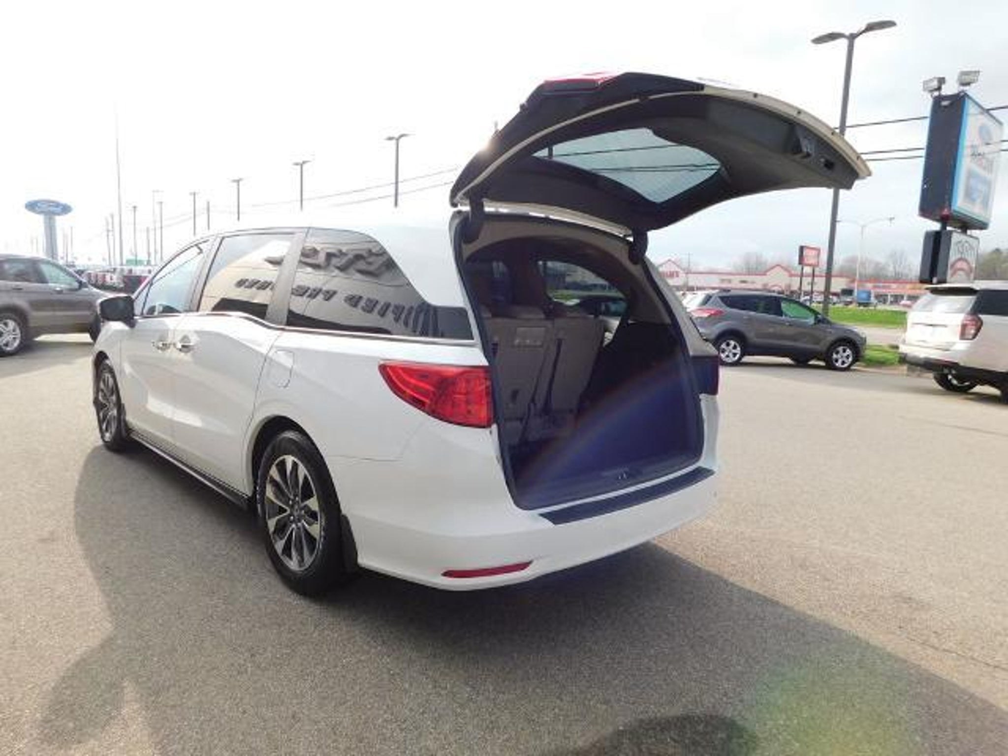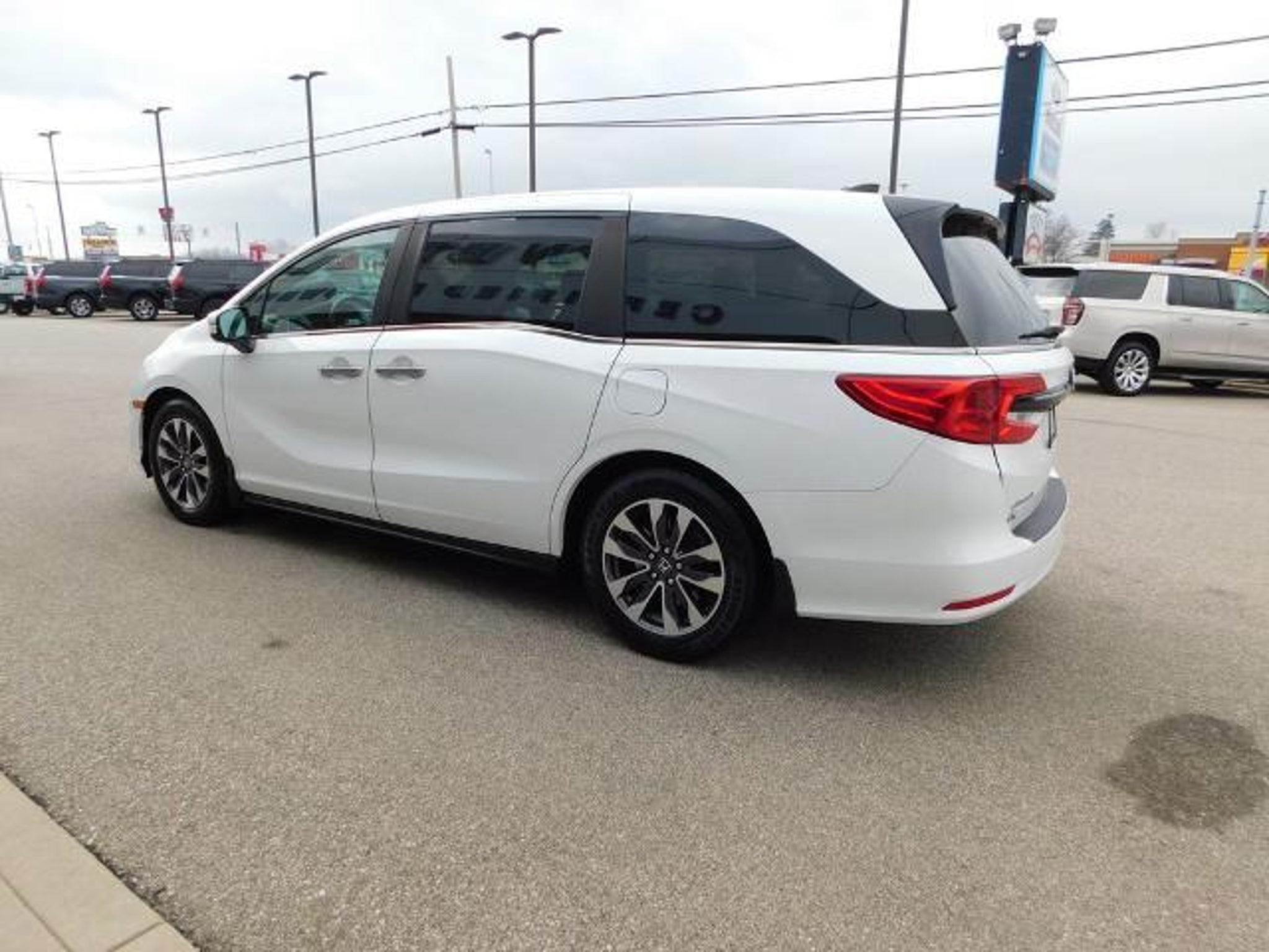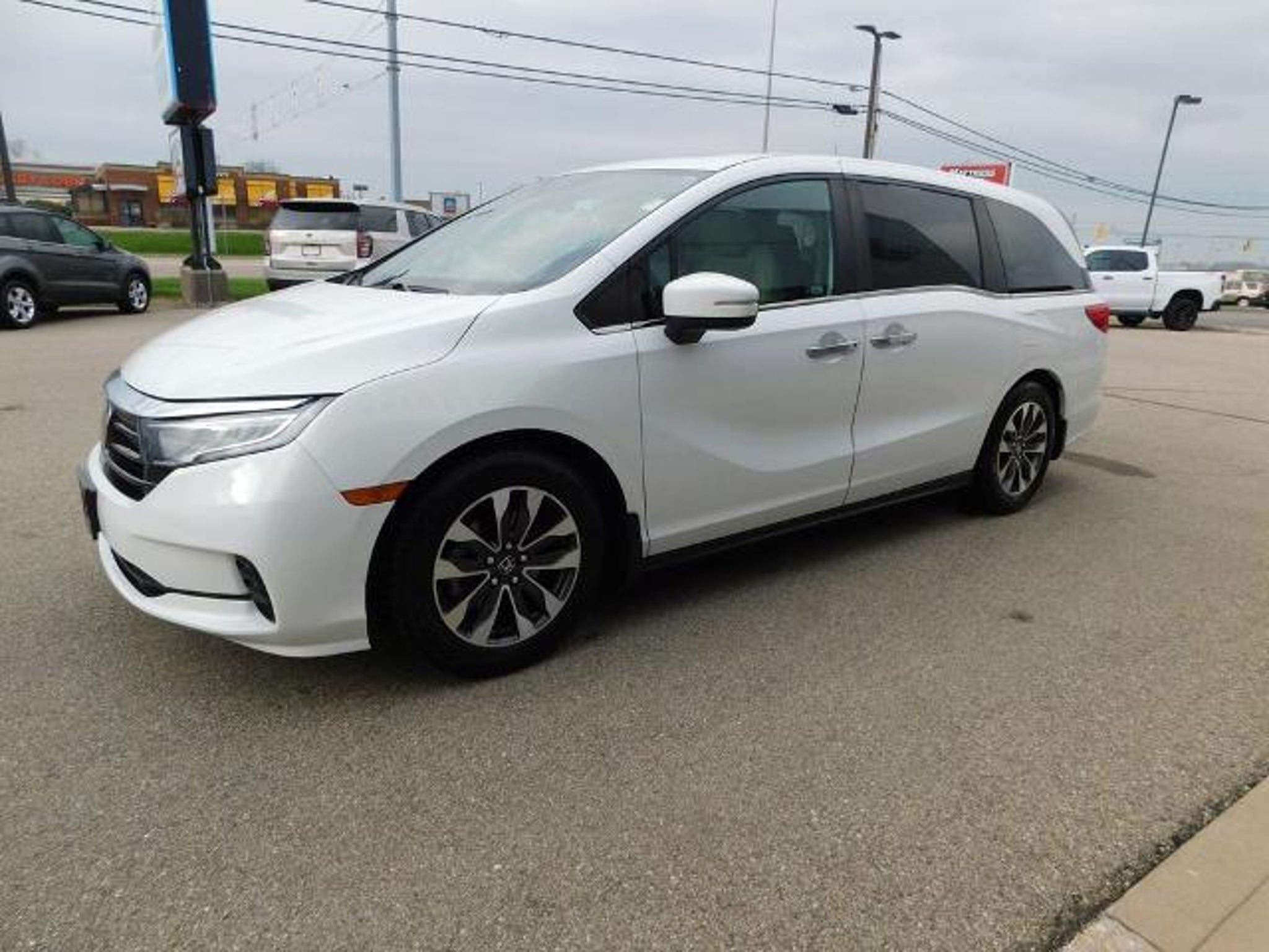Recent Arrival! 3rd row seats: split-bench, 4-Wheel Disc Brakes, 7 Speakers, A/V remote: CabinControl, ABS brakes, Adaptive Cruise Control: Adaptive Cruise Control (ACC) with Low-Speed Follow, Air Conditioning, AM/FM radio: SiriusXM, Anti-whiplash front head restraints, Apple CarPlay/Android Auto, Automatic temperature control, Blind Spot Information (BSI) System warning, Brake assist, Dual front impact airbags, Dual front side impact airbags, Electronic Stability Control, Exterior Parking Camera Rear, Forward collision: Collision Mitigation Braking System (CMBS) FCW mitigation, Front anti-roll bar, Front dual zone A/C, Fully automatic headlights, Heated door mirrors, Heated Front Bucket Seats, Knee airbag, Lane departure: Lane Keeping Assist System (LKAS) active, Leather Seat Trim, Low tire pressure warning, Memory seat, Occupant sensing airbag, Overhead airbag, Panic alarm, Power door mirrors, Power driver seat, Power Liftgate, Power moonroof, Power passenger seat, Power steering, Power windows, Radio data system, Radio: 160-Watt AM/FM/HD/SiriusXM Audio System, Rear air conditioning, Rear anti-roll bar, Rear window defroster, Reclining 3rd row seat, Remote keyless entry, Security system, Spoiler, Steering wheel mounted audio controls, Turn signal indicator mirrors. Clean CARFAX. White 2021 Honda Odyssey EX-L 4D Passenger Van FWD 10-Speed Automatic 3.5L V6 SOHC i-VTEC 24V 19/28 City/Highway MPG Awards: * ALG Residual Value Awards, Residual Value Awards Full tank of gas, full detail, 3 day satisfaction guarantee.