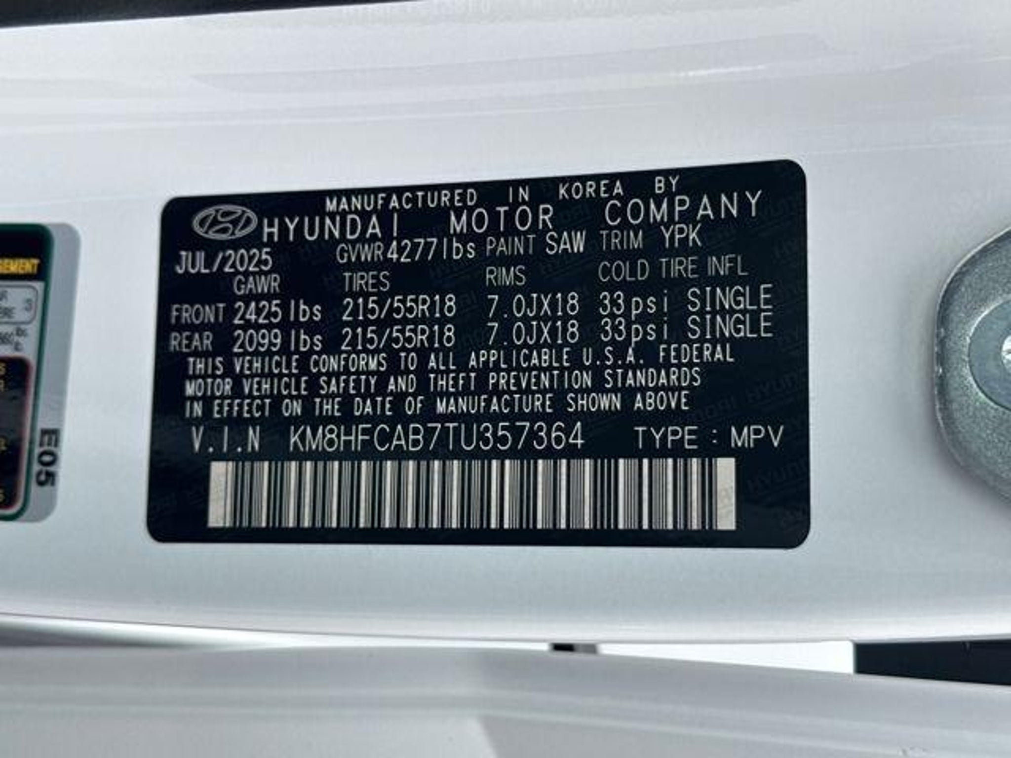 VIN KM8HFCAB7TU357364