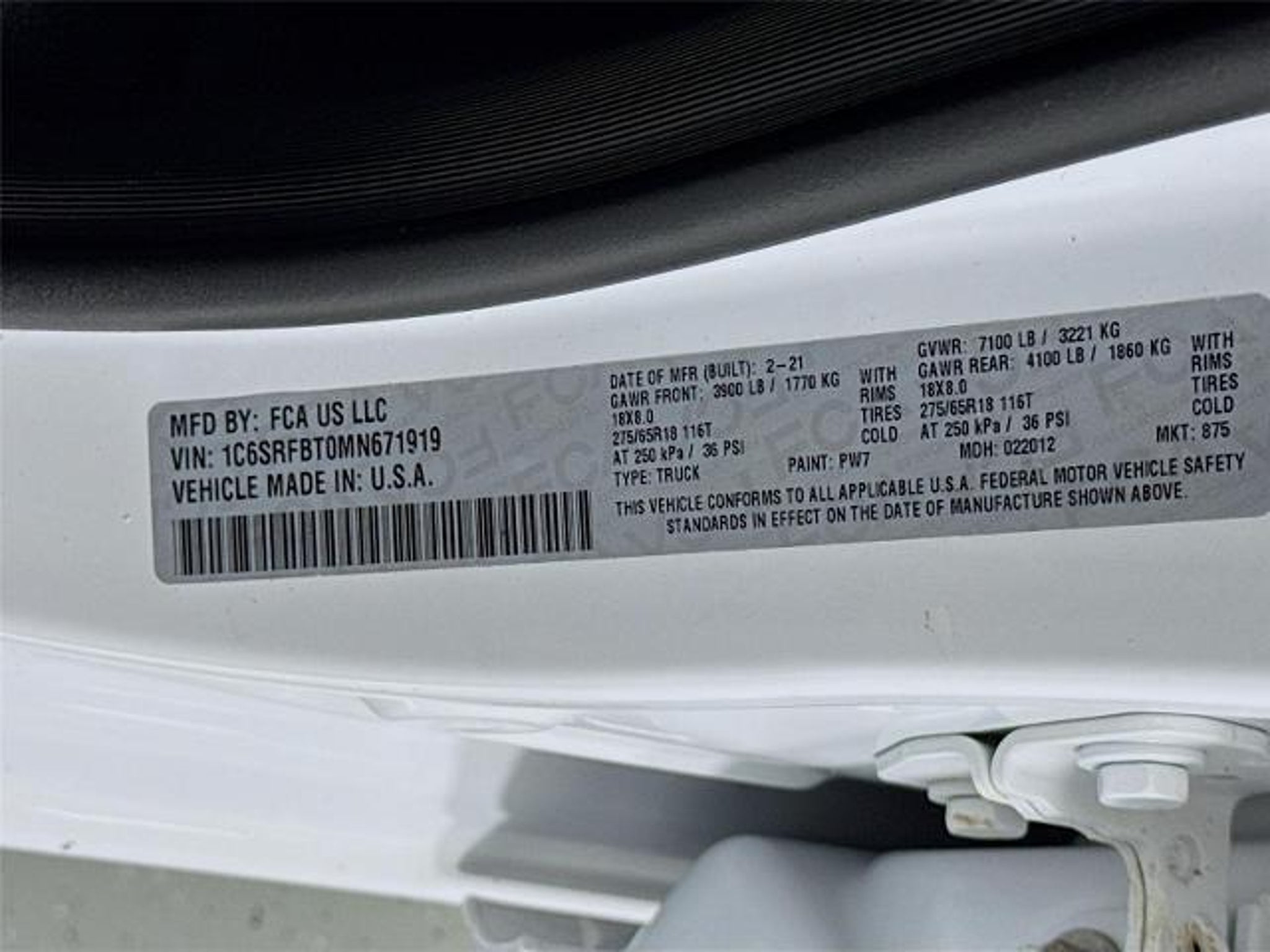 2021 Ram1500 Big Horn nVin #: 1C6SRFBT0MN671919 nStock #: 8824-1nExterior Color: Bright White Clearcoat Interior Color: Diesel Gray/BlacknOdometer: 119,006nnNo Accidents! One Owner! nn nnENGINE: 5.7L V8 HEMI MDS VVT, TRANSMISSION: 8-SPEED AUTOMATIC (8HP75), QUICK ORDER PACKAGE 25Z BIG HORN, 3.21 REAR AXLE RATIO, WHEELS: 18' X 8' CAST-ALUMINUM PAINTED, TIRES: 275/65R18 BSW ALL SEASON, BRIGHT WHITE CLEARCOAT, DIESEL GRAY/BLACK, CLOTH BENCH SEAT, GVWR: 7,100 LBS, BIG HORN LEVEL 1 EQUIPMENT GROUP, ENGINE BLOCK HEATER, TRAILER BRAKE CONTROL, FRONT LICENSE PLATE BRACKET, RADIO: UCONNECT 4 W/8.4' DISPLAY, REMOTE START SYSTEMnn Quick Order Package 23Z Big Horn Big Horn Badge Quick Order Package 25Z Big Horn Big Horn Badge Big Horn Level 1 Equipment Group ($1,300 value) Foam Bottle Insert (door Trim Panel) Rear Window Defroster Rear Power Sliding Window Sun Visors with Illuminated Vanity Mirrors Rear View Auto Dim Mirror Auto Dim Exterior Driver Mirror Black Premium Power Mirrors Cluster 3.5' TFT Color Display Power 4-Way Driver Lumbar Adjust Power 8-Way Driver Seat Glove Box Lamp Exterior Mirrors with Supplemental Signals Exterior Mirrors Courtesy Lamps Power-Folding Mirrors Rear Dome with On/off Switch Lamp Big Horn Instrument Panel Badge SiriusXM Satellite Radio Uconnect 4 Radio with 8.4' Display SiriusXM Radio Service For More Info, Call Power Adjustable Pedals Class IV Receiver Hitch Universal Garage Door Opener nnnn Comfort Cloth upholstery is comfortable in all