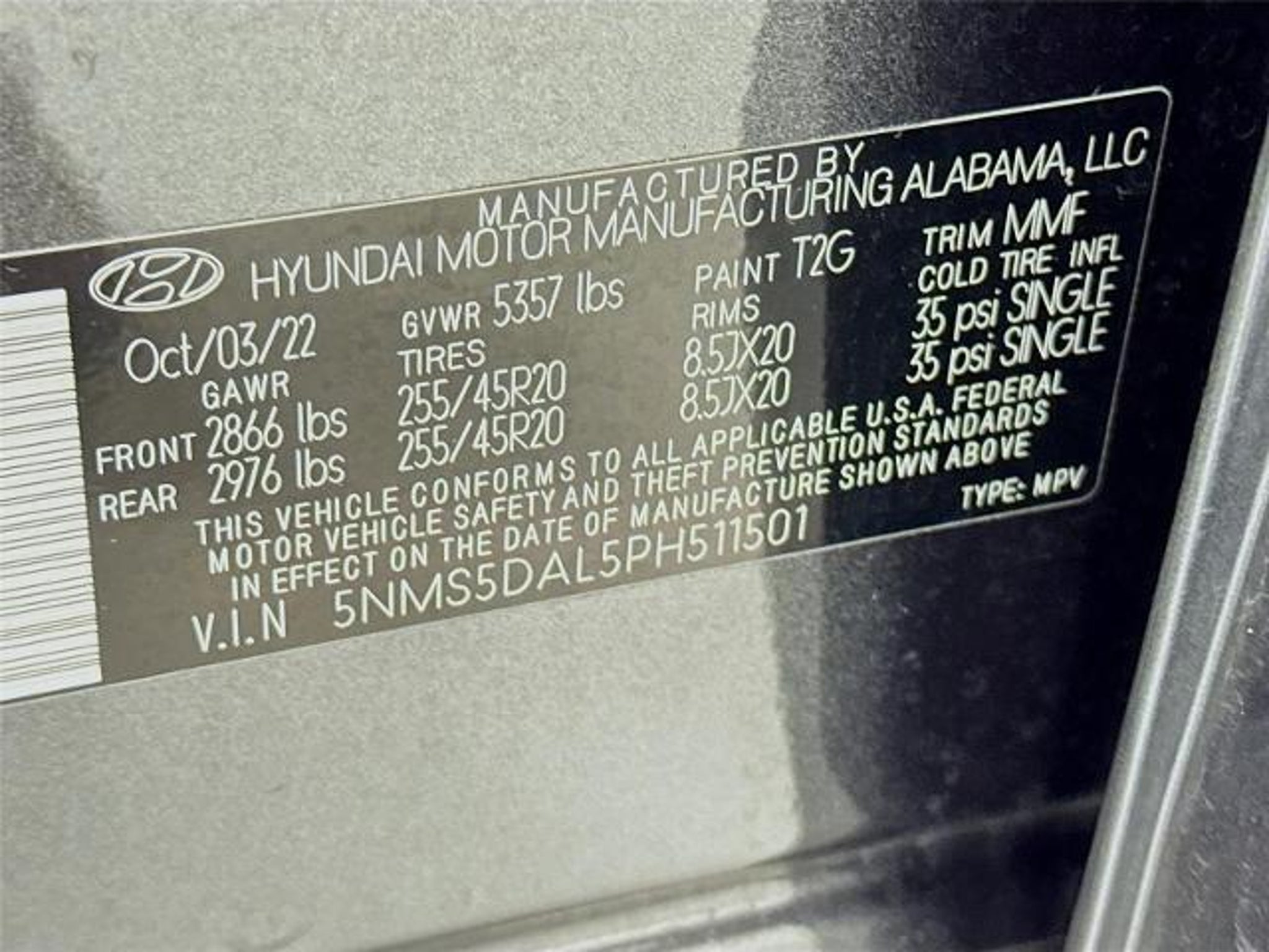 VIN 5NMS5DAL5PH511501