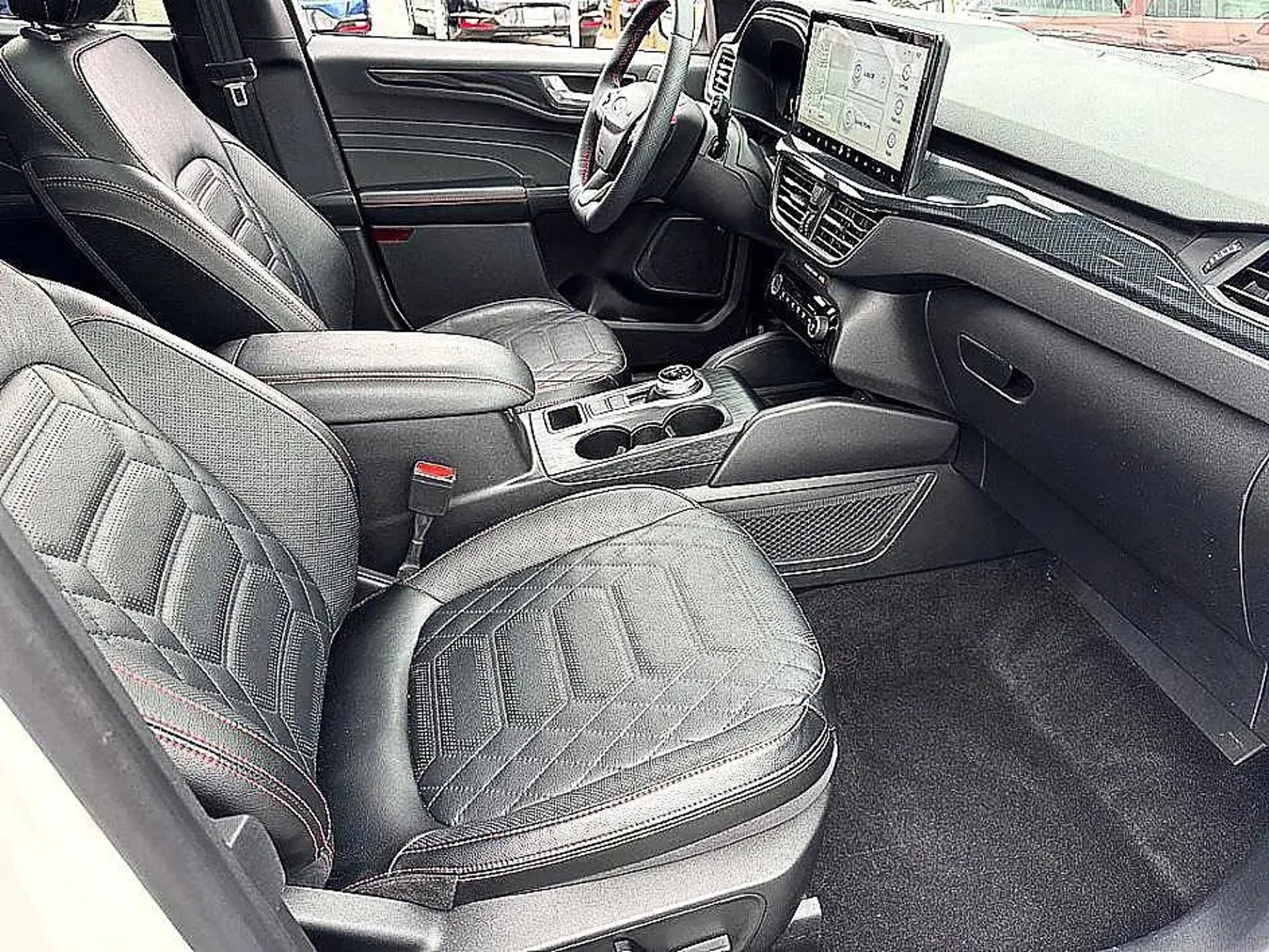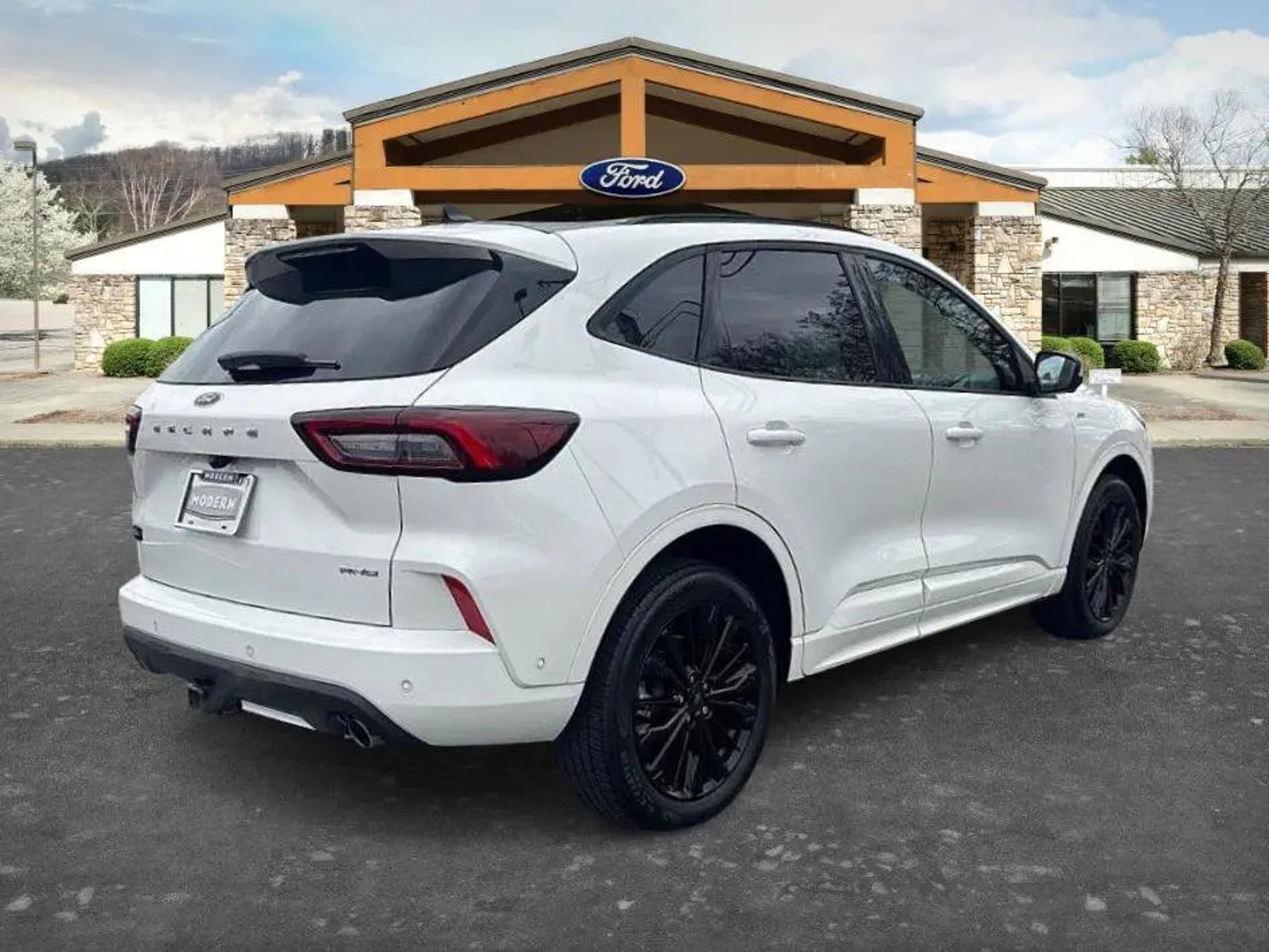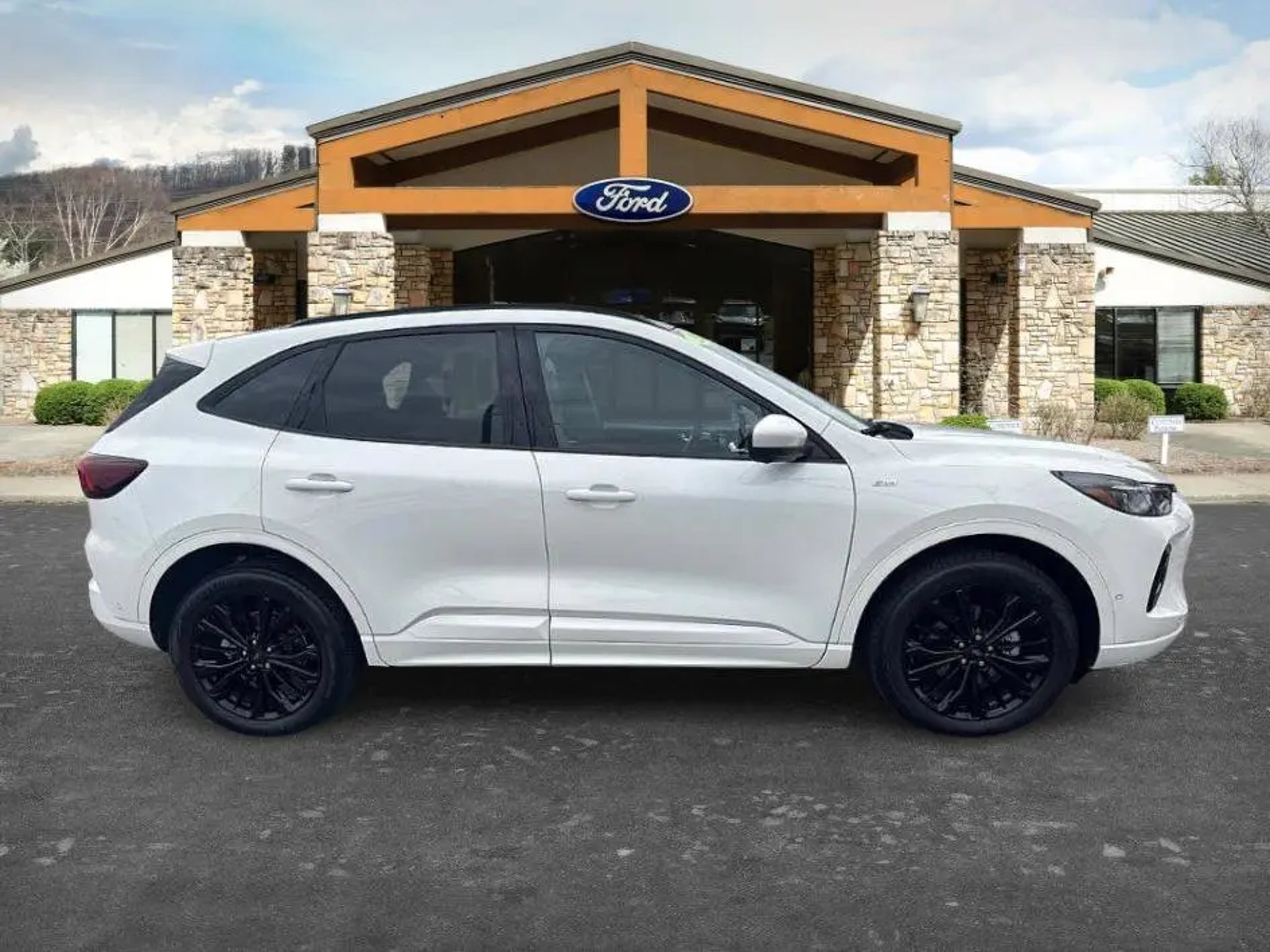 Priced below KBB Fair Purchase Price! Recent Arrival! BOUGHT HERE SERVICED HERE, THE 2023 Ford Escape ST-Line Elite comes equipped with Equipment Group 501A and stands out with a Star White Metallic Tri-Coat exterior, riding on 19-inch ebony-painted aluminum wheels wrapped in 225/55R19 all-season tires. It features a panoramic Vista Roof for an open, airy cabin feel, along with an easy-access cargo shade and front and rear floor liners with carpet mats. Capability is enhanced by the Class II trailer tow package, while technology highlights include the Premium Technology Package with Active Park Assist 2.0 and a head-up display. Additional details include a front license plate bracket and dealer-installed locking wheel lug nuts, making this compact SUV a well-equipped blend of style, comfort, and advanced driver-assistance features.. Star White Metallic Tri-Coat AWD CARFAX One-Owner. Clean CARFAX.2023 Ford Escape ST-Line Elite
