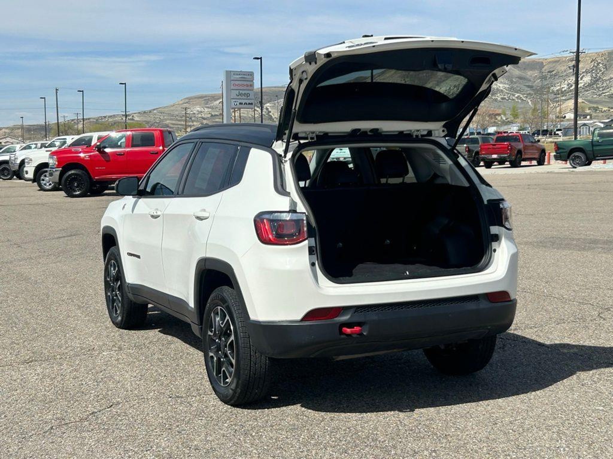 Discover the perfect blend of capability, style, and technology in the 2020 Jeep Compass Trailhawk. This exceptional SUV is ready to take on any adventure, whether you're tackling the trails or navigating the city streets. - Fremont Certified - Clean Carfax, No Accident - Quick Order Package 2GE Equipped with a powerful 2.4L I4 engine and a responsive 9-Speed 948TE Automatic transmission, the Compass Trailhawk delivers impressive 4WD performance and fuel efficiency, with an EPA-estimated 22 city/30 highway MPG. Indulge in the convenience of features like Bluetooth® Streaming Audio, the Uconnect 4 infotainment system with an 8.4 display, and a ParkView Rear Back-Up Camera to enhance your driving experience. The Compass Trailhawk's rugged good looks are complemented by its impressive capabilities. Enjoy the added confidence of Electronic Stability Control, Traction Control, and Four Wheel Disc Brakes with ABS. Stay comfortable and connected with dual-zone automatic climate control, Apple CarPlay, and Android Auto integration. This Jeep Compass Trailhawk is a certified pre-owned vehicle, giving you the peace of mind of a thorough inspection and comprehensive warranty coverage. Experience the perfect blend of performance, technology, and style in this exceptional SUV. VISIT US TODAY At Fremont Motor Companies, We Are Wyoming! We're not just about cars; we're about growing people and communities through relationship-driven transportation. Reach out to see what we offer and discover the perfect vehicle for you. Note: Prices exclude additional fees such as government taxes, finance charges, a dealer documentation fee of $599, emissions testing fees, and others. Prices and details might change, so please contact us for the latest information. WE DELIVER, INQUIRE FOR DETAILS!