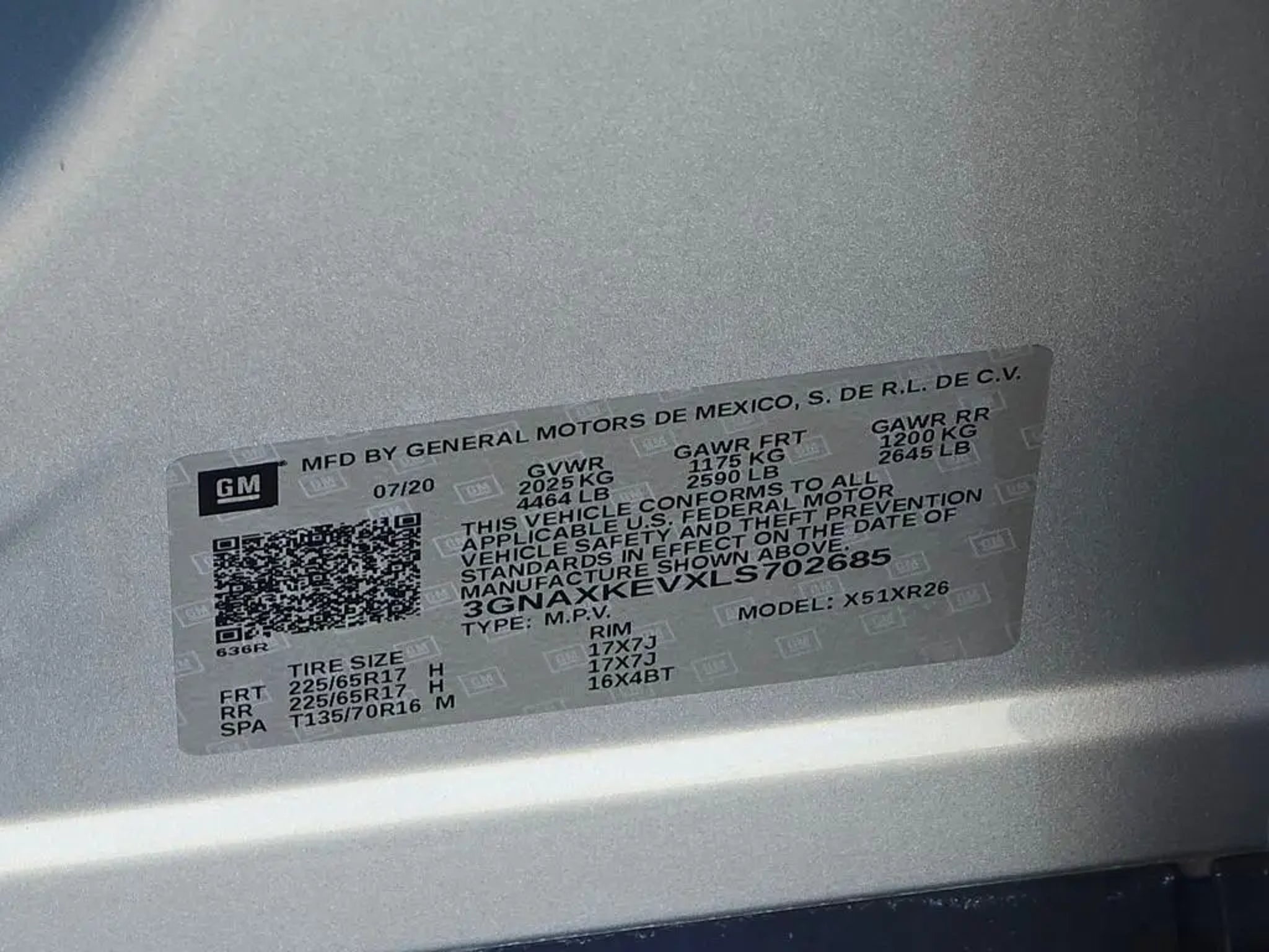 VIN 3GNAXKEVXLS702685