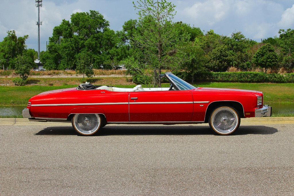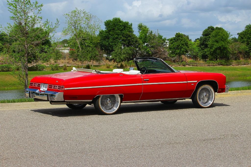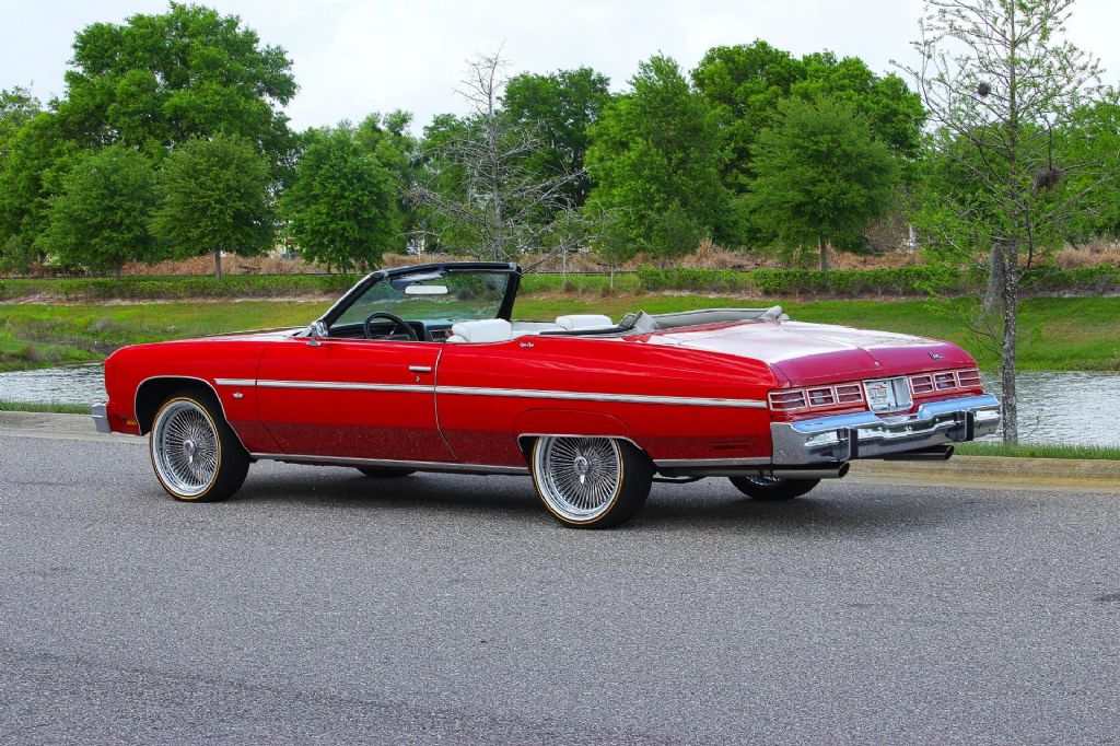 1975 Chevrolet Caprice Classic Convertible This 1975 Chevrolet Caprice Classic Convertible represents everything that made full size American convertibles so special comfortable cruising style timeless design and the kind of presence that simply cannot be duplicated today Finished in a beautiful red exterior with a white power convertible top this Caprice delivers the perfect color combination for top down driving. A brand new top is being installed further enhancing both its appearance and functionality. The paint presents very well and has been professionally treated with a ceramic coating giving it a deep shine and added protection Under the hood sits the dependable small block 400 V8 paired with an automatic transmission offering smooth reliable power for effortless cruising. This car has undergone extensive mechanical attention including a new gas tank and new radiator along with additional work completed to ensure it starts runs and drives with confidence. Everything functions as it should including all lights and accessories which is a testament to the level of care this car has received This Caprice was previously owned by the same individual since 1986 which speaks volumes about its history and how it has been maintained over the years. It is not just a car it is a long term kept and enjoyed classic that is ready for its next chapter The car offers a unique blend of classic originality and modern upgrades. It currently sits on 20-inch stamped Dayton wire wheels with brand new two prong spinners and vogue tires giving it a bold custom look. For those who prefer a more original appearance the car also can come with 14-inch factory wheels wrapped in new white wall tires and fitted with wire hubcaps. You can choose one set of wheels for whichever style best fits your vision Inside the car has been upgraded with a modern sound system featuring a Kenwood Bluetooth radio two Rockford Fosgate amplifiers mids and highs along with two 12-inch Rockford Fosgate subwoofers housed in a custom enclosure with integrated lighting. This setup delivers a powerful and clean audio experience while cruising With documented original miles cold air conditioning and a strong running drivetrain this Caprice offers the best of both worlds a classic full size convertible that can be enjoyed immediately with confidence This is the kind of car you take out on a sunny day drop the top and simply enjoy the drive Key Highlights Original documented miles Small block 400 V8 engine Automatic transmission Cold air conditioning New white power convertible top being installed Ownership history since 1986 Runs and drives great All mechanical work completed for reliable drivability New gas tank New radiator Red paint with ceramic coating All lights and features working Front and rear bumper guards Wheels and Tires Options 20 inch stamped Dayton wheels Brand new two prong spinners Vouge Tires OR 14 inch original stock wheels New white wall tires Wire hubcaps Audio and Interior Features Kenwood Bluetooth stereo system Two Rockford Fosgate amplifiers Mids and highs upgraded Two Rockford Fosgate 12 inch subwoofers Custom enclosure with lighting This Caprice Classic Convertible is a rare opportunity to own a well-cared for full size convertible with documented history tasteful upgrades and the ability to enjoy it immediately. While we do our best to provide the highest quality muscle cars with an honest and reliable description and realize the importance of transparency when selling vehicles. That being said, we have not built, modified, changed or personally owned this vehicle. Whether this vehicle is consigned or owned by Past & Present Motor Cars we do not know the vehicles complete history since new. We want to be clear and try to answer any questions our customers might have prior to purchasing. Additionally, we not only welcome but we encourage 3rd party independent inspections. Please inquire prior to purchase to make sure the advertised vehicle has not already been sold. We list our vehicles on multiple websites and a vehicle can sell at any time. If a customer chooses to purchase sight unseen (many of our customers choose this option) the customer accepts the vehicle AS IS and WHERE IS and understands we cannot address concerns after purchase. For this reason, it's important all concerns are addressed prior to purchase. We make every effort to present accurate and reliable information, but use of this information is voluntary, and should only be deemed reliable after an independent review of its accuracy, completeness, and timeliness. It is the sole responsibility of the customer to verify the existence of options, accessories and the vehicle condition before time of sale. Financing is Available with low rates and Vehicle Shipping is available from our Showroom to your Garage. A Classic Car Warranty is Available for Purchase from a 3rd Party. Please speak to our Sales Associate or Company Representative for more information. Our team is working and available anytime by Phone or Text for your convenience at 407-559-7759. Thank you for your interest!
