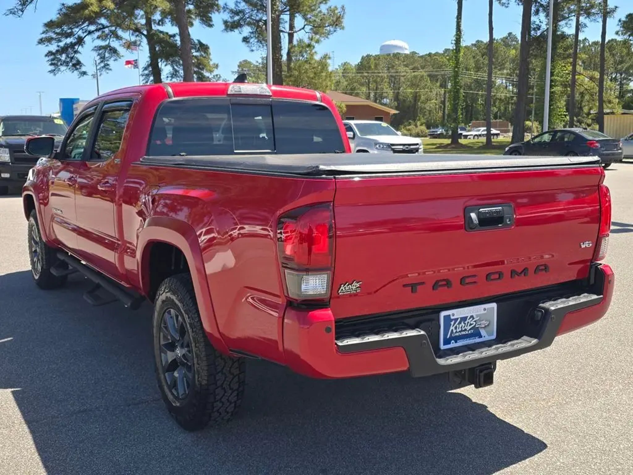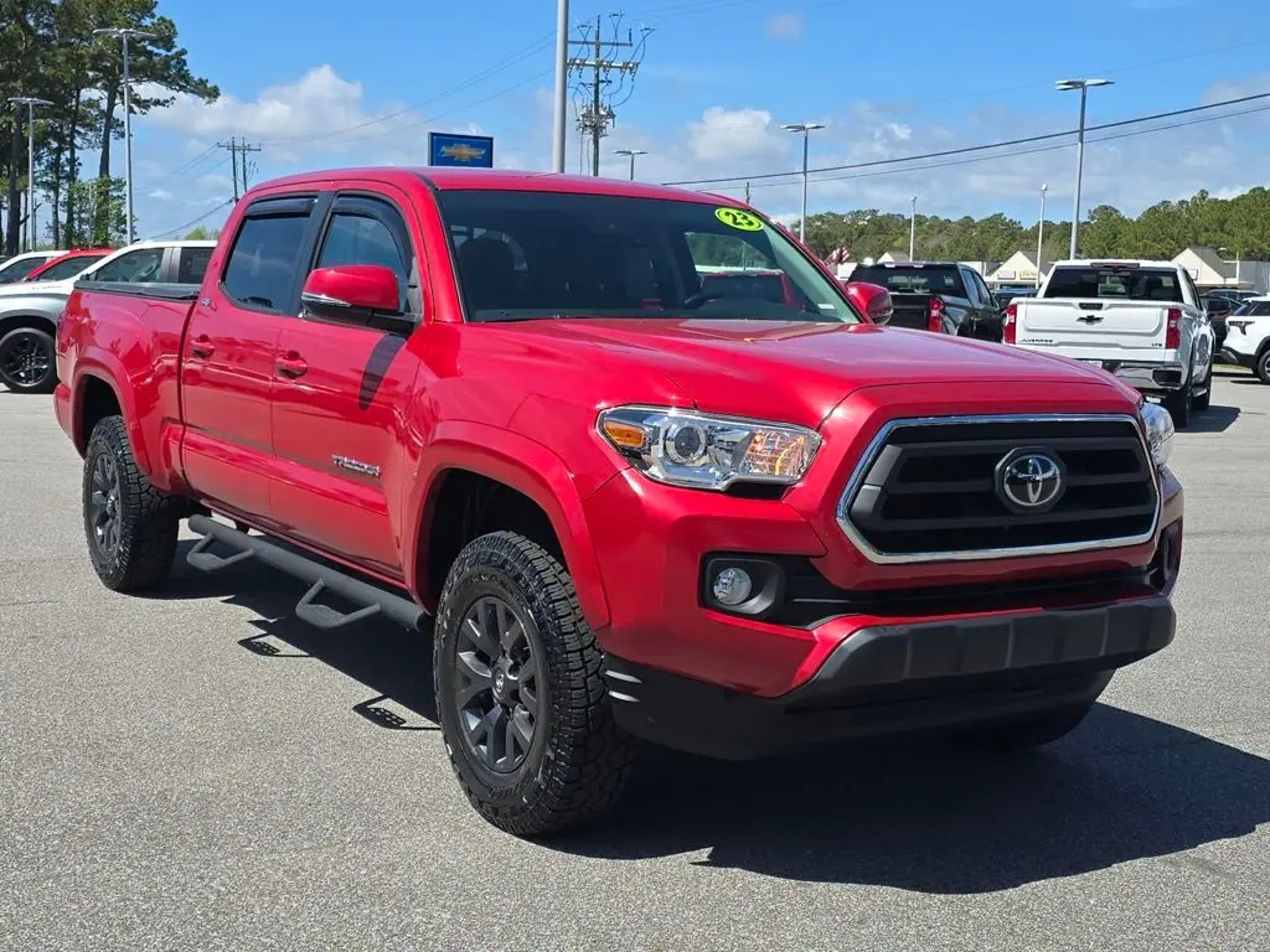 Recent Arrival! 2023 Toyota Tacoma SR5 V6 Barcelona Red Metallic 3.5L V6 PDI DOHC 24V LEV3-ULEV70 278hp RWD 6-Speed Automatic Apple CarPlay/Android Auto, Auto High-beam Headlights, Auto-Dimming Inside Rear-View Mirror, Automatic temperature control, Axle Ratio: 3.91, Blind Spot Monitor w/Rear Cross Traffic Alert, Color-Keyed Rear Bumper, Exterior Parking Camera Rear, Front Bucket Seats, Front dual zone A/C, Front fog lights, Illuminated entry, Low tire pressure warning, Outside temperature display, Radio: Premium Audio w/Dynamic Navigation, Rear Parking Assist Sonar, Remote keyless entry, Speed control, Speed-sensing steering, Split folding rear seat, SR5 Parking Sonar & Navigation Package, Steering wheel mounted audio controls, Technology Package, Telescoping steering wheel, Tilt steering wheel, Variably intermittent wipers. Clean CARFAX. CARFAX One-Owner. Odometer is 22278 miles below market average! Come see us today or call 252-726-8128. Visit us 24/7 at: kurtischevrolet.com.