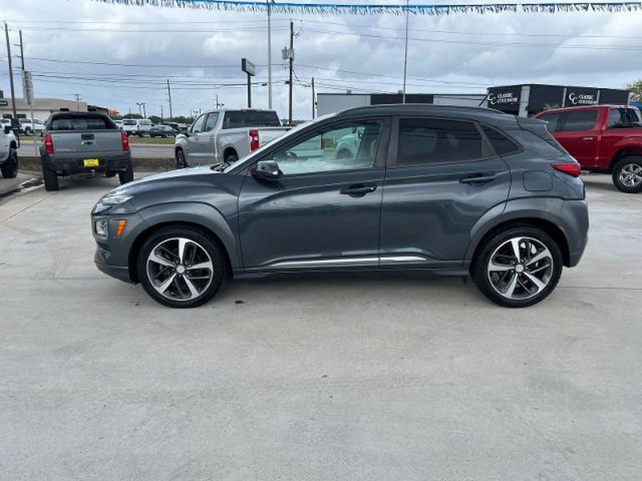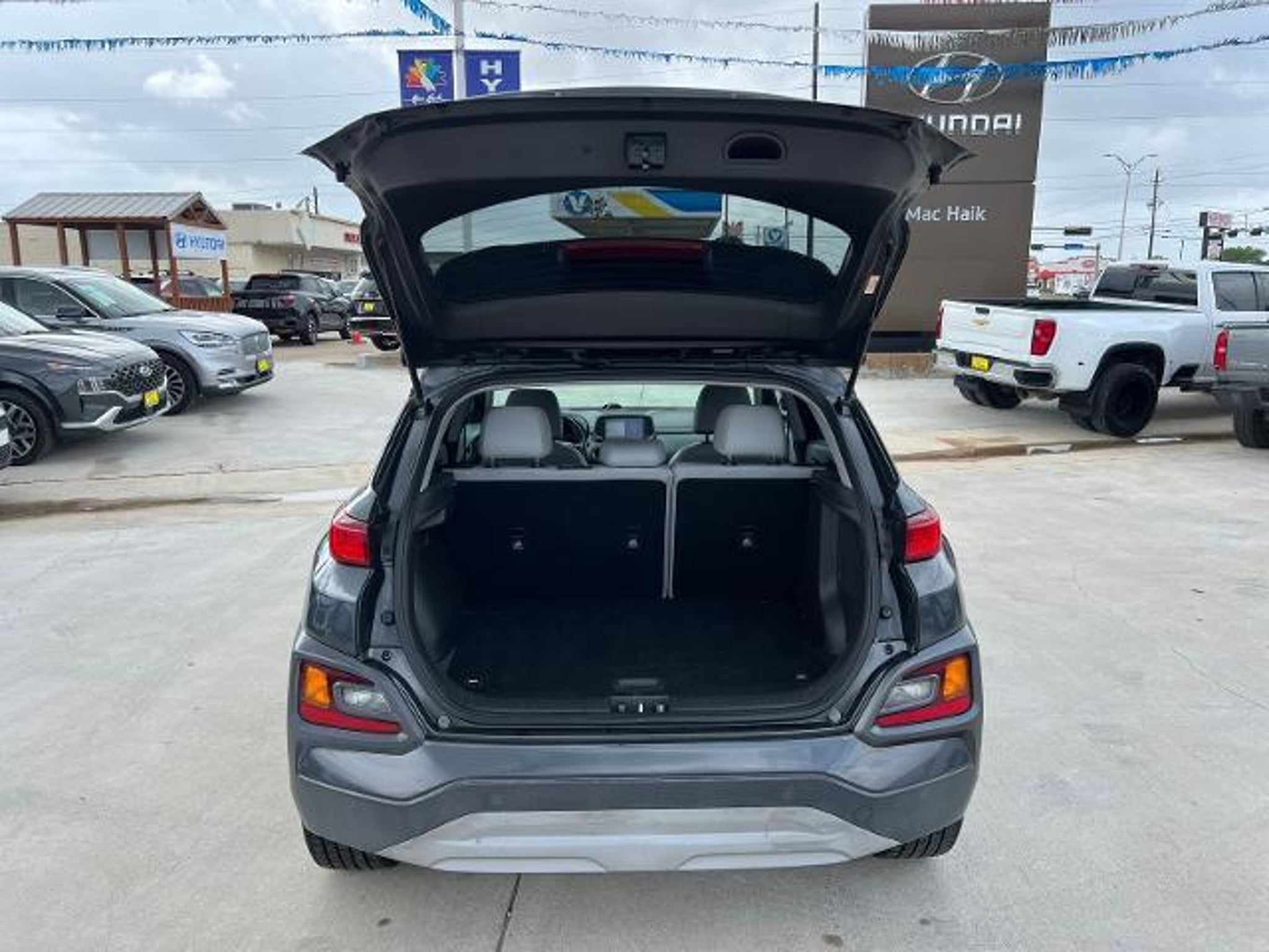 Thunder Gray 2018 Hyundai Kona Ultimate FWD 7-Speed Automatic I4 8 Speakers, AM/FM radio: SiriusXM, Bumpers: body-color, Heated door mirrors, Navigation System, Option Group 01, Panic alarm, Radio: AM/FM/HD Radio/SiriusXM Infinity Premium, Security system, Speed control. This 2018 Hyundai Kona Ultimate in Thunder Gray includes the following features: I4 7-Speed Automatic FWD Option Group 01, 8 Speakers, AM/FM radio: SiriusXM, Bumpers: body-color, Heated door mirrors, Navigation System, Panic alarm, Radio: AM/FM/HD Radio/SiriusXM Infinity Premium, Security system, Speed control, 18 x 7.5 Alloy Wheels, 4-Wheel Disc Brakes, 4.294 Axle Ratio, 8-Way Power Driver Seat, ABS brakes, Air Conditioning, Alloy wheels, Apple CarPlay & Android Auto, Auto High-beam Headlights, Auto-dimming Rear-View mirror, Automatic temperature control, Brake assist, Carpeted Floor Mats, Compass, Delay-off headlights, Driver door bin, Driver vanity mirror, Dual front impact airbags, Dual front side impact airbags, Electronic Stability Control, Emergency communication system: Blue Link, Exterior Parking Camera Rear, Front anti-roll bar, Front Bucket Seats, Front Center Armrest, Front fog lights, Front reading lights, Front wheel independent suspension, Fully automatic headlights, Garage door transmitter: HomeLink, Heads-Up Display, Heated Front Bucket Seats, Heated front seats, Illuminated entry, Leather Seat Trim, Leather Shift Knob, Leather steering wheel, Low tire pressure warning, Occupant sensing airbag, Outside temperature display, Overhead airbag, Overhead console, Passenger door bin, Passenger vanity mirror, Power door mirrors, Power driver seat, Power moonroof, Power steering, Power windows, Rain sensing wipers, Rear Parking Sensors, Rear seat center armrest, Rear window defroster, Rear window wiper, Remote keyless entry, Roof rack: rails only, Speed-sensing steering, Split folding rear seat, Spoiler, Steering wheel mounted audio controls, Tachometer, Telescoping steering wheel, Tilt steering wheel, Traction control, Trip computer, Turn signal indicator mirrors, and Variably intermittent wipers. Recent Arrival! 28/32 City/Highway MPG Awards: * 2018 KBB.com 10 Most Fun SUVs * 2018 KBB.com 10 Coolest New Cars Under $20,000 * 2018 KBB.com 10 Most Awarded Brands * 2018 KBB.com 5-Year Cost to Own Awards At Mac Haik, we believe in customer satisfaction and try to make it our mission that each and every shopper is happy with our service. Visit us now and experience why Mac Haik is Victoria's most awarded dealership of all ti