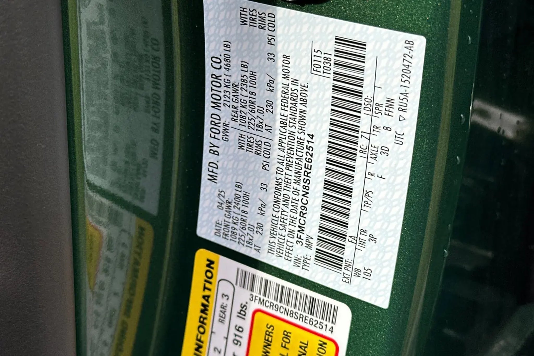 Details > 2025 Ford Bronco Sport AWD Outer Banks 4DR SUV For Sale in Half Moon Bay, CA Private Party Sellers Click here to place your ad now! You auta tell them you saw the ad in AutaBuy when you call or email. 1/31 2/31 3/31 4/31 5/31 6/31 7/31 8/31 9/31 10/31 11/31 12/31 13/31 14/31 15/31 16/31 17/31 18/31 19/31 20/31 21/31 22/31 23/31 24/31 25/31 26/31 27/31 28/31 29/31 30/31 31/31 View 31 Photos View All Add to My Garage Parked in Your Garage! James Ford Inc Contact Seller: I would like to: Make Offer Check Availability Ask A Question Request More Photos Check Financing Options Send a copy of this message to me Add this listing to my garage Send to Mobile Mileage 22,722 Exterior Color Eruption Green Metallic Interior Color Unknown Doors 4 Engine 1.5L I3 Transmission 8 Speed Auto Stock # P8904 VIN 3FMCR9CN8SRE62514 2025 Ford Bronco Sport AWD Outer Banks 4DR SUV Description: · Mileage: 22,722 · Color: Eruption Green Metallic Mileage 22,722 Exterior Color Eruption Green Metallic Interior Color Unknown Doors 4 Engine 1.5L I3 Transmission 8 Speed Auto Stock # P8904 VIN 3FMCR9CN8SRE62514 Add to My Garage Parked in Your Garage! Message Seller James Ford Inc Contact Seller: I would like to: Make Offer Check Availability Ask A Question Request More Photos Check Financing Options Send a copy of this message to me Add this listing to my garage Offered for sale by James Ford Inc HALF MOON BAY, CA Offered for sale by James Ford Inc HALF MOON BAY, CA [entire inventory] Ask Auta Intelligence The first collector-car AI built directly into a classic car marketplace What engine options did these come with? How far is this from me? What transmission options did these offer? What colors did these come in? What trim levels were available for this model? How many Bronco Sports were produced in Green? Tell me about this model What factory options were available on this model? What kind of mileage do these get? How many of these were produced? Where is this located? How many passengers can this seat comfortably? What safety features does this model offer? How easy are parts to find for this model? When was this model first introduced? What does this VIN number tell me? Do you have a similar car to sell? List It Now! Questions about this car? Ask Auta Intelligence for production numbers, available options, etc. · Subscribe to AutaBuy! · Send a Gift Subscription Notice to a Friend