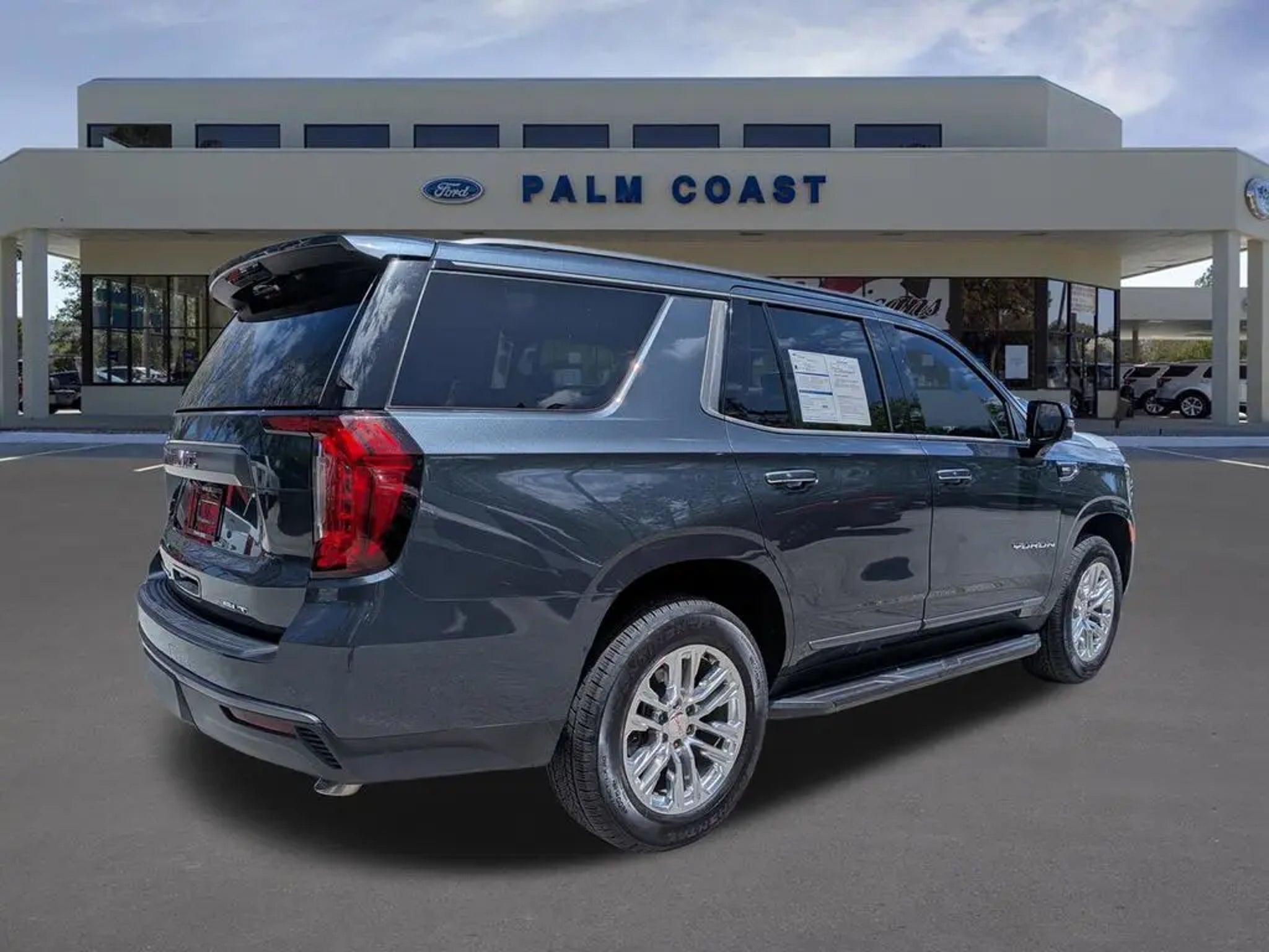 Discover the epitome of refined capability in the 2021 GMC Yukon SLT. This stunning SUV boasts a commanding presence on the road, combining exceptional performance with an array of premium features that elevate your driving experience. Meticulously equipped, this Yukon SLT offers an impressive array of custom features: - SEATS, SECOND ROW BUCKET, POWER RELEASE - Dark Sky Metallic exterior - SLT LUXURY PLUS PACKAGE - TRAILER TIRE PRESSURE MONITOR SENSORS - POLISHED EXHAUST TIP - REAR MEDIA AND NAV PACKAGE The SLT Luxury Plus Package further enhances this Yukon, providing the ultimate in comfort and convenience. Enjoy the panoramic power sunroof, the Max Trailering Package, and a host of advanced technology features that seamlessly integrate with your lifestyle. Powered by the robust EcoTec3 5.3L V8 engine and a smooth-shifting 10-Speed Automatic transmission, this Yukon delivers exceptional performance and efficiency, with an EPA-estimated 16 city/20 highway MPG. Its rear-wheel-drive configuration ensures confident handling and a refined ride quality, whether navigating the daily commute or embarking on your next adventure. Step inside the spacious cabin and experience the epitome of luxury. The Yukon SLT boasts premium leather seating, heated and ventilated front seats, and a Bose 9-speaker audio system that will immerse you in your favorite tunes. The advanced infotainment system with navigation and the rear-seat entertainment package keep everyone entertained and connected on the go. Safety is paramount in the Yukon SLT, with features like Automatic Emergency Braking, Forward Collision Alert, Lane Keep Assist, and Rear Pedestrian Alert providing an extra layer of protection for you and your loved ones. This exceptional 2021 GMC Yukon SLT is the perfect blend of power, style, and sophistication. Experience the difference for yourself and schedule a test drive today. We're confident you'll be impressed by its exceptional capabilities and refined luxury. Palm Coast Ford, We're Not That Far! Free deliveries within 200 miles. Call us today to experience the difference, (386) 447-3380.