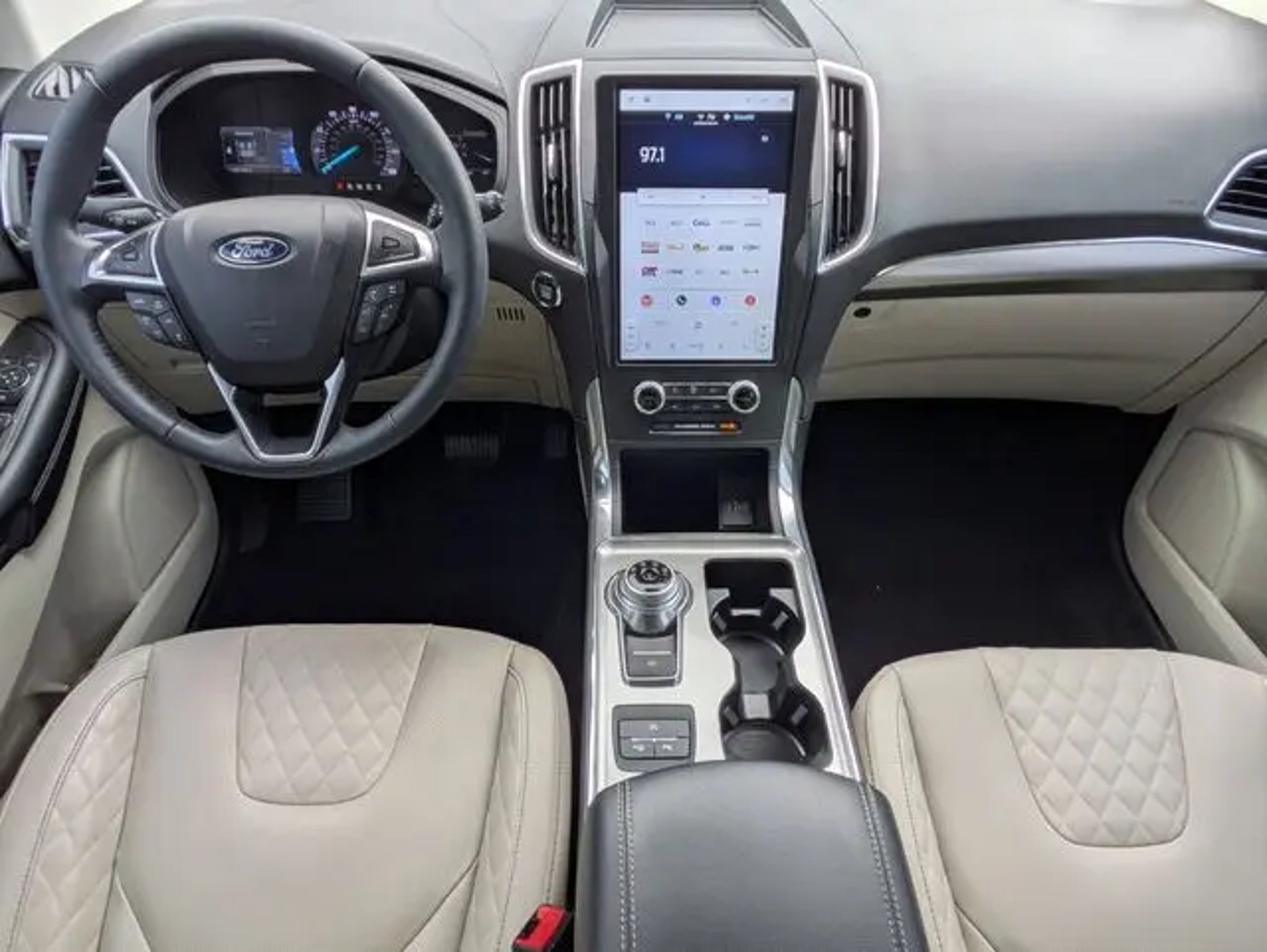 Certified. 2024 Ford Edge Titanium AWD 8-Speed Automatic EcoBoost 2.0L I4 GTDi DOHC Turbocharged VCT Green Metallic AWD. THIS VEHICLE INCLUDES THE FOLLOWING FEATURES AND OPTIONS: Equipment Group 301A (ActiveX Trimmed w/FreeForm Sport Bucket Seats, Adaptive Cruise Control w/Stop & Go, Adaptive LED Headlamps, Auto-Dimming Driver's Sideview Mirror, Connected Navigation, Cooled Front Seats, Evasive Steering Assist, Front 180-Degree Camera w/Split View, Heated Rear Seats, Lane Centering, and Power Tilt/Telescoping Steering Column w/Memory), Titanium Elite Package (20 Polished Aluminum Wheels, 3D Diamond Front Console Surface Area, 3D Diamond Instrument Panel Appliques, Bright Chrome Accents & Surround Upper Grille, and Enhanced Active Park Assist), Ford Gold Certified Certified, AWD, 12 Speakers, 3.80 Axle Ratio, 4-Wheel Disc Brakes, ABS brakes, ActiveX-Trimmed Heated Sport Bucket Seats, Air Conditioning, Alloy wheels, AM/FM radio: SiriusXM with 360L, Auto High-beam Headlights, Auto-dimming Rear-View mirror, Automatic temperature control, Brake assist, Bumpers: body-color, Compass, Delay-off headlights, Driver door bin, Driver vanity mirror, Dual front impact airbags, Dual front side impact airbags, Electronic Stability Control, Emergency communication system: SYNC 4 911 Assist, FordPass Connect, Four wheel independent suspension, Front anti-roll bar, Front Bucket Seats, Front Center Armrest w/Storage, Front dual zone A/C, Front fog lights, Front reading lights, Fully automatic headlights, Garage door transmitter, Heated door mirrors, Heated front seats, Heated steering wheel, Illuminated entry, Knee airbag, Leather steering wheel, Low tire pressure warning, Memory seat, Occupant sensing airbag, Outside temperature display, Overhead airbag, Overhead console, Panic alarm, Panoramic Vista Roof, Passenger door bin, Passenger vanity mirror, Power door mirrors, Power driver seat, Power Liftgate, Power passenger seat, Power steering, Power windows, Radio: B&O Sound System by Bang & Olufsen, Rain sensing wipers, Rear anti-roll bar, Rear reading lights, Rear seat center armrest, Rear window defroster, Rear window wiper, Remote keyless entry, Security system, SiriusXM w/360L, Speed control, Speed-Sensitive Wipers, Split folding rear seat, Spoiler, Steering wheel mounted audio controls, SYNC 4A w/Enhanced Voice Recognition, Tachometer, Telescoping steering wheel, Tilt steering wheel, Traction control, Trip computer, Turn signal indicator mirrors, Variably intermittent wipers, and Wheels: 19 Luster Nickel-Painted Aluminum. Ford Gold Certified Details: * 172 Point Inspection * Limited Warranty: 12 Month/12,000 Mile (whichever comes first) after new car warranty expires or from certified purchase date * Transferable Warranty * and 22,000 FordPass Rewards Points to use toward first two maintenance visits * Powertrain Limited Warranty: 84 Month/100,000 Mile (whichever comes first) from original in-service date * Warranty Deductible: $100 * Roadside Assistance * Vehicle History