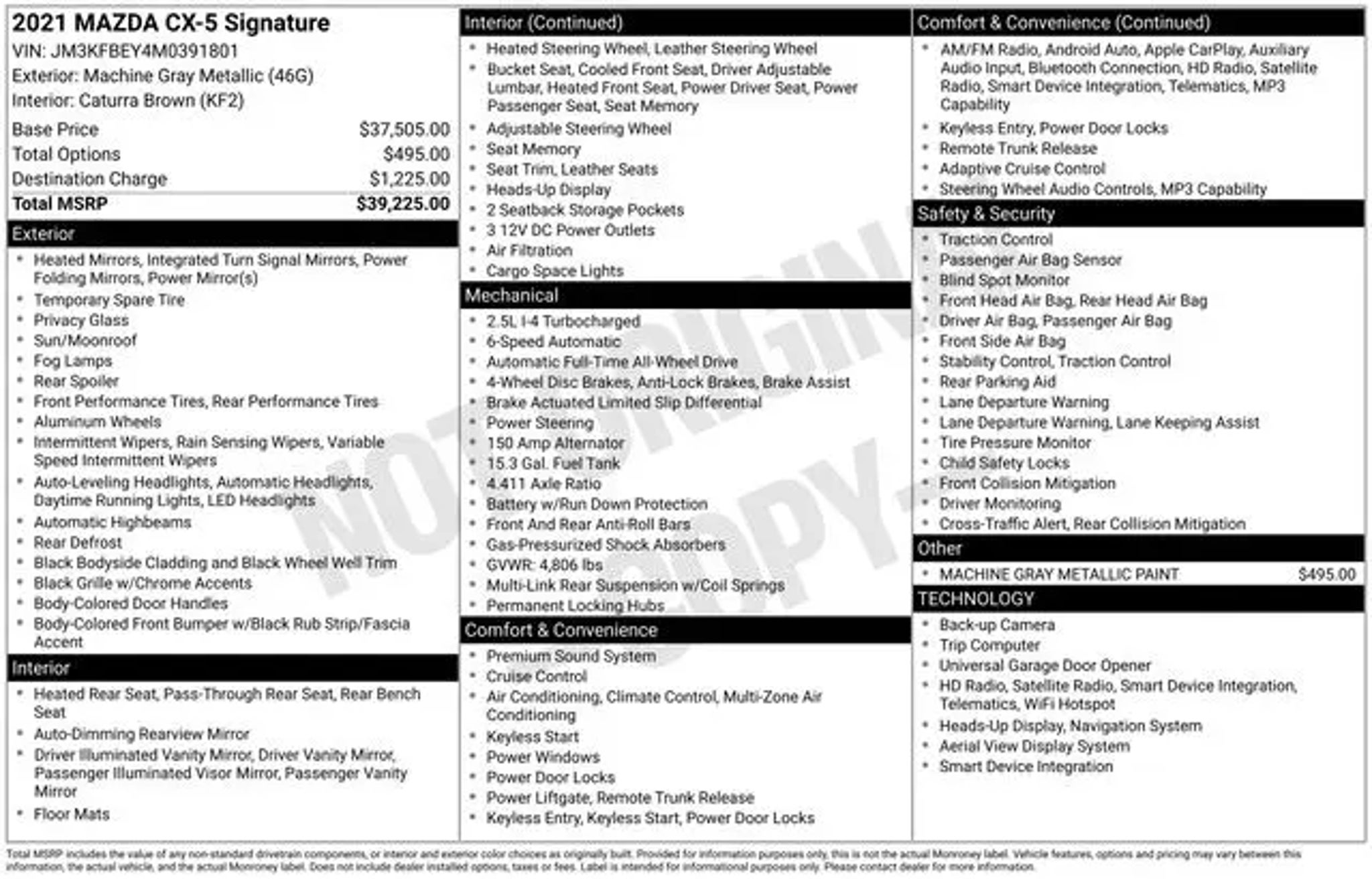 Certified. Machine Gray Metallic 2021 Mazda CX-5 Signature Signature AWD 6-Speed Automatic 2.5L I4 Navigation system: MAZDA CONNECT, Power Liftgate, Power moonroof. Here at Heritage Ford, we are proud of the quality Ford vehicles that we provide to the Burlington area and the friendly service that comes along with. Recent Arrival! Odometer is 18674 miles below market average! 22/27 City/Highway MPG Certification Program Details: Ford Blue Advantage: Blue Certified * 139 Point Inspection * Transferable Warranty * Vehicle History * Warranty Deductible: $100 * Roadside Assistance * Limited Warranty: 3 Month/4,000 Mile (whichever comes first) after new car warranty expires or from certified purchase date * and 11,000 FordPass Rewards Points to use toward first maintenance visit Not only do we have a top of the line selection of Ford vehicles, at Heritage Ford our service department is here to keep your vehicle running for the long haul. When you purchase with the H-Team, you are automatically enrolled in the H-Team Owners Club Vermont State Inspection Program, which entitles you to one free Vermont State Inspection every year for as long as you own your vehicle.