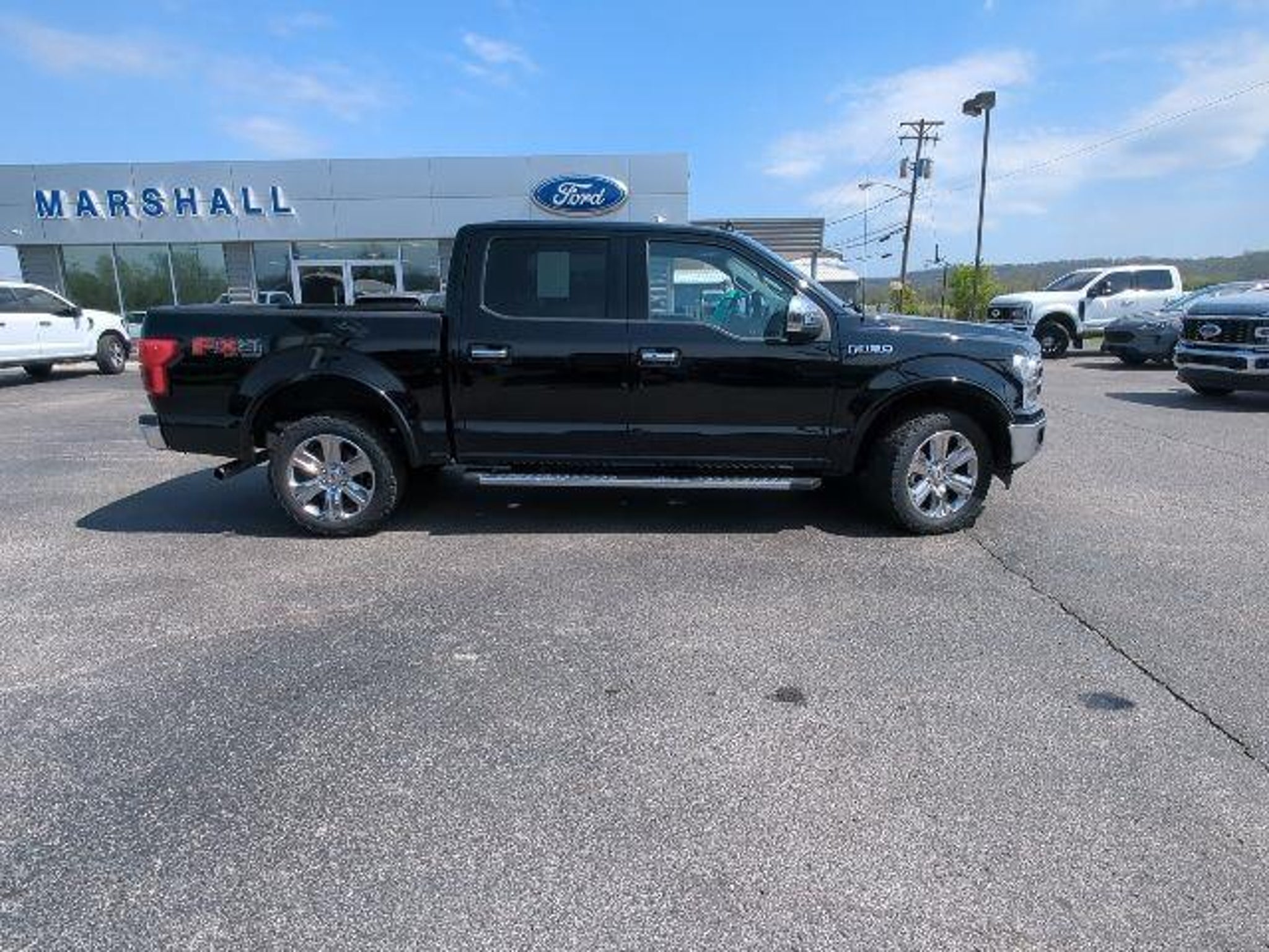 4WD. Priced below KBB Fair Purchase Price! 2018 Ford F-150 Lariat Shadow Black 3.5L V6 EcoBoost 10-Speed Automatic Awards: * 2018 KBB.com 10 Most Awarded Brands * 2018 KBB.com Brand Image Awards Marshall Ford is the home of the Lifetime Powertrain Warranty! Located two minutes off I-71 in the beautiful town of Carrollton, KY, we are a short drive from Louisville, Lexington, Cincinnati, and Indianapolis! Schedule your test drive with our family-owned dealership where relationships are our number one priority. Our product specialists are here to assist you in finding the right vehicle for you and with terms you can afford. We have a LOT full of deals, and if we don't have it, we can get it fast. Here is a list of options that are available: we can get Cars, Trucks, Vans, and SUV's with AWD / 4WD, 2nd Row Bucket Seating, 3rd Row Seats, Cruise Control, Backup Camera, Bluetooth, No Accidents, Dual Power Seats, Heated Leather Seating, Power Moonroof, Sunroof, Panoramic Vista Roof, New Tires, New Brakes, Non-Smoker Interior, 30 MPG, One Owner Carfax Certified, Premium Wheels, Premium Cloth Seating, Premium Sound System, 3rd Row Seating, Trailer Hitch, Navigation, Rear Back-Up Sensors, Rear Bucket Seats, Leather Seats, DVD Player, Remote Keyless Entry, Remote Start, Service Records Available, Steering Wheel Controls, Tow Package, Trailer Hitch, Traction Control, USB Ports, Price includes all applicable factory, financing and/or trade-in rebates. Not responsible for mistakes in mileage, options or pricing. We reserve the right to correct all errors. Most internet pricing not combinable with other offers.