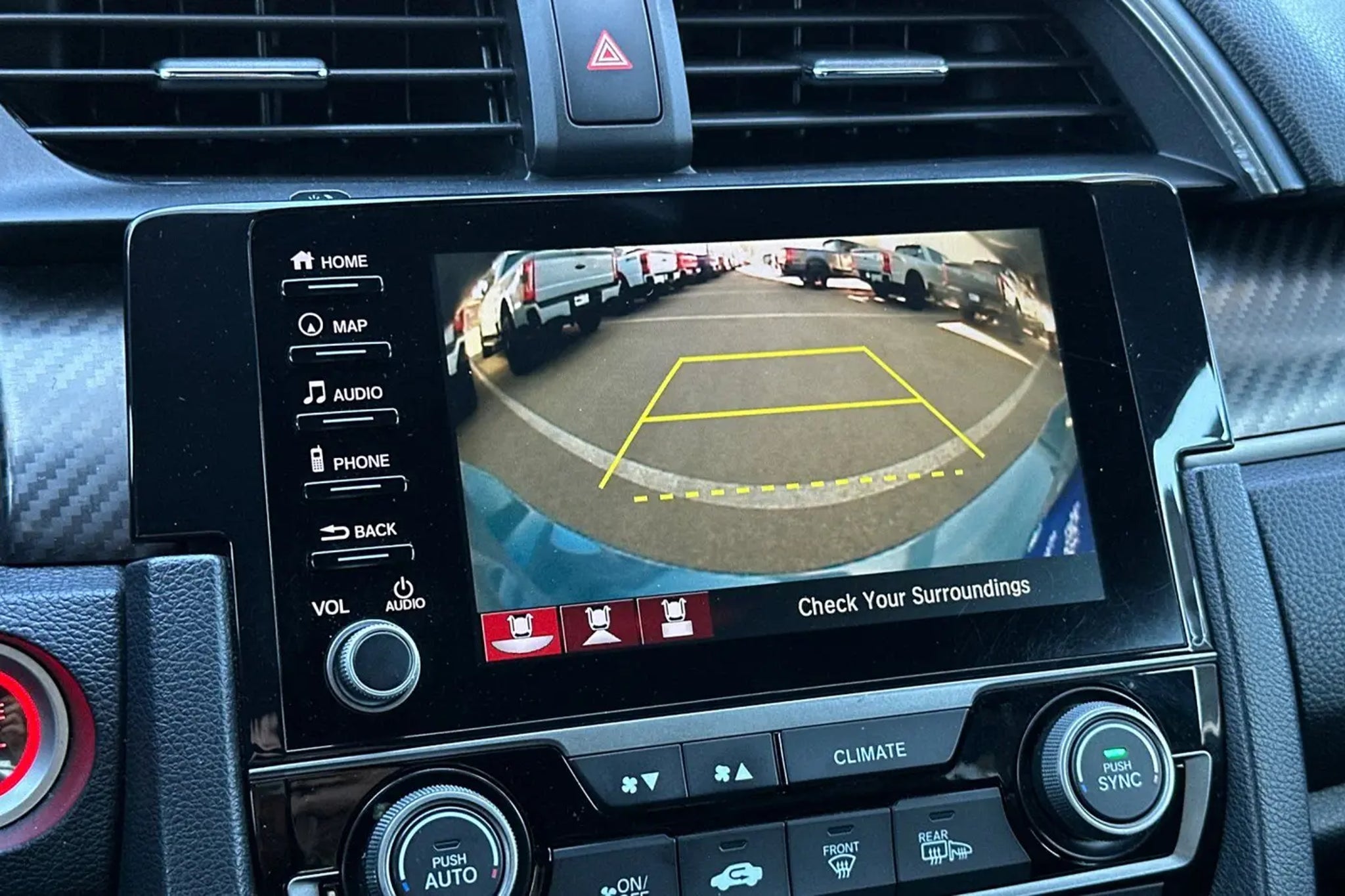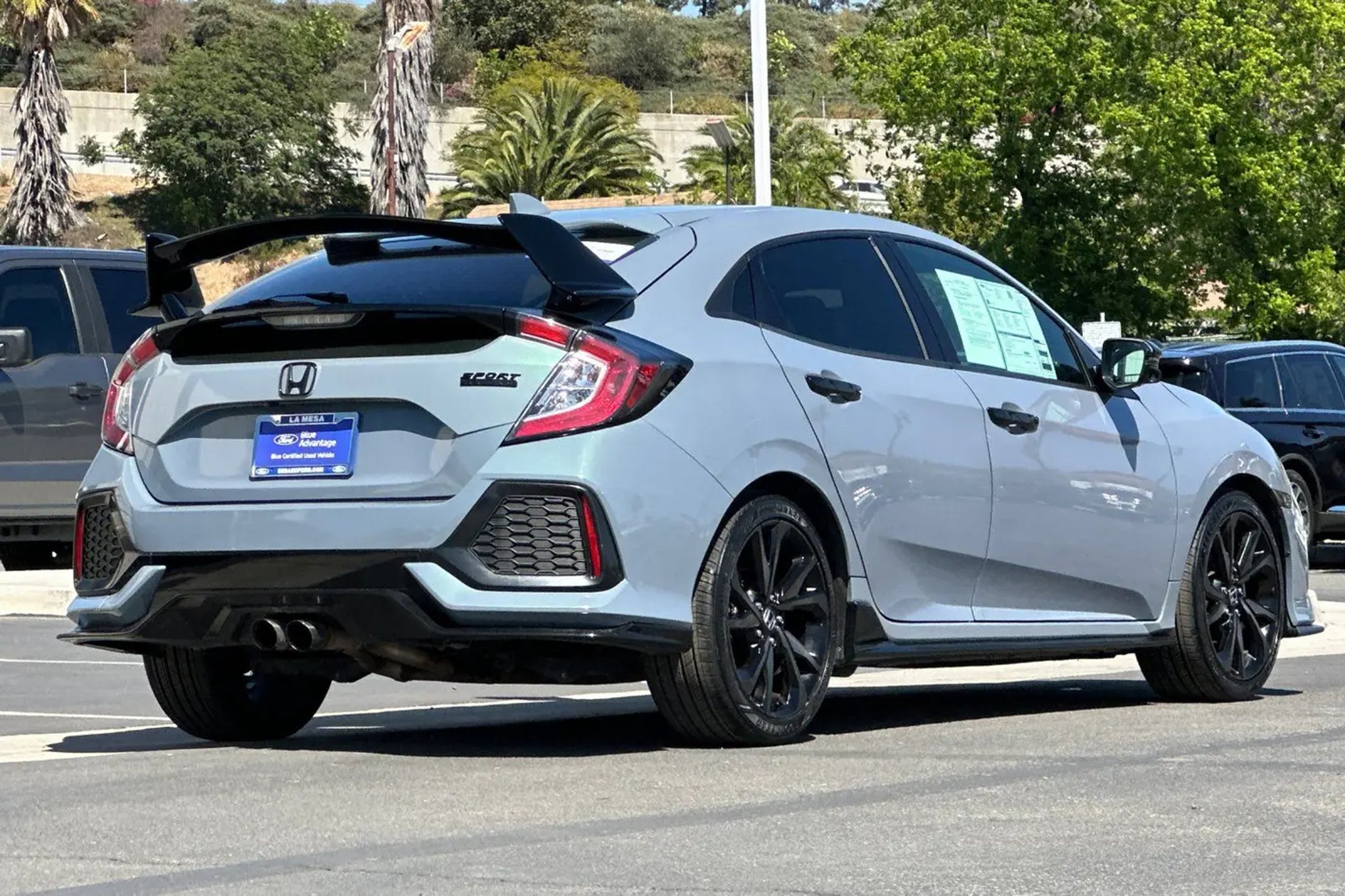 Certified. This 2019 Sonic Gray Pearl Honda Civic Sport Touring FWD is well equipped and includes these features and benefits: Black w/Leather Seat Trim, Alloy wheels, Apple CarPlay/Android Auto, Auto-dimming Rear-View mirror, Exterior Parking Camera Rear, Forward collision: Collision Mitigation Braking System (CMBS) FCW mitigation, Heated front seats, Heated rear seats, Leather-Trimmed Seating Surfaces, Navigation System, Panic alarm, Power moonroof, Radio: 540-Watt HD Premium Audio w/Navigation, Security system, Spoiler. 30/36 City/Highway MPG Certification Program Details: Ford Blue Advantage: Blue Certified * 139 Point Inspection * Transferable Warranty * Vehicle History * Warranty Deductible: $100 * Roadside Assistance * Limited Warranty: 3 Month/4,000 Mile (whichever comes first) after new car warranty expires or from certified purchase date * and 11,000 FordPass Rewards Points to use toward first maintenance visit Sedano Ford is a trusted used and Ford Certified Pre-Owned dealership in La Mesa, California, offering a wide selection of quality pre-owned cars, trucks, and SUVs for sale across San Diego County. Our pre-owned and Ford Blue Certified inventory includes used Ford F-150, Super Duty, Bronco, Explorer, Escape, Ranger, Maverick, Mustang, and Ford Certified vehicles that pass a rigorous multi-point inspection and include warranty coverage and vehicle history reports. Located in La Mesa and serving El Cajon, Santee, Lemon Grove, Spring Valley, Chula Vista, and San Diego, Sedano Ford provides competitively priced used vehicles, transparent online listings, and easy financing for shoppers searching for used cars and certified Ford vehicles near them.
