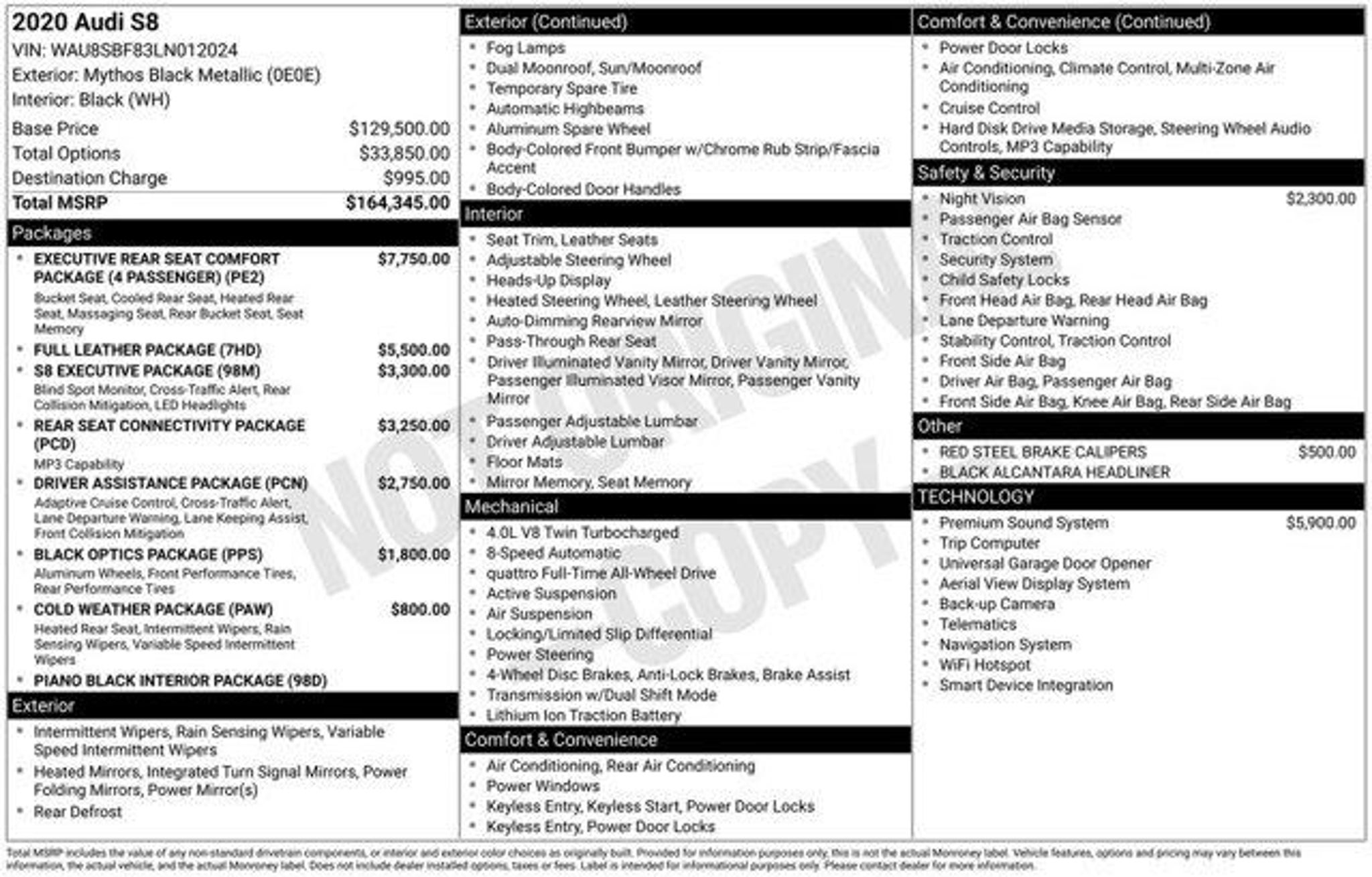 2020 Audi S8 4.0T quattro Mythos Black Metallic quattro 8-Speed Automatic with Tiptronic 4.0L V8 Turbocharged DOHC 32V LEV3-ULEV125 563hpWelcome to Mel Hambelton Ford in Wichita, KS. All of our cars are hand picked and inspected for your peace of mind. This S8 is equipped with the following options: 17 Speakers, 22-Way Power Heated Front Comfort Sport Seats, 4-Wheel Disc Brakes, ABS brakes, Adaptive suspension, Air Conditioning, Alloy wheels, AM/FM radio: SiriusXM, Audi smartphone interface (Apple CarPlay/Android Auto), Auto High-beam Headlights, Auto tilt-away steering wheel, Auto-dimming door mirrors, Auto-dimming Rear-View mirror, Auto-leveling suspension, Automatic temperature control, Bang & Olufsen 3D Premium Sound System, Brake assist, Bumpers: body-color, Compass, Delay-off headlights, Door auto-latch, Driver door bin, Driver vanity mirror, Dual front impact airbags, Dual front side impact airbags, Electronic Stability Control, Emergency communication system: Audi connect, Four wheel independent suspension, Front anti-roll bar, Front Bucket Seats, Front Center Armrest w/Storage, Front dual zone A/C, Front fog lights, Front reading lights, Garage door transmitter: HomeLink, Head restraints memory, Headlight cleaning, Heads-Up Display, Heated door mirrors, Heated front seats, Heated steering wheel, HVAC memory, Illuminated entry, Knee airbag, Leather steering wheel, Low tire pressure warning, Memory seat, Navigation system: MMI Navigation plus, Occupant sensing airbag, Outside temperature display, Overhead airbag, Overhead console, Panic alarm, Passenger door bin, Passenger vanity mirror, Power 2nd-Row Moonroof, Power adjustable front head restraints, Power door mirrors, Power driver seat, Power moonroof, Power passenger seat, Power steering, Power windows, Radio data system, Radio: MMI Nav Plus w/MMI Touch Response, Rain sensing wipers, Rear air conditioning, Rear anti-roll bar, Rear dual zone A/C, Rear fog lights, Rear reading lights, Rear seat center armrest, Rear side impact airbag, Rear Window Blind, Rear window defroster, Remote keyless entry, Seatbelt memory, Security system, Speed control, Speed-sensing steering, Speed-Sensitive Wipers, Steering wheel memory, Steering wheel mounted audio controls, Tachometer, Telescoping steering wheel, Tilt steering wheel, Traction control, Trip computer, Turn signal indicator mirrors, Valcona Leather Seat Upholstery, Variably intermittent wipers, Ventilated front seats, and Wheels: 20 5-Double-Spoke.Odometer is 7123 miles below market average!View our enti