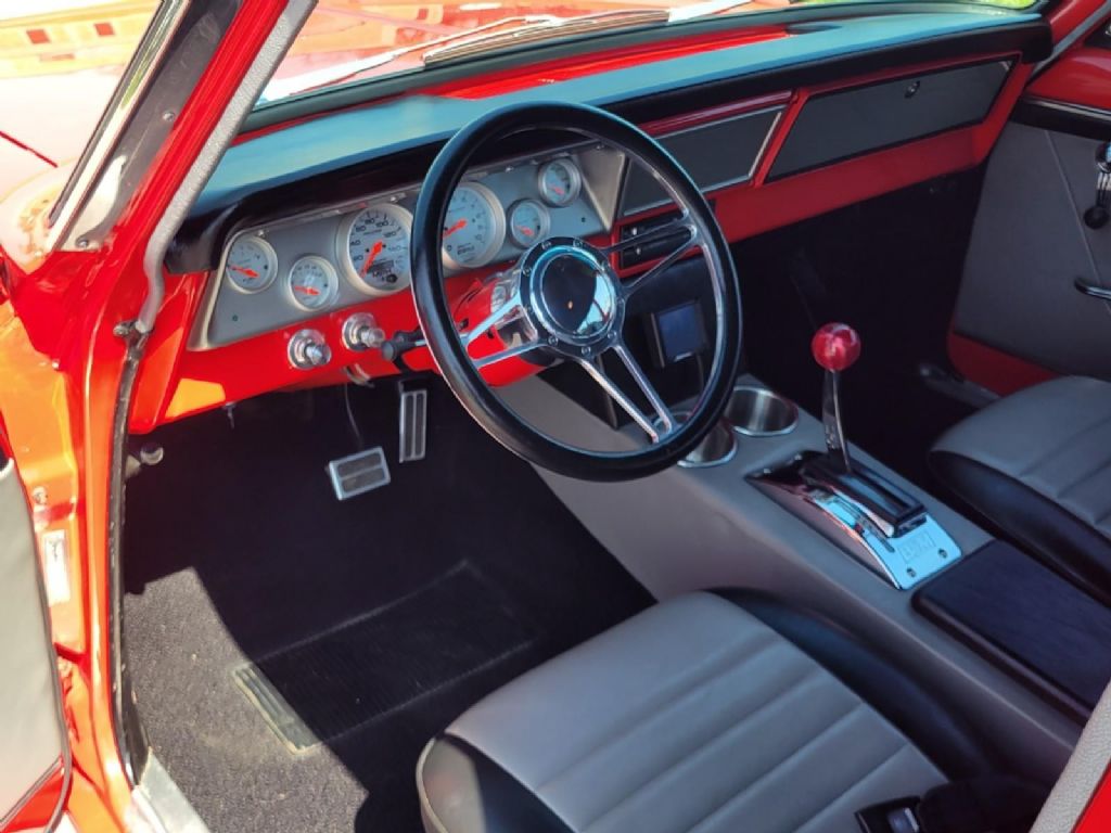 The custom Ultra-Leather bucket seat interior was all hand-made and very tastefully done including the seats, carpets, headliner, door panels and rear cargo area. It also has a custom console with cup holders and a B&M Quicksilver shifter as well as a fully custom and fully functional Autometer gauge cluster. It is all VERY-VERY NICE!!
