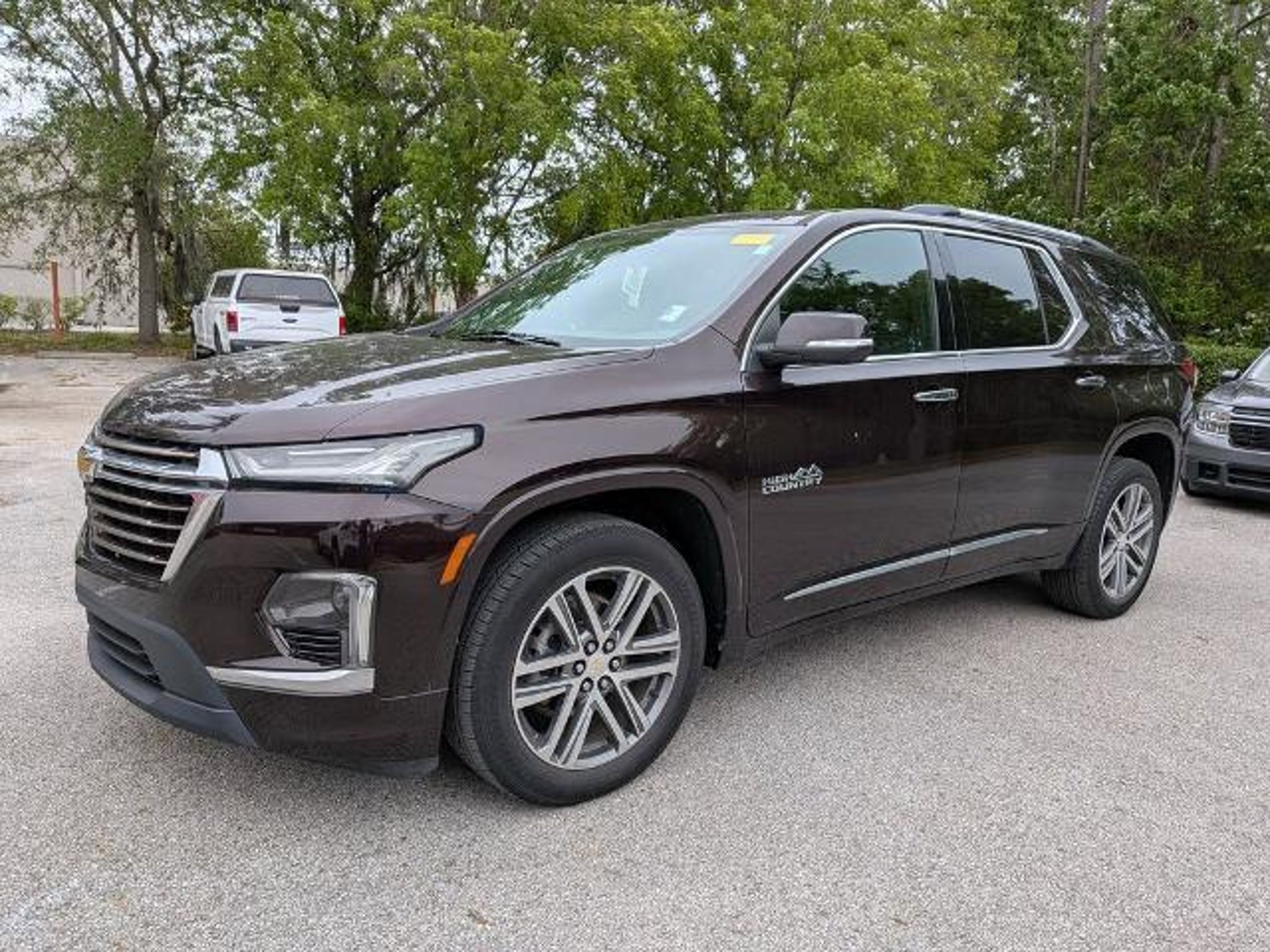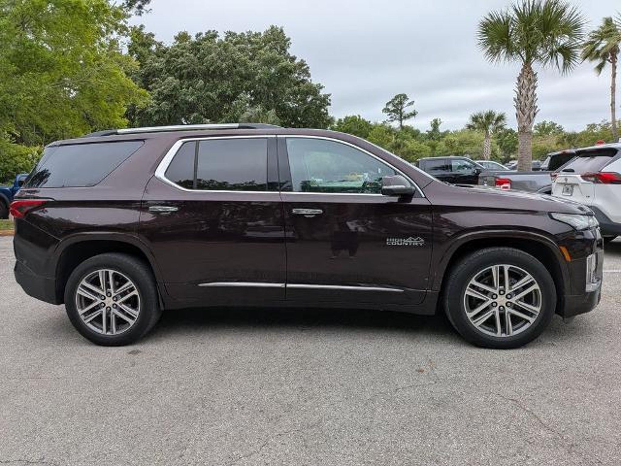 Discover the pinnacle of modern SUV design and capability with the 2022 Chevrolet Traverse High Country. This exceptional vehicle is a true testament to Chevrolet's commitment to engineering excellence, offering a seamless blend of style, comfort, and performance that will elevate your driving experience. Boasting a striking Red exterior, the Traverse High Country commands attention with its bold and refined presence. Complementing the sleek design are a host of premium features, including: - 10 Speakers - Bose Premium Audio System - Chevrolet Infotainment 3 Plus System with Navigation - Heated and Ventilated Front Seats - Heated Rear Seats - Power Liftgate - 20 Polished Aluminum Wheels Step inside the Traverse High Country and you'll be enveloped in a world of luxury and convenience. The perforated leather-appointed seating, coupled with the heated steering wheel and dual-zone automatic climate control, create an unparalleled level of comfort. The advanced technology features, such as Apple CarPlay and Android Auto, keep you connected and entertained on every journey. Powered by a robust 3.6L V6 engine paired with a smooth-shifting 9-speed automatic transmission, the Traverse High Country delivers impressive performance and efficiency, with an EPA-estimated 27 highway mpg. The vehicle's advanced safety features, including Forward Collision Alert, Automatic Emergency Braking, and Lane Keep Assist, provide you and your loved ones with the peace of mind you deserve. Whether you're embarking on a family road trip, navigating the daily commute, or exploring the great outdoors, the 2022 Chevrolet Traverse High Country is the ultimate companion. Its spacious interior, with seating for up to eight passengers and ample cargo space, ensures that everyone and everything can come along for the ride. Experience the pinnacle of SUV excellence with the 2022 Chevrolet Traverse High Country. Visit our showroom today and let us demonstrate how this remarkable vehicle can elevate your driving experience. Palm Coast Ford, We're Not That Far! Free deliveries within 200 miles. Call us today to experience the difference, (386) 447-3380.