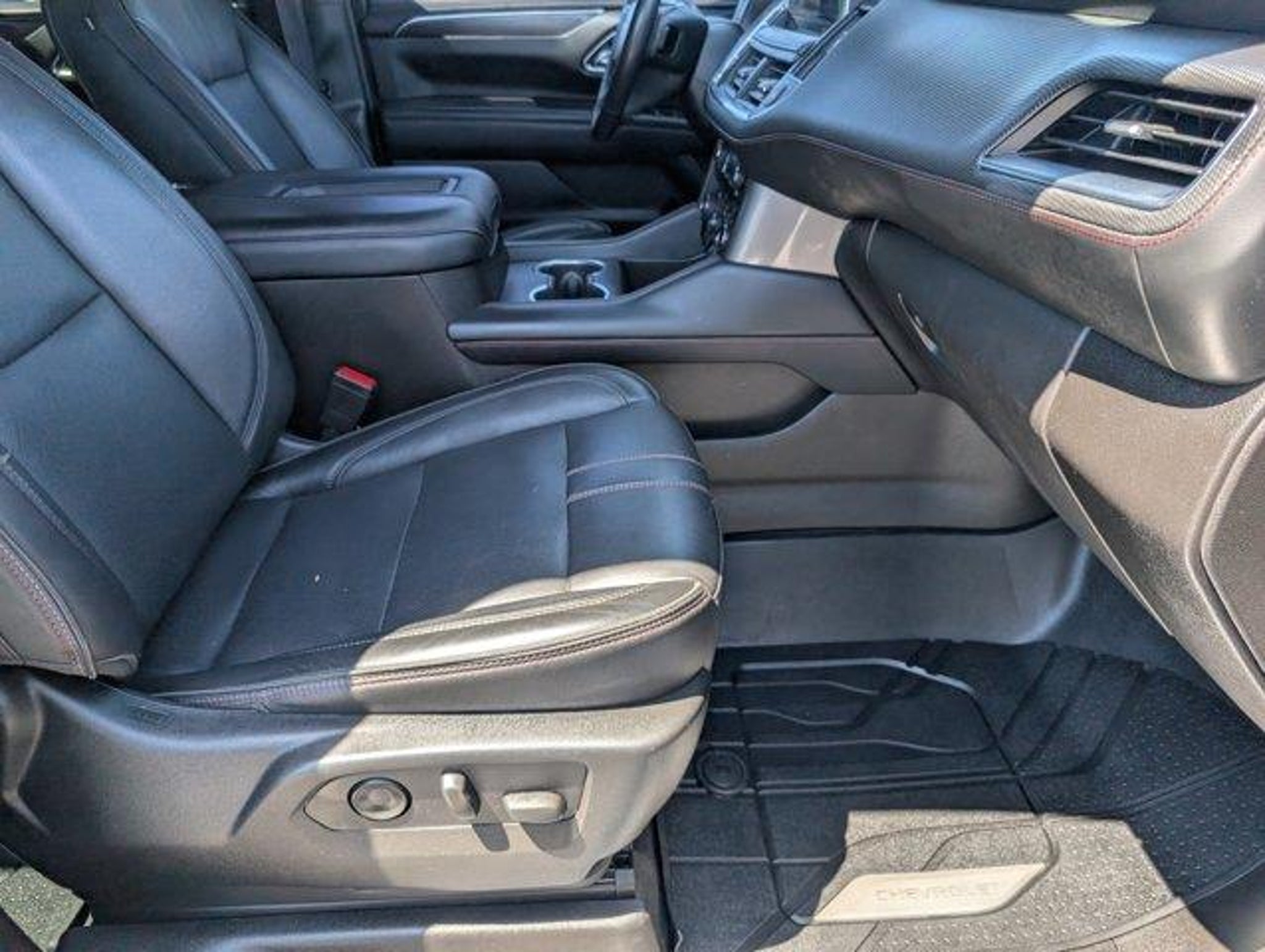 Recent Arrival!2021 Chevrolet Tahoe RSTJet Black/Victory Red Leather.Griffin Chrysler Dodge Jeep Ram is pumped up to offer this handsome 2021 Chevrolet Tahoe RST In Steel Metallic. This vehicle is beautifully equipped with Driver Alert Package (Front & Rear Park Assist, Lane Change Alert w/Side Blind Zone Alert, Lane Keep Assist w/Lane Departure Warning, and Rear Cross Traffic Alert), Luxury Package (2nd Row Pwr Release 60/40 Split-Folding Bench Seat, 3rd Row 60/40 Power-Folding Split-Bench Seat, Automatic Heated Steering Wheel, HD Surround Vision, Heated 2nd Row Outboard Seats, Memory Settings, Outside Heated Power-Adjustable Mirrors, Power Tilt & Telescopic Steering Column, and Rear Pedestrian Alert), Preferred Equipment Group 1SP (1st & 2nd Row Color-Keyed Carpeted Floor Mats, 2 USB Data Ports, Auto-Dimming Inside Rear-View Mirror, Bright Front & Rear Door Sill Plates, Color-Keyed Carpeting Floor Covering, Driver & Front Outboard Passenger Airbags, Floor Console w/Storage Area, Hands-Free Rear Power Programmable Liftgate, HD Radio, Infotainment Display, Leather-Wrapped Steering Wheel, LED Daytime Running Lamps, Memory Settings for Driver, Remote Start, SiriusXM Radio w/360L, and Universal Home Remote), Jet Black/Victory Red Leather, 10-Way Power Driver & Passenger Seat Adjusters, 3.23 Rear Axle Ratio, 3rd row seats: split-bench, 4-Wheel Disc Brakes, 9 Speakers, ABS brakes, Air Conditioning, Alloy wheels, AM/FM radio: SiriusXM with 360L, Apple CarPlay/Android Auto, Auto High-beam Headlights, Auto-dimming Rear-View mirror, Automatic temperature control, Bose 9-Speaker Stereo Audio System Feature, Brake assist, Bumpers: body-color, Compass, Delay-off headlights, Driver door bin, Driver vanity mirror, Dual front impact airbags, Dual front side impact airbags, Dual-Pane Power Panoramic Sunroof, Electronic Stability Control, Emergency communication system: OnStar and Chevrolet connected services capable, Four wheel independent suspension, Front anti-roll bar, Front Bucket Seats, Front Center Armrest, Front dual zone A/C, Front High-Back Reclining Bucket Seats, Front reading lights, Fully automatic headlights, Garage door transmitter, Heated door mirrors, Heated Driver & Front Passenger Seats, Heated front seats, Illuminated entry, Leather steering wheel, Low tire pressure warning, Memory seat, Occupant sensing airbag, Outside temperature display, Overhead airbag, Overhead console, Panic alarm, Passenger door bin, Passenger vanity mirror, Perforated Leather Seat Trim, Power door mirrors, Power driver seat, Po