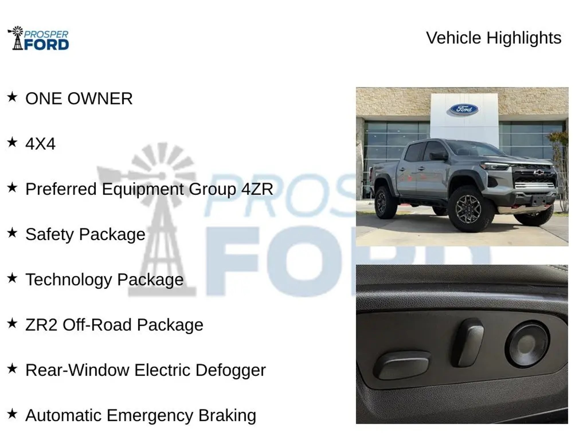 Elevate your off-road adventures with this exceptional 2024 Chevrolet Colorado ZR2. Engineered to conquer the toughest terrain, this rugged and capable pickup boasts a powerful 2.7L Turbo I4 engine, delivering an impressive 310 horsepower and 4WD capabilities. With its striking Gray exterior, this Colorado ZR2 is more than just a work-ready workhorse ? it's a statement of your adventurous spirit. - One Owner - 4X4 - Seat Belt, Yellow - Cargo Tie-Down Rings (Set of 4) - Safety Package - Technology Package - Adaptive Cruise Control - Blind Zone Steering Assist with Trailering - Rear Cross Traffic Braking - Rear Pedestrian Alert - Rear Park Assist - Automatic Emergency Braking Elevate your driving experience with the Colorado ZR2's impressive array of advanced features. Enjoy the convenience of Adaptive Cruise Control, the safety of Blind Zone Steering Assist with Trailering, and the added peace of mind from Rear Cross Traffic Braking and Rear Pedestrian Alert. The Rear Park Assist and Automatic Emergency Braking further enhance your confidence behind the wheel. Step inside and be captivated by the premium Bose 7-speaker audio system, which delivers a rich, immersive listening experience. The 11.3 diagonal advanced color LCD display seamlessly integrates your smartphone with Apple CarPlay and Android Auto, keeping you connected and entertained on the go. Designed to tackle the toughest terrain, the Colorado ZR2 boasts a host of off-road-ready features. The Underbody Cameras provide forward and rearward facing views, allowing you to navigate challenging obstacles with precision. The All-Weather Floor Liners and Highway Safety Kit ensure your vehicle is equipped to handle any adventure. With its impressive capabilities, premium features, and striking good looks, this 2024 Chevrolet Colorado ZR2 is the ultimate off-road companion. Experience the thrill of the open road and the freedom to explore the untamed wilderness. Visit our showroom today and let us help you unlock the full potential of this remarkable vehicle.