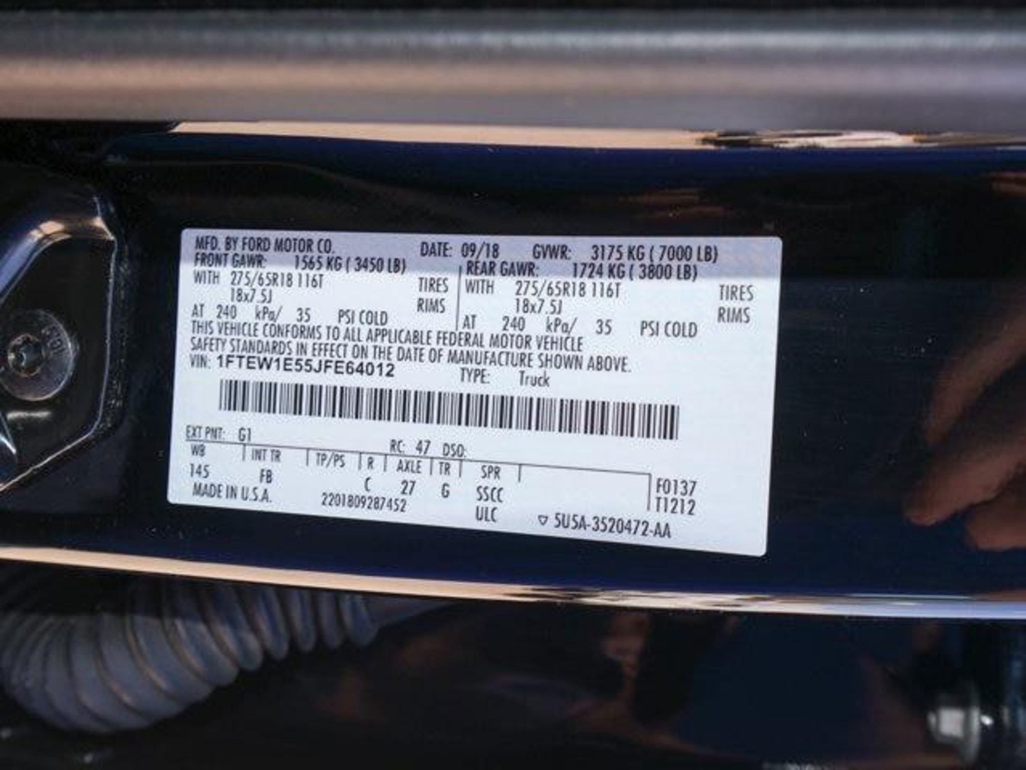 Details > 2018 Ford F-150 4X4 XL 4DR Supercrew 5.5 FT. SB For Sale in Florence, KY Private Party Sellers Click here to place your ad now! You auta tell them you saw the ad in AutaBuy when you call or email. 1/33 2/33 3/33 4/33 5/33 6/33 7/33 8/33 9/33 10/33 11/33 12/33 13/33 14/33 15/33 16/33 17/33 18/33 19/33 20/33 21/33 22/33 23/33 24/33 25/33 26/33 27/33 28/33 29/33 30/33 31/33 32/33 33/33 View 33 Photos View All Add to My Garage Parked in Your Garage! Airport Ford Contact Seller: I would like to: Make Offer Check Availability Ask A Question Request More Photos Check Financing Options Send a copy of this message to me Add this listing to my garage Send to Mobile Mileage 97,714 Exterior Color Black Velvet Doors 4 Engine 5.0L V8 Transmission 10 Speed Auto Stock # JFE64012 VIN 1FTEW1E55JFE64012 Estimated Monthly Payment $452 mo Apply Now J.J. Best Banc & Co. 2018 Ford F-150 4X4 XL 4DR Supercrew 5.5 FT. SB Description: · Mileage: 97,714 · Color: Black Velvet Price: $25,995. Mileage 97,714 Exterior Color Black Velvet Doors 4 Engine 5.0L V8 Transmission 10 Speed Auto Stock # JFE64012 VIN 1FTEW1E55JFE64012 Estimated Monthly Payment $452 mo Apply Now J.J. Best Banc & Co. Add to My Garage Parked in Your Garage! Message Seller Airport Ford Contact Seller: I would like to: Make Offer Check Availability Ask A Question Request More Photos Check Financing Options Send a copy of this message to me Add this listing to my garage Offered for sale by Airport Ford FLORENCE, KY Price: $25,995. Offered for sale by Airport Ford FLORENCE, KY [entire inventory] Ask Auta Intelligence The first collector-car AI built directly into a classic car marketplace What colors did these come in? What engine options did these come with? Where is this located? What does this VIN number tell me? How far is this from me? What trim levels were available for this model? When was this model first introduced? What's the typical towing capacity in this configuration? Can you show me more pickups/trucks for a similar price? How many F-150s were produced in Black? What transmission options did these offer? What factory options were available on this model? Tell me about this model What size tires does this run from the factory? How many of these were produced? What kind of mileage do these get? How easy are parts to find for this model? Do you have a similar car to sell? List It Now! Questions about this car? Ask Auta Intelligence for production numbers, available options, etc. · Subscribe to AutaBuy! · Send a Gift Subscription Notice to a Friend