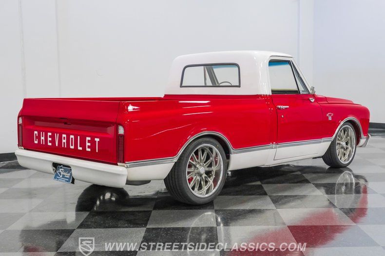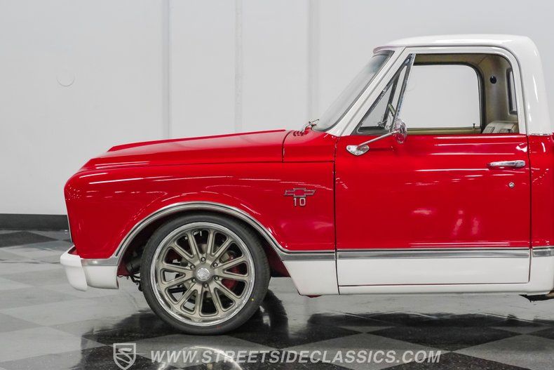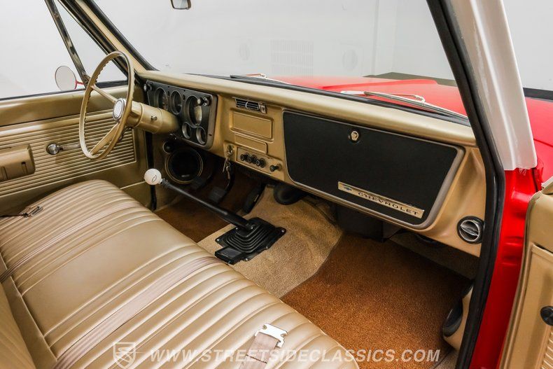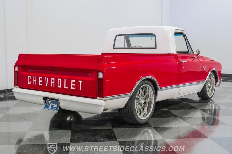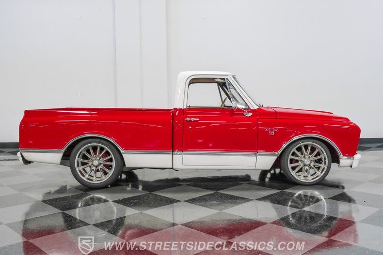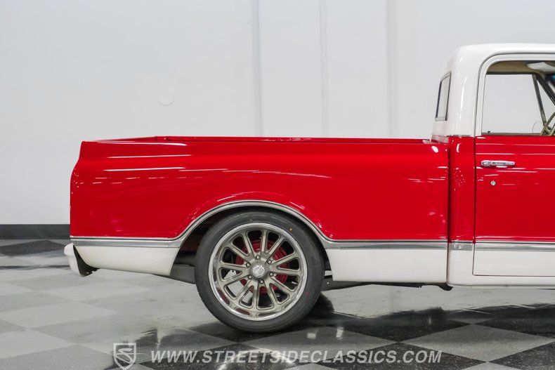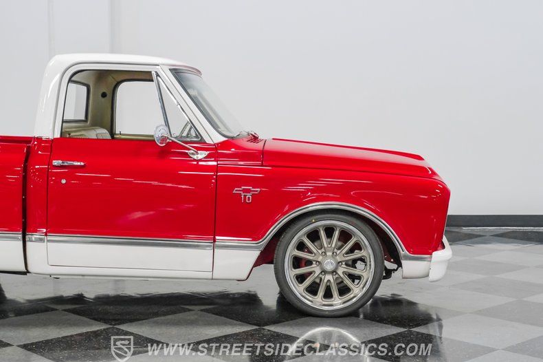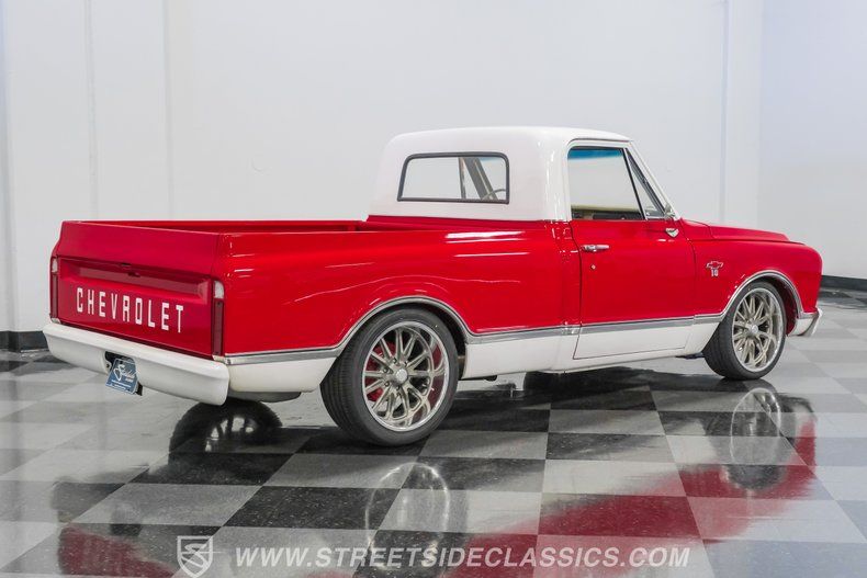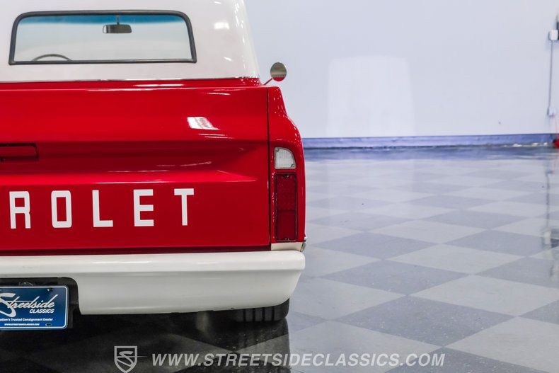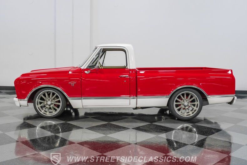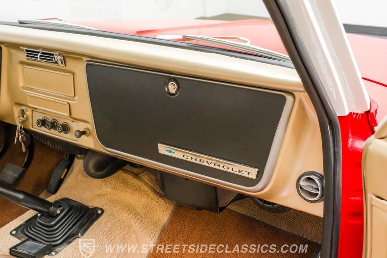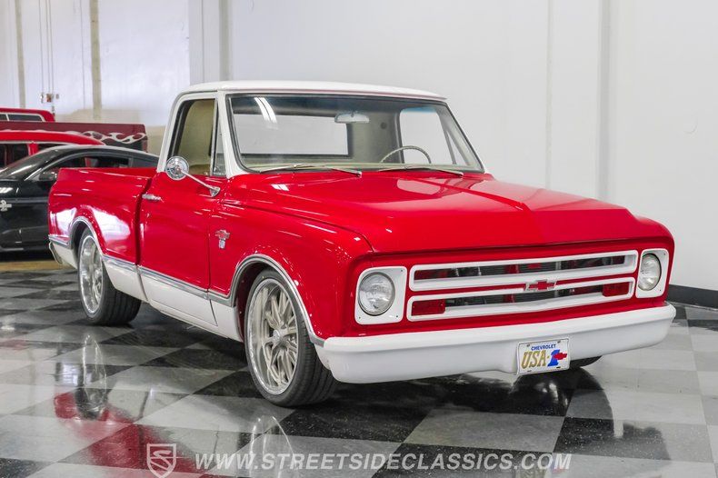 This 1967 Chevrolet C10 blends classic American utility with purposeful upgrades, finished in a striking red-and-white repaint with white accents along the lower body, roof, pillars, bumpers, and grille. Its lowered stance and wood plank bed give it an unmistakable custom presence, while the relocated under bed fuel tank keeps the lines clean and uncluttered. Equal parts vintage style and modern attitude, this C10 delivers bold looks, thoughtful execution, and the kind of curb appeal that makes it hard to ignore-exactly the truck your garage has been waiting for.