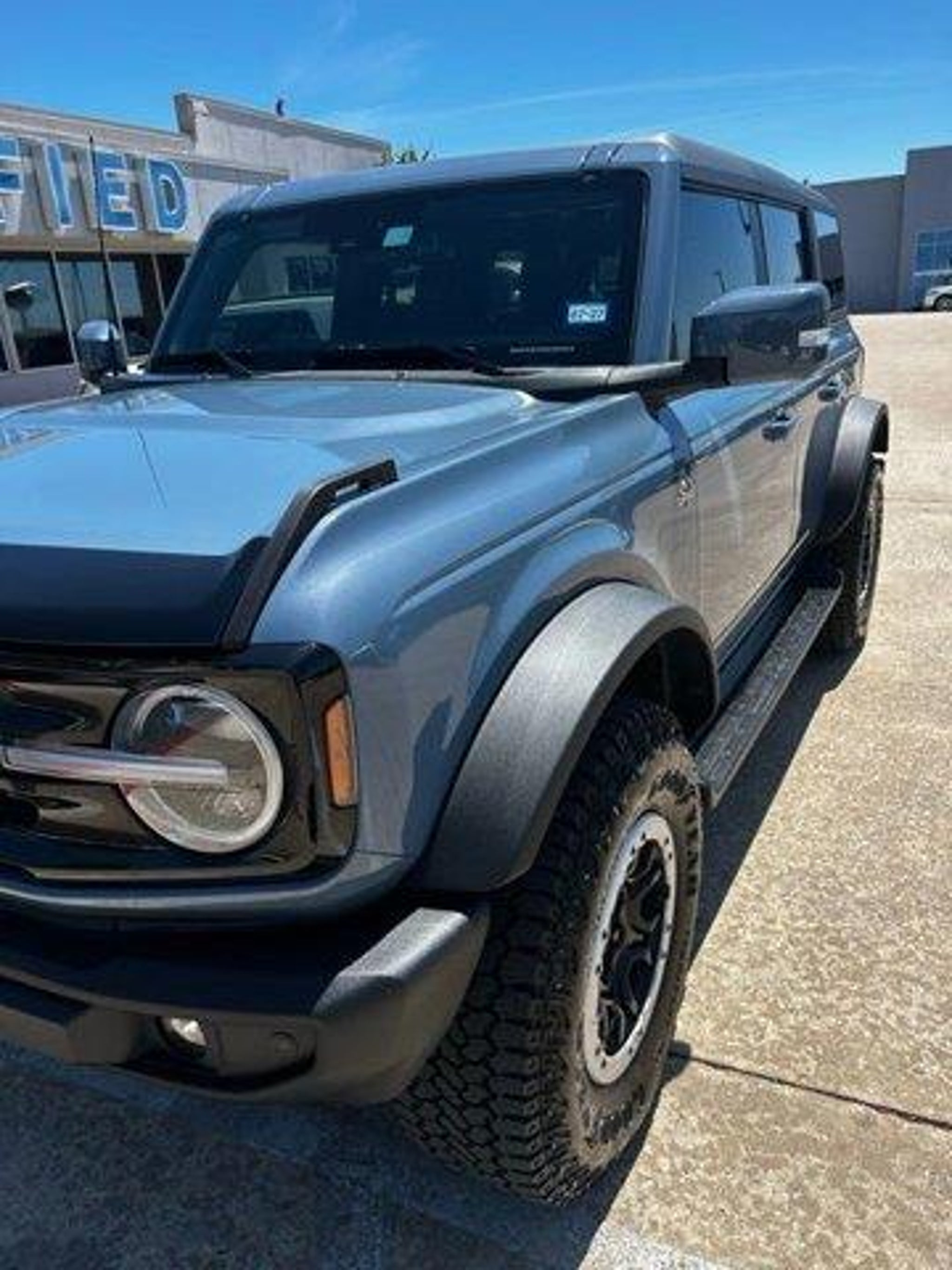 CARFAX One-Owner. LOCAL TRADE, NON SMOKER, ONE OWNER, SERVICED HERE, OIL CHANGE, DETAILED, Bronco Outer Banks Advanced, 4D Sport Utility, 2.7L EcoBoost V6, 10-Speed Automatic, 4WD, Azure Gray Metallic, Black Leather. CALL 512-930-3673 TO SCHEDULE YOUR TEST DRIVE TODAY! This 2025 Ford Bronco Outer Banks in Azure Gray Metallic comes with the following features: 2.7L EcoBoost V6 10-Speed Automatic 4WD Equipment Group 314A Lux Package (360-Degree Camera, Adaptive Cruise Control, Evasive Steering Assist, Front Parking Sensors, Information on Demand Panel, Radio: B O Sound System by Bang Olufsen, Sideview Mirrors, and Universal Garage Door Opener), Sasquatch Package (High Clearance Fender Flares, High Clearance Suspension, Position-Sensitive Bilstein Shock Absorbers, and Wheels: 17' Carbonized Gray Painted Aluminum), Bronco Outer Banks Advanced, 4D Sport Utility, 2.7L EcoBoost V6, 10-Speed Automatic, 4WD, Azure Gray Metallic, Black Leather, 18' Bright Machined Aluminum Wheels, 4-Wheel Disc Brakes, 7 Speakers, ABS brakes, Air Conditioning, Alloy wheels, AM/FM radio: SiriusXM with 360L, AM/FM Stereo, Auto High-beam Headlights, Auto-dimming Rear-View mirror, Automatic temperature control, Brake assist, Carbonized Gray Molded-In-Color Hard Top, Compass, Connected Navigation, Delay-off headlights, Driver door bin, Driver vanity mirror, Dual front impact airbags, Dual front side impact airbags, Electronic Stability Control, Emergency communication system: 911 Assist, Exterior Parking Camera Rear, Front anti-roll bar, Front Bucket Seats, Front Center Armrest, Front dual zone A/C, Front fog lights, Front License Plate Bracket, Front reading lights, Front wheel independent suspension, Fully automatic headlights, Hard Top Sound Deadening Headliner, Heated door mirrors, Heated front seats, Heated Leather-Trimmed/Vinyl Bucket Seats, Heated steering wheel, Illuminated entry, Integrated roll-over protection, Internet access capable: FordPass Connect, Leather Shift Knob, Low tire pressure warning, Navigation system: Connected Navigation, Occupant sensing airbag, Outside temperature display, Overhead airbag, Overhead console, Panic alarm, Passenger door bin, Passenger vanity mirror, Power door mirrors, Power driver seat, Power passenger seat, Power steering, Power windows, Radio data system, Rear seat center armrest, Rear-Window Defroster Washer, Remote keyless entry, Security system, SiriusXM w/360L, Speed control, Split folding rear seat, Steering wheel mounted audio controls, SYNC 4, Tachometer, Telescoping steering wheel