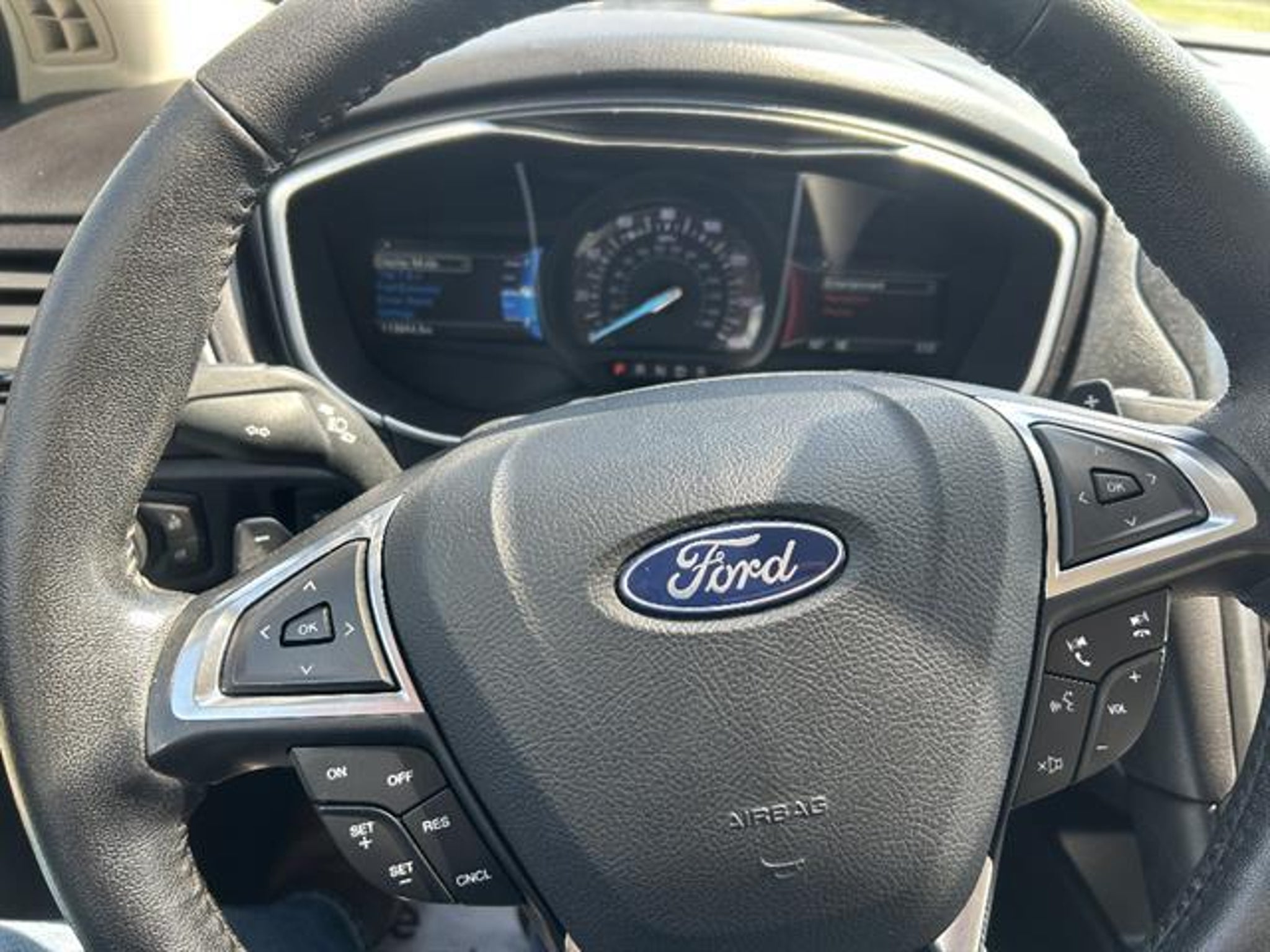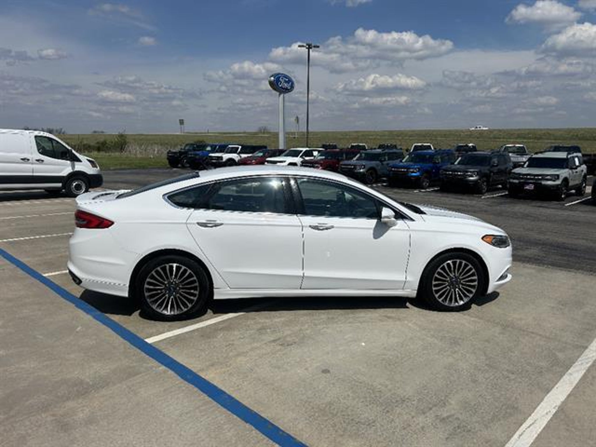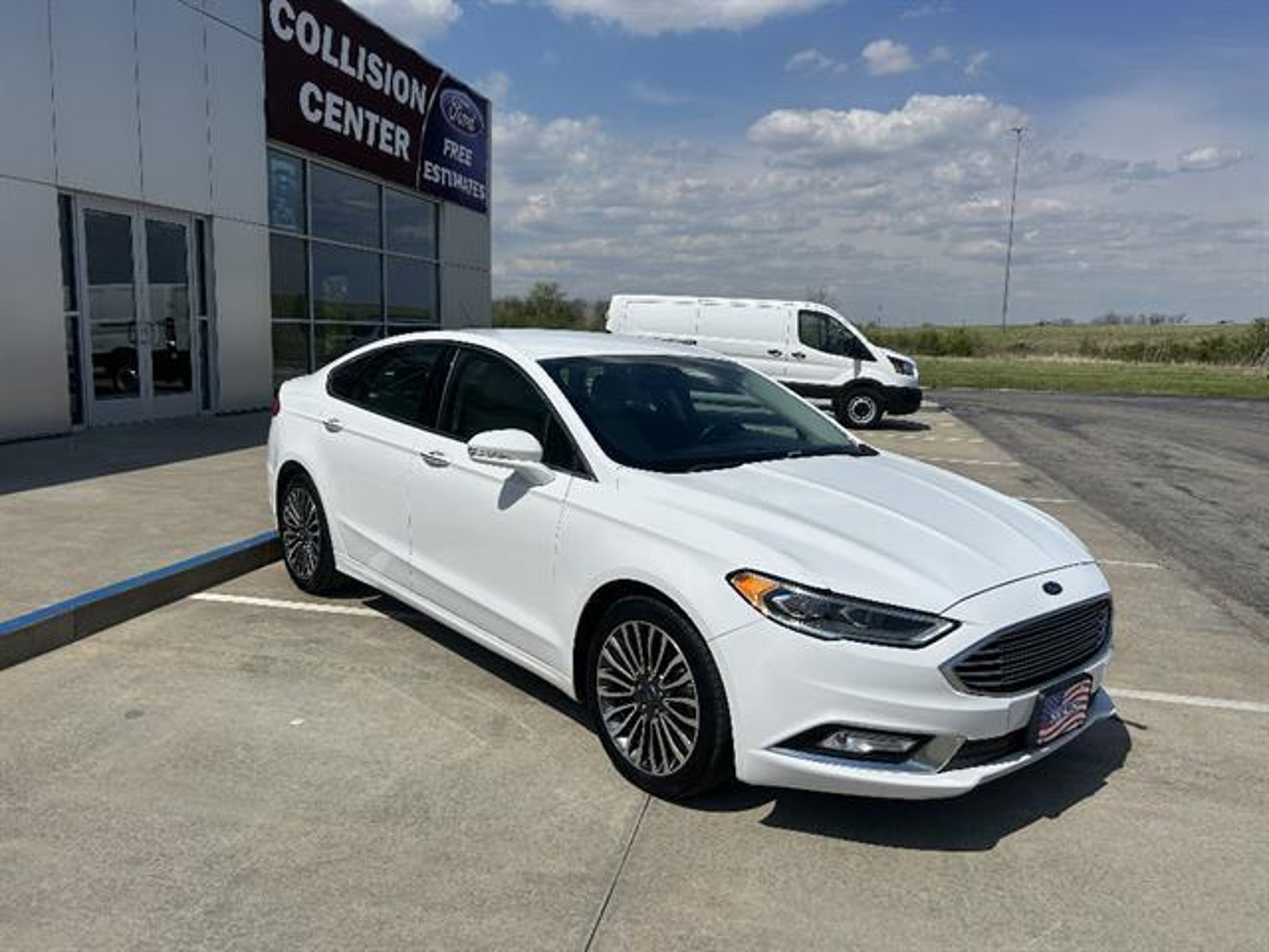 Experience luxury, performance, and all-weather confidence with this White 2018 Ford Fusion Titanium AWD. Powered by a responsive EcoBoost 2.0L Turbo engine and a 6-speed shiftable automatic, this sedan delivers a dynamic driving experience. Enjoy premium comfort with leather-trimmed seats, heated front seats, and power adjustments with memory settings. Advanced technology includes an 8-inch SYNC touchscreen with Apple CarPlay and Android Auto, Sony premium audio, Bluetooth, navigation, and rearview camera. Stay safe with rear parking sensors, advanced airbags, traction/stability control, and Ford's programmable MyKey. Distinctive styling features LED headlights, integrated exhaust, and chrome accents, while convenience is enhanced with remote start, push-button start, and proximity entry. This Fusion AWD Titanium is the perfect blend of sophistication and capability-schedule your test drive today! Call us at (913) 352-8521 to schedule your test drive on this Oxford White 2018 Ford Fusion Titanium. From the comfort of your home you can shop, get pricing, and trade value. We will deliver your vehicle and paperwork.