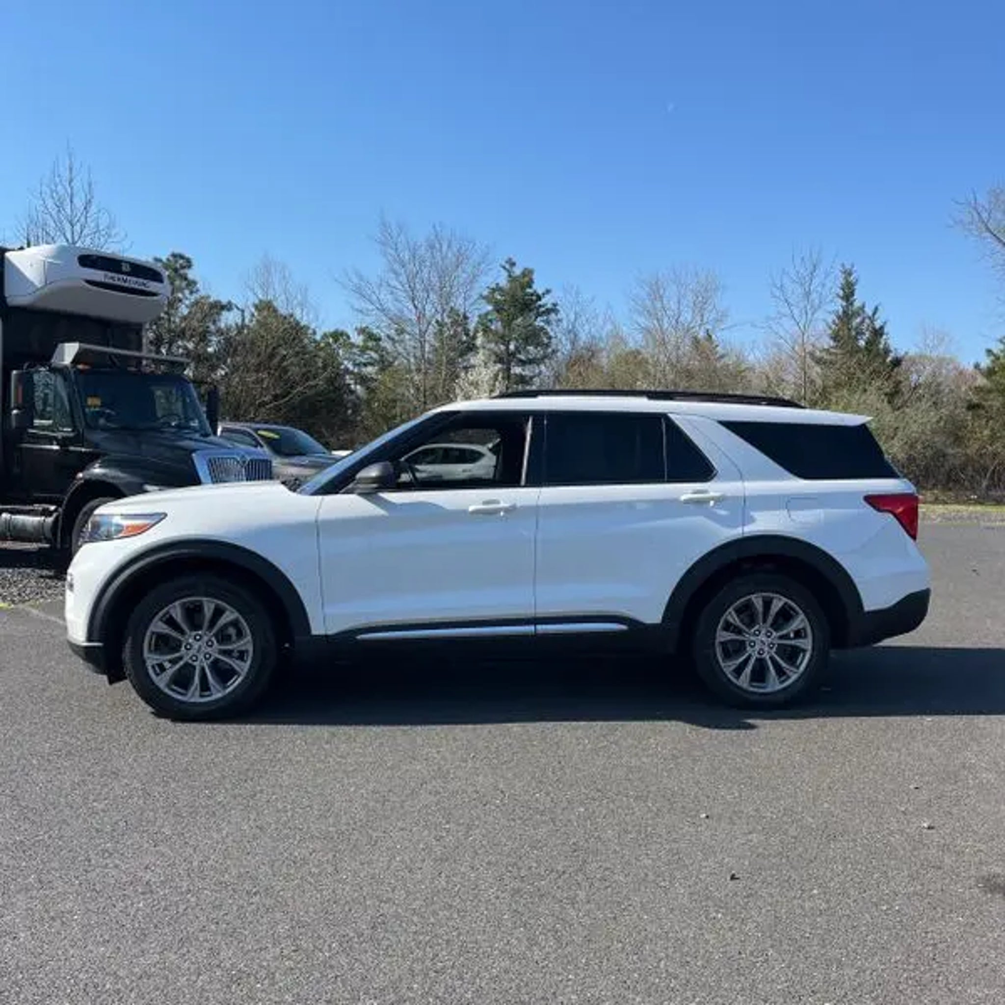 Clean CARFAX. White Metallic 2023 Ford Explorer XLT 4WD 10-Speed Automatic 2.3L EcoBoost I-4 Navigation System, Bluetooth, SYNC, Sunroof/Moonroof, Alloy Wheels, Power Seat, Passed Dealer Inspection, Backup Camera, Leather Seats, Remote Start, Tow Package, 20 Premium Painted Aluminum Wheels, 2nd Row 35/30/35 Bench w/E-Z Entry & Armrest, 3rd row seats: bench, Acoustic-Laminated Front Side Windows, AM/FM radio: SiriusXM, Auto High-beam Headlights, Class IV Trailer Tow Package, Equipment Group 202A, Evasive Steering Assist, Exterior Parking Camera Rear, Ford Co-Pilot360 Assist, Heated ActiveX Captain's Chairs, Heated front seats, Heated Steering Wheel, Intelligent Adaptive Cruise Control, LED Fog Lamps, Navigation System, Power Liftgate, Power passenger seat, Remote Start System, SecuriCode Keyless Entry Keypad, Speed Sign Recognition, SYNC 3/Apple CarPlay/Android Auto, Twin Panel Moonroof, Voice-Activated Touchscreen Navigation System. Recent Arrival! 20/27 City/Highway MPG
